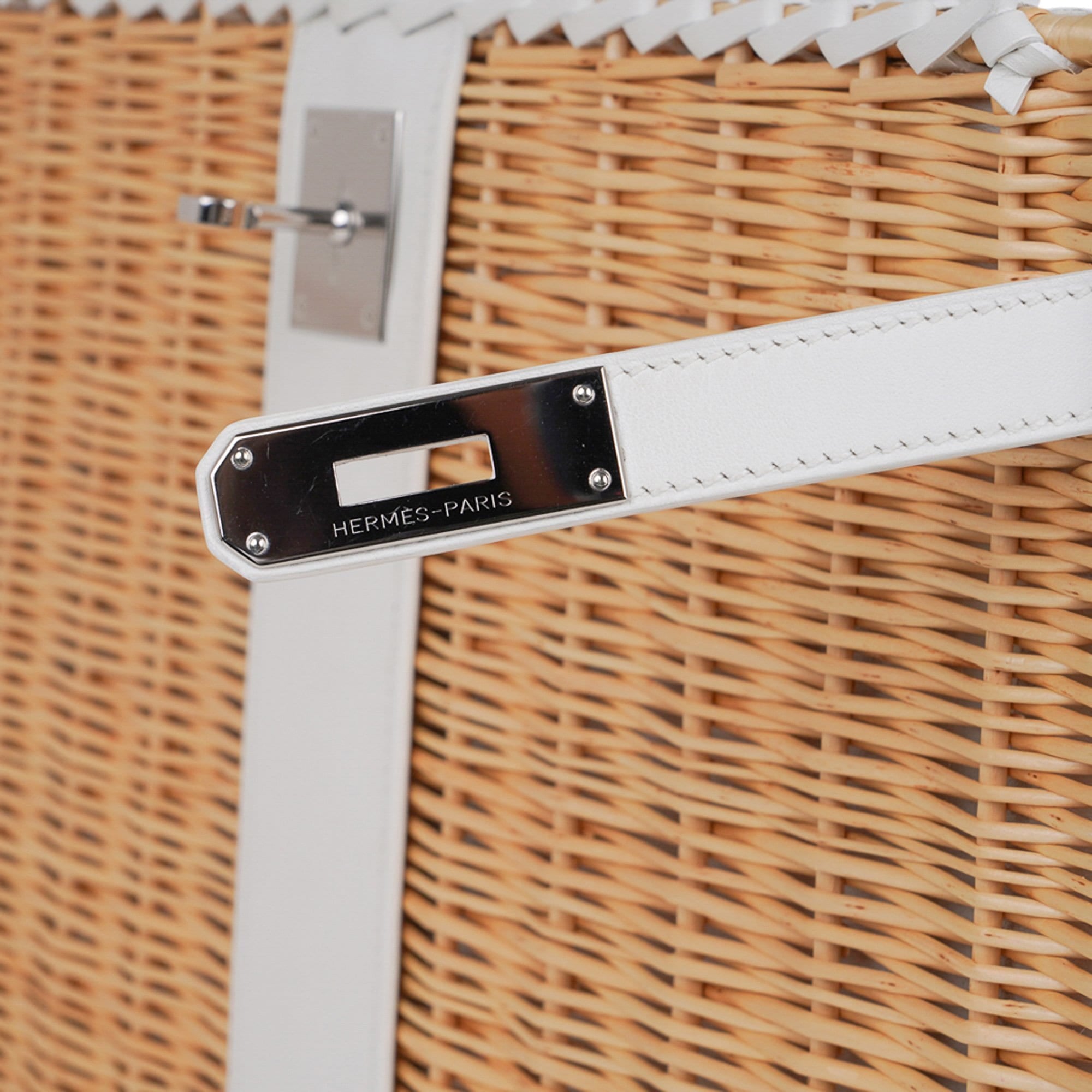 Hermes Kelly 35 Picnic Bag White Swift Leather / Osier (Wicker) Limited Edition
