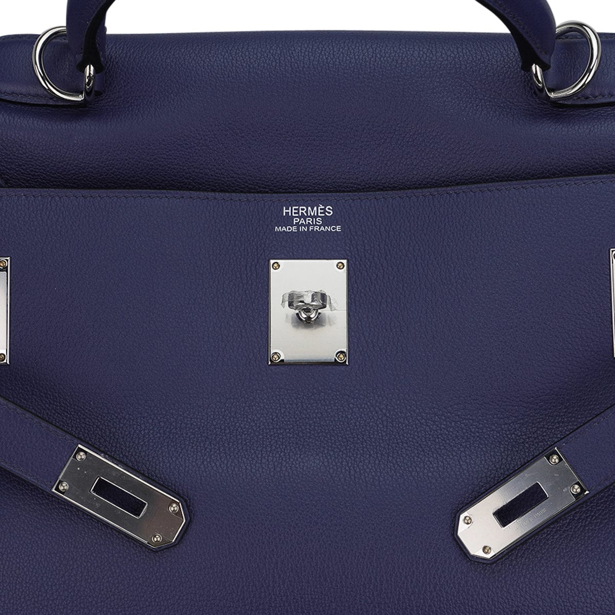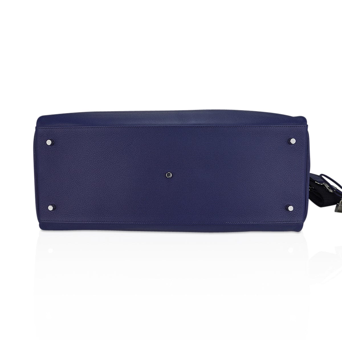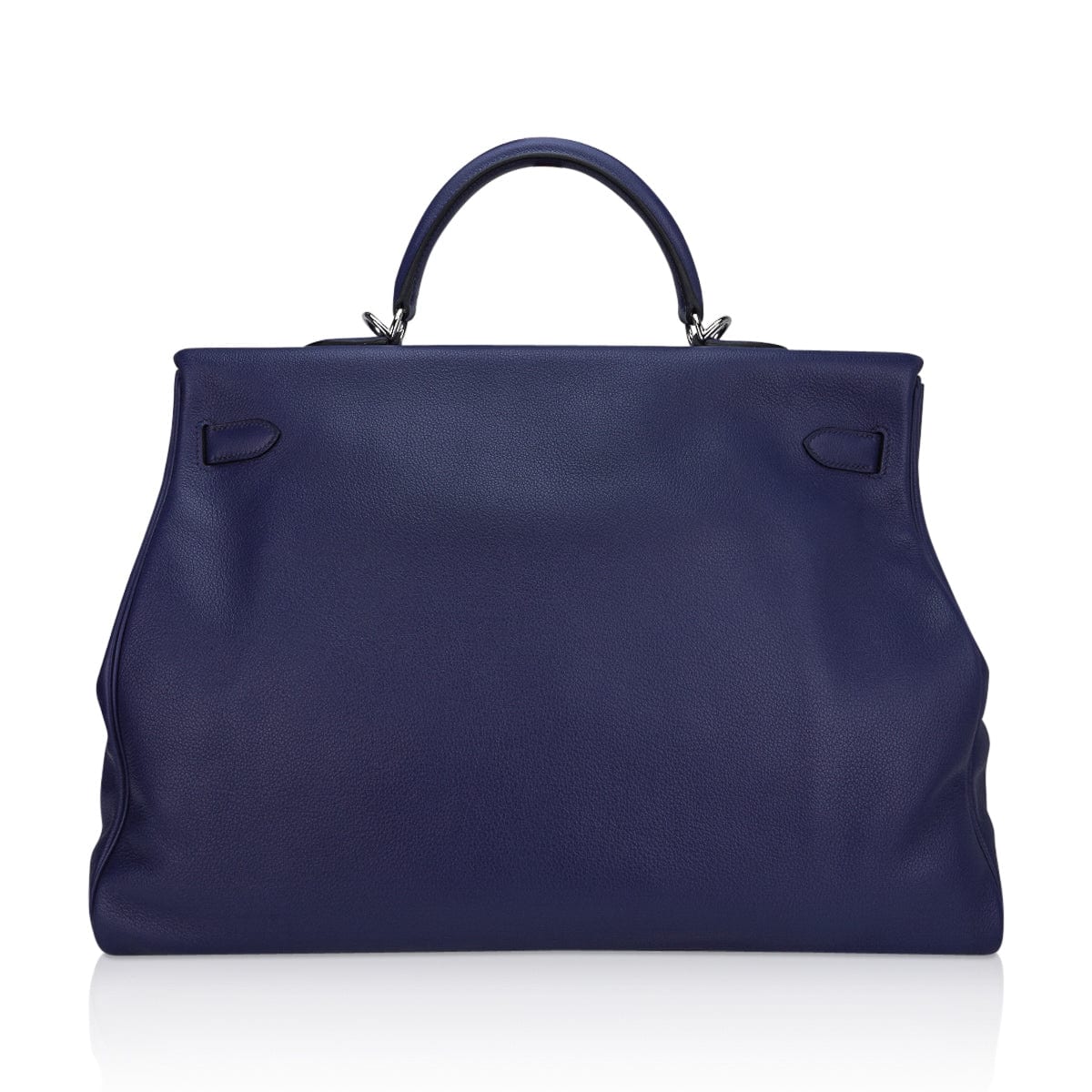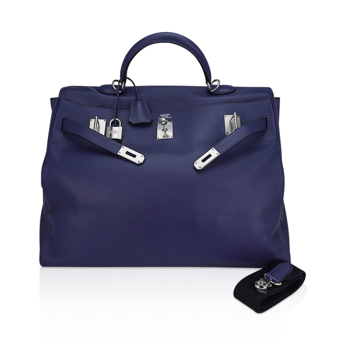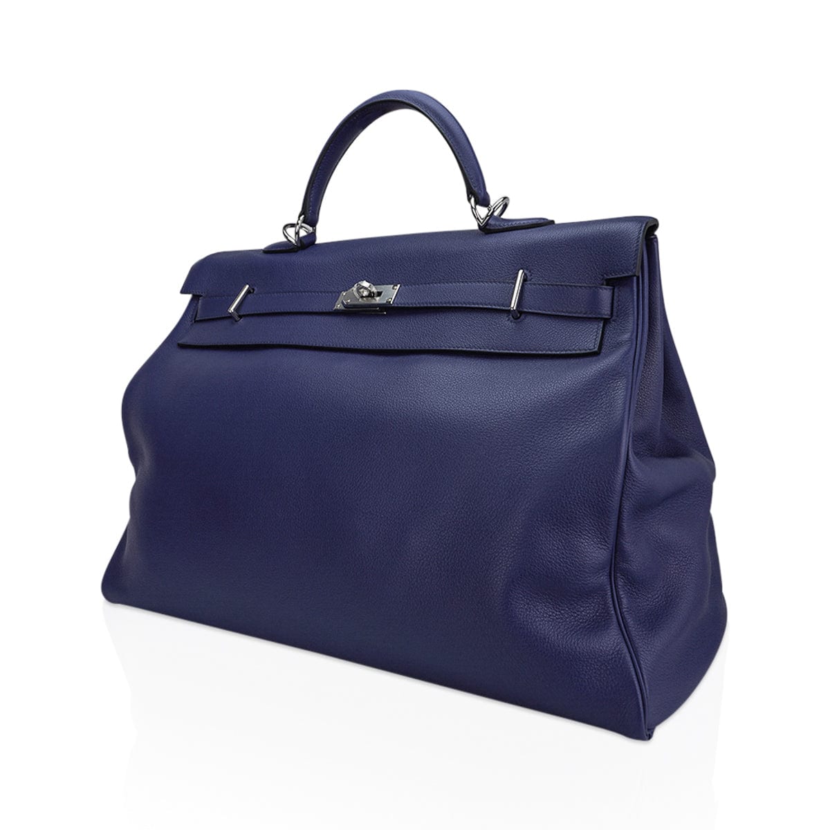 Guaranteed authentic limited edition Hermes Kelly 50 Voyage Relax bag featured in Blue de Malte.