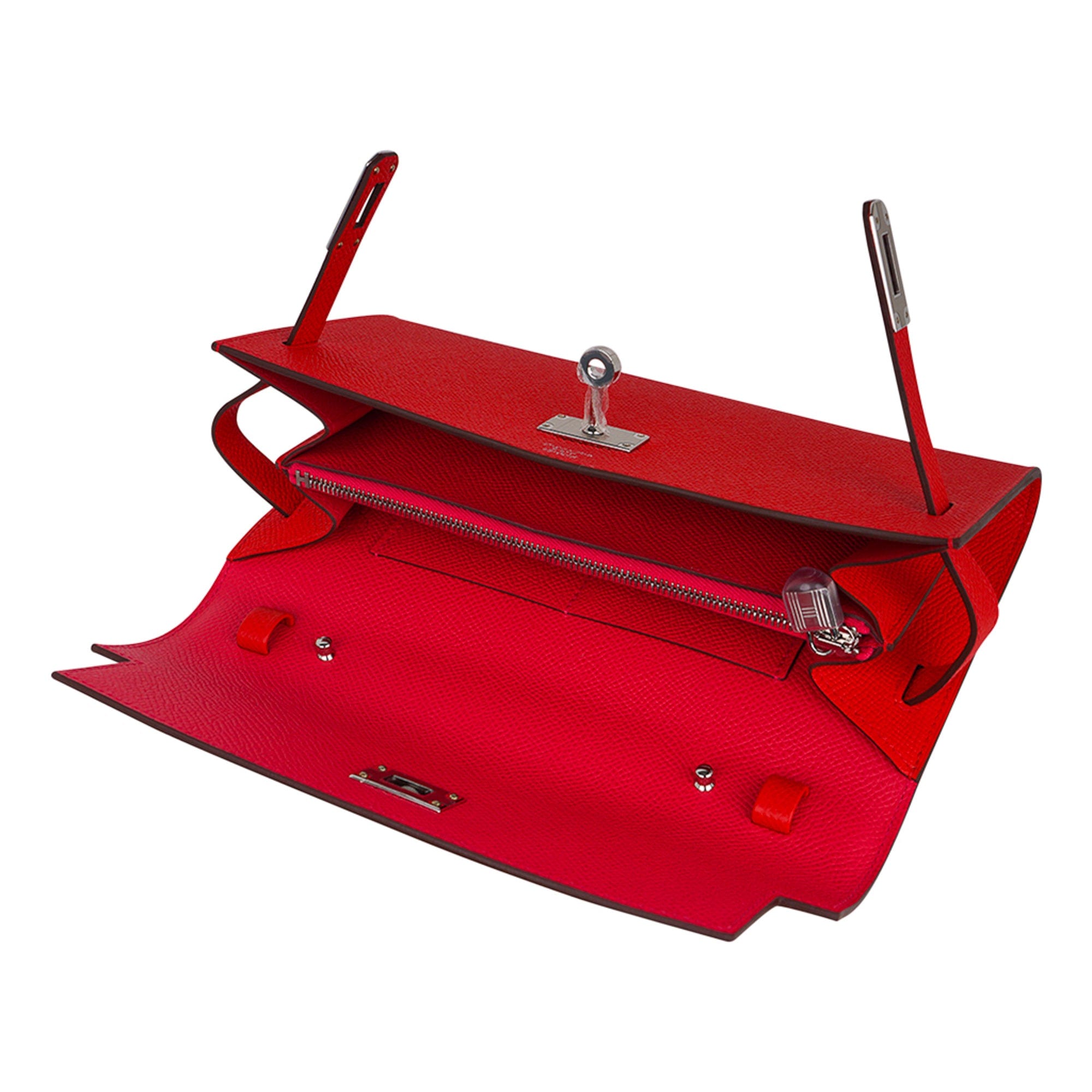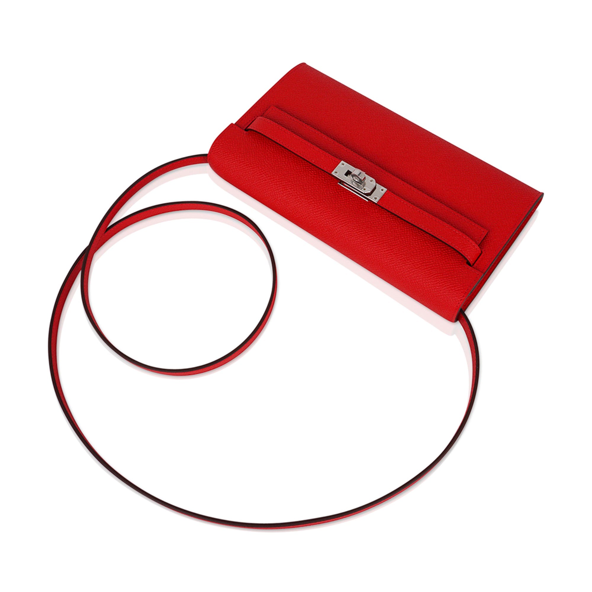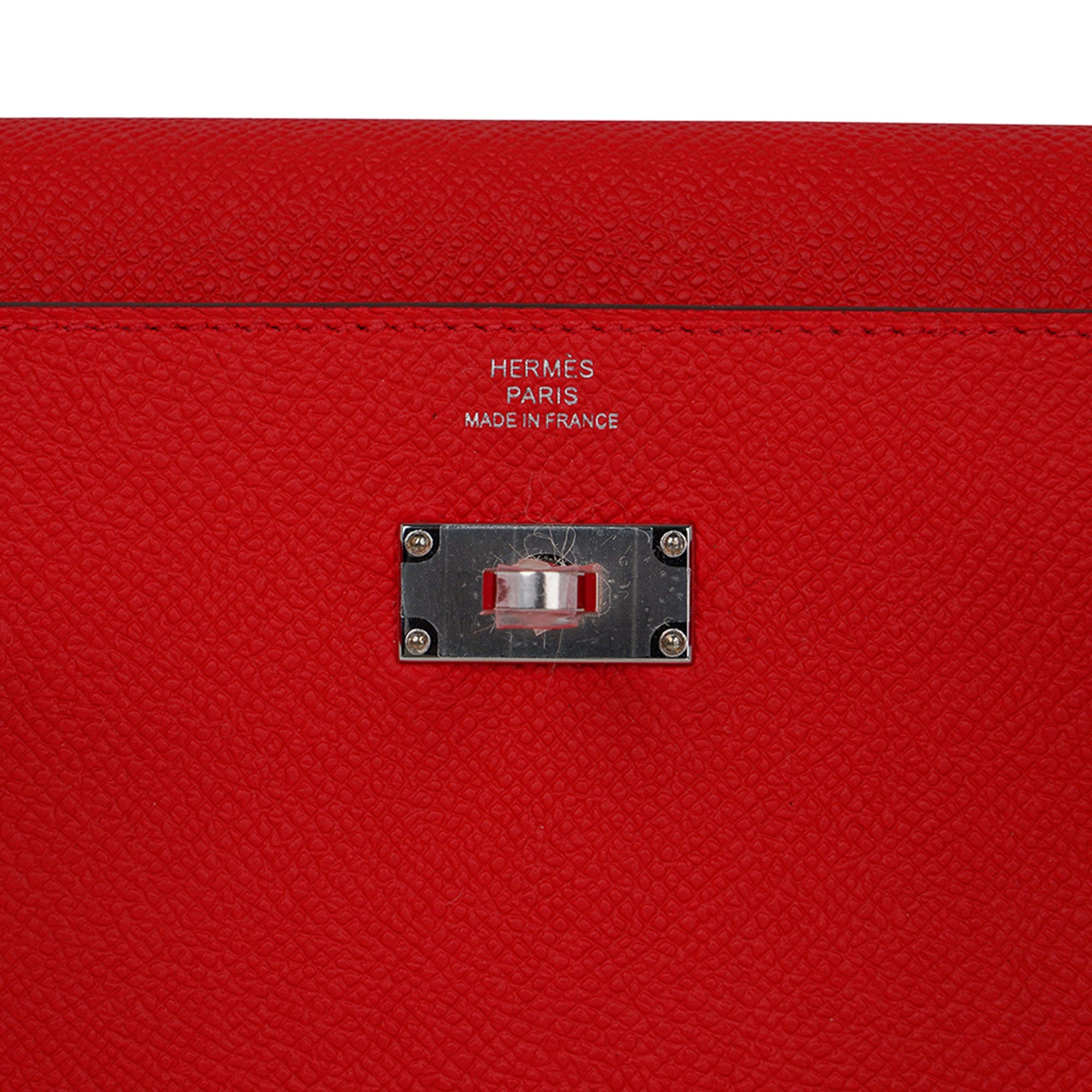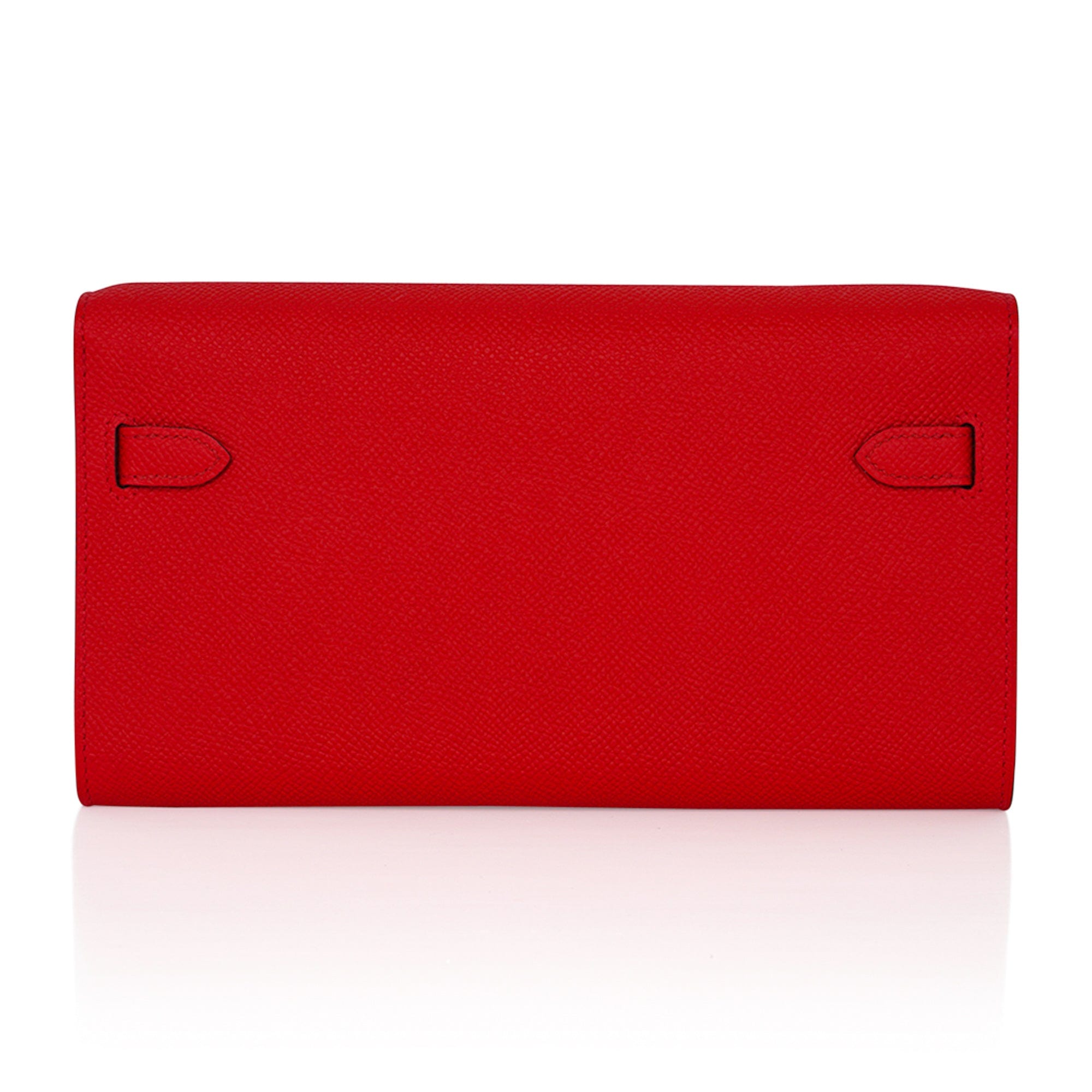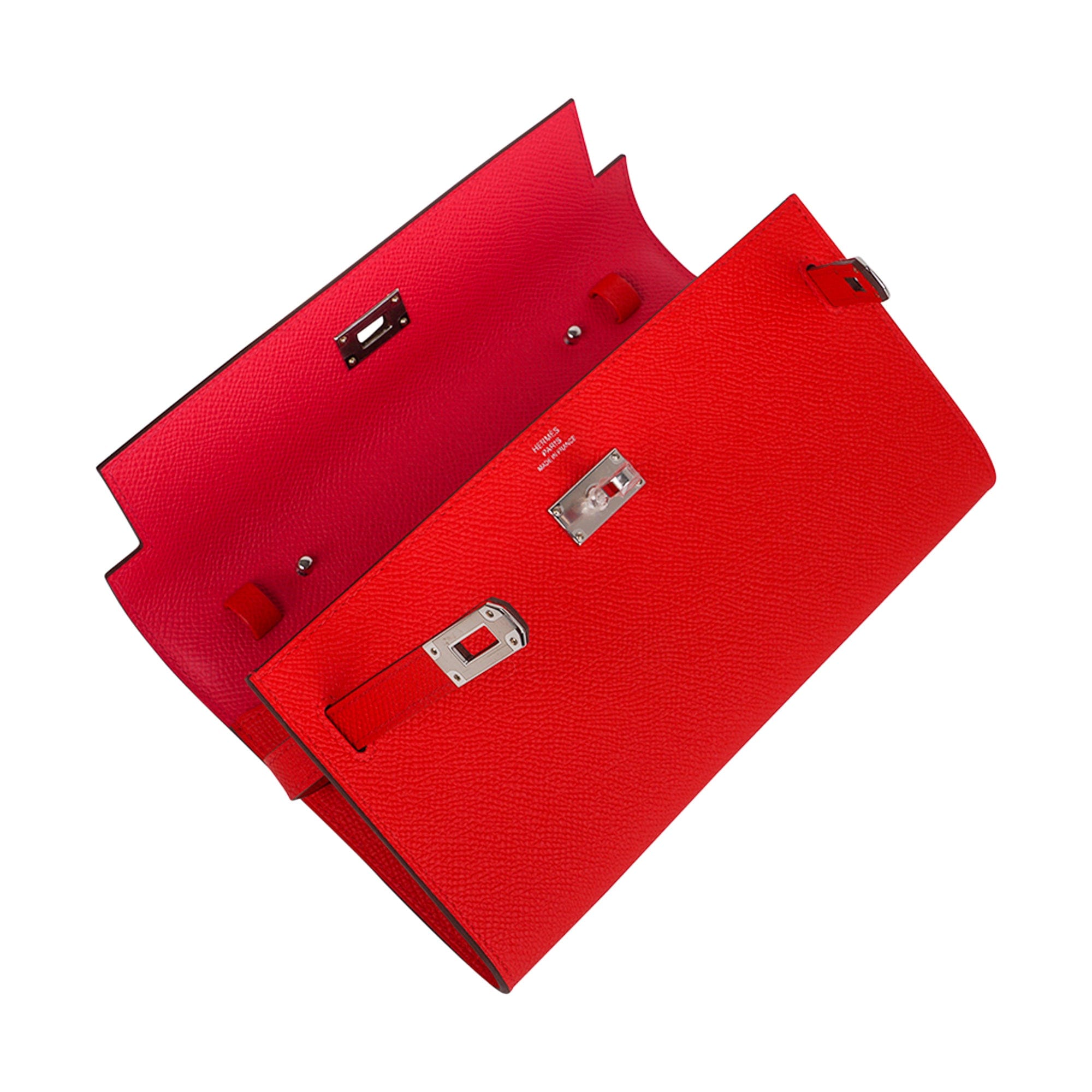 Guaranteed authentic Hermes Kelly Classique To Go Verso wallet featured in Rouge de Coeur with Rose Extreme interior.