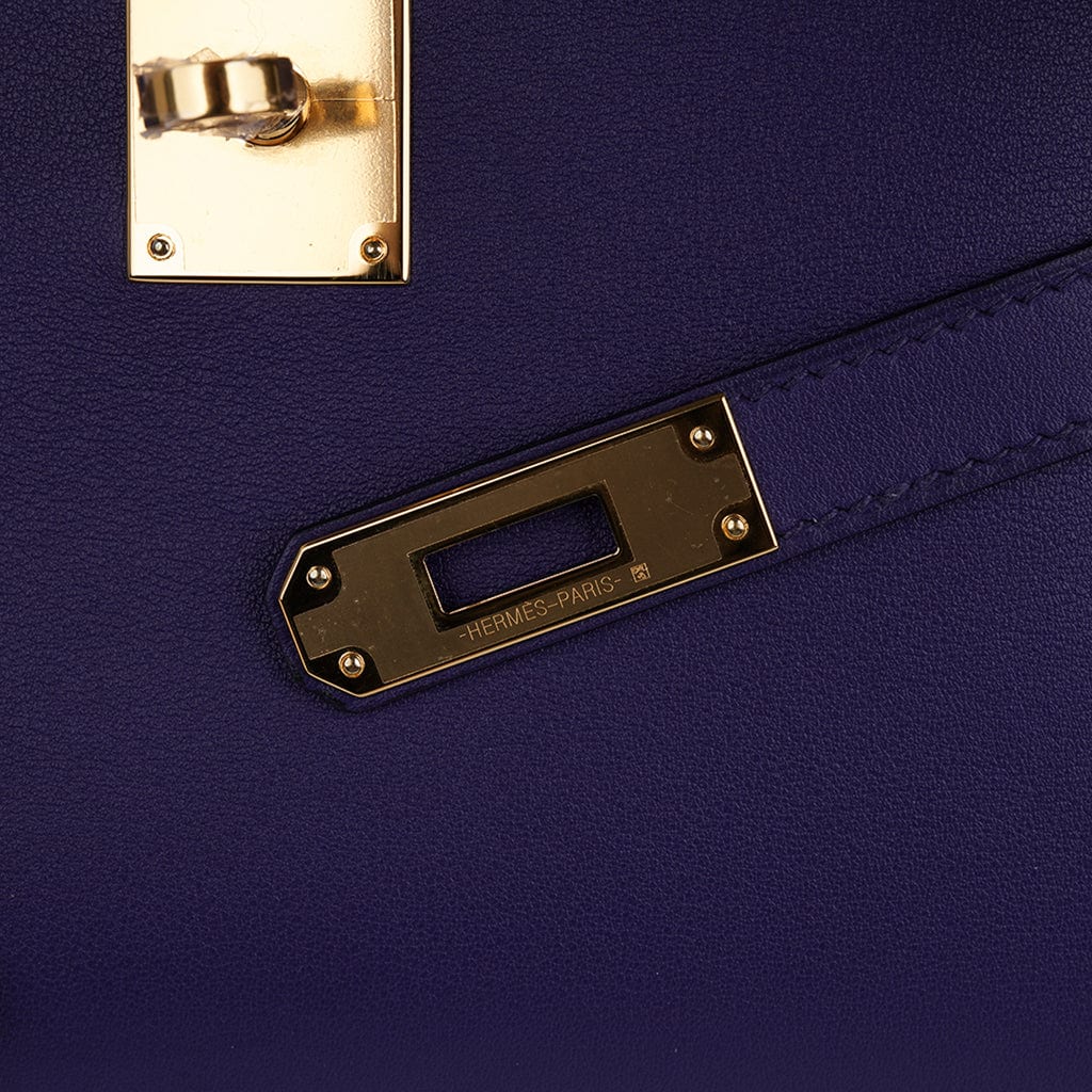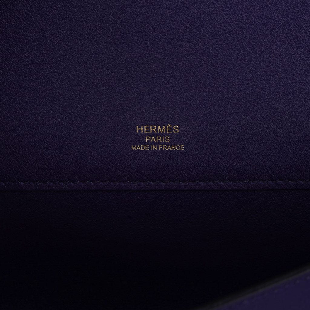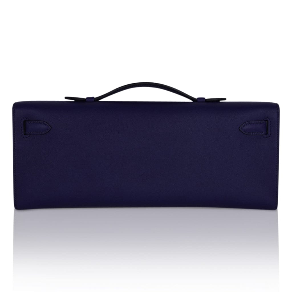 Guaranteed authentic timeless Hermes Kelly Cut bag features jewel toned Electric Encre.
