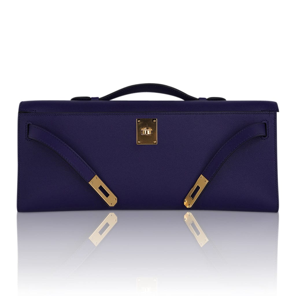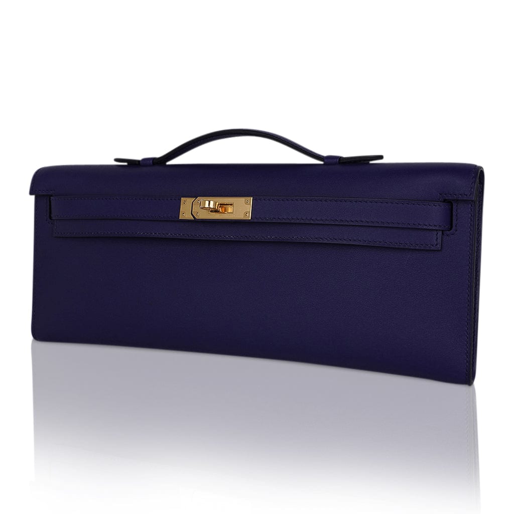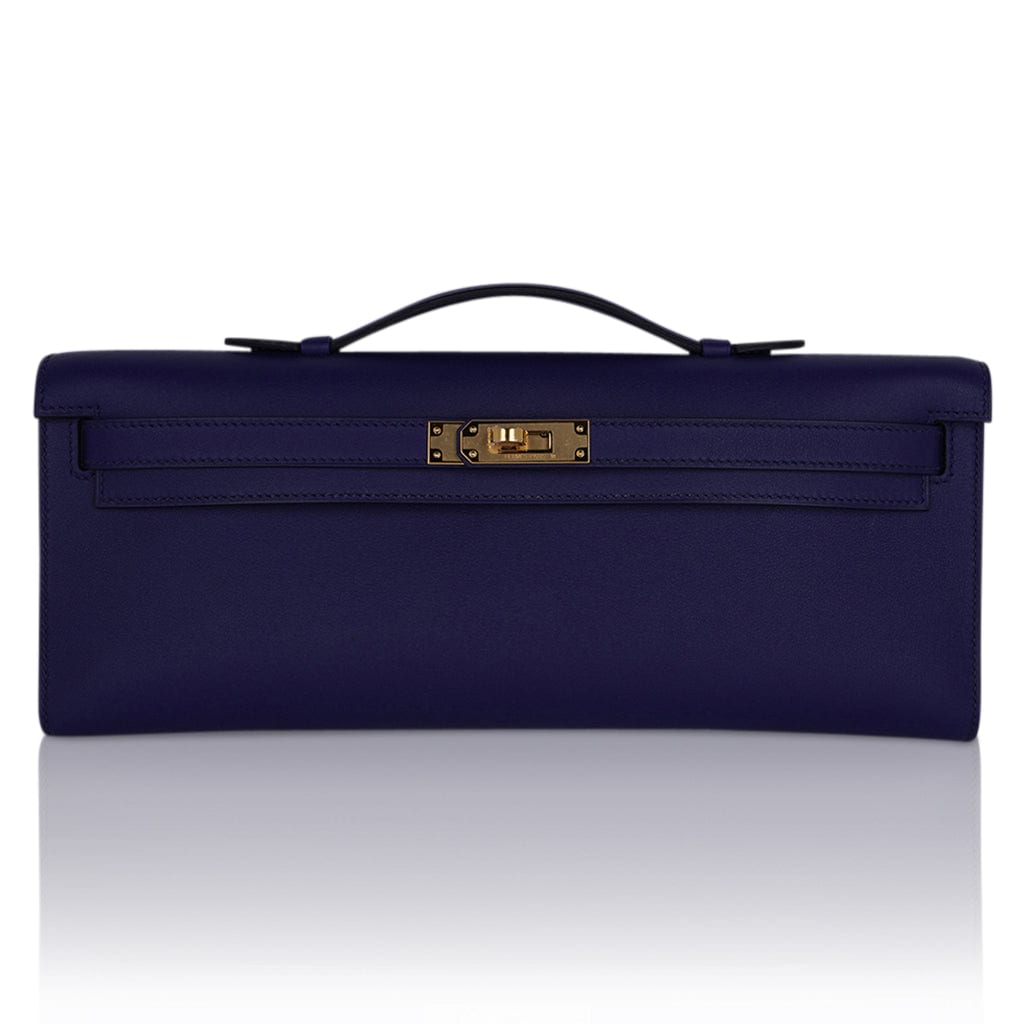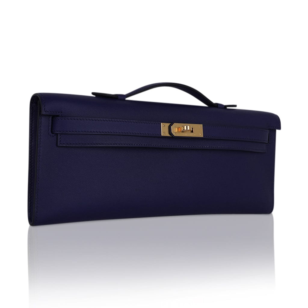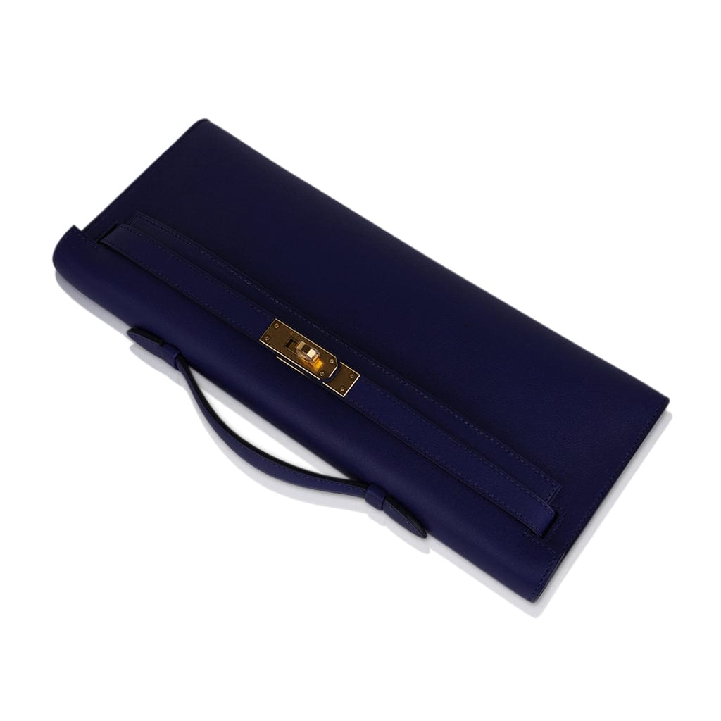 Hermes Kelly Cut Bag Blue Encre Clutch Swift Gold Hardware New