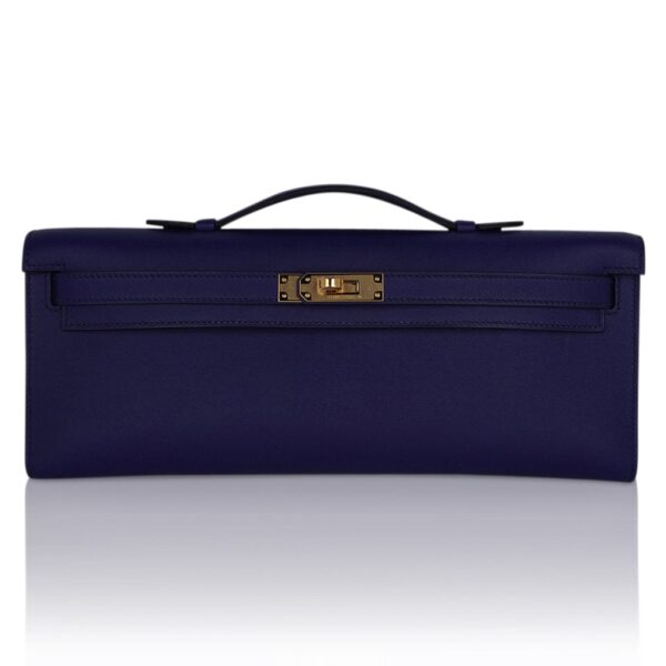 Be the first to review “Hermes Kelly Cut Bag Blue Encre Clutch Swift Gold Hardware New”