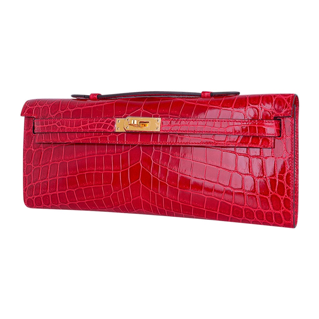 Hermes Kelly Cut Bag Braise Crocodile Gold Hardware Clutch