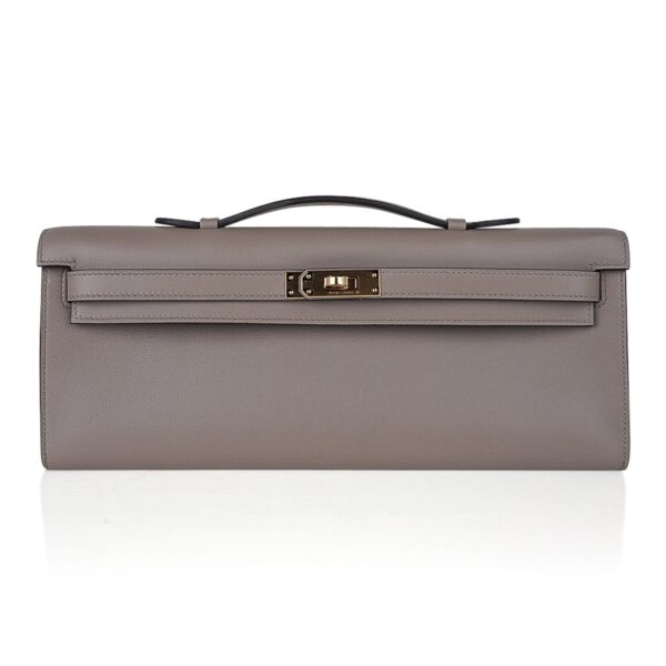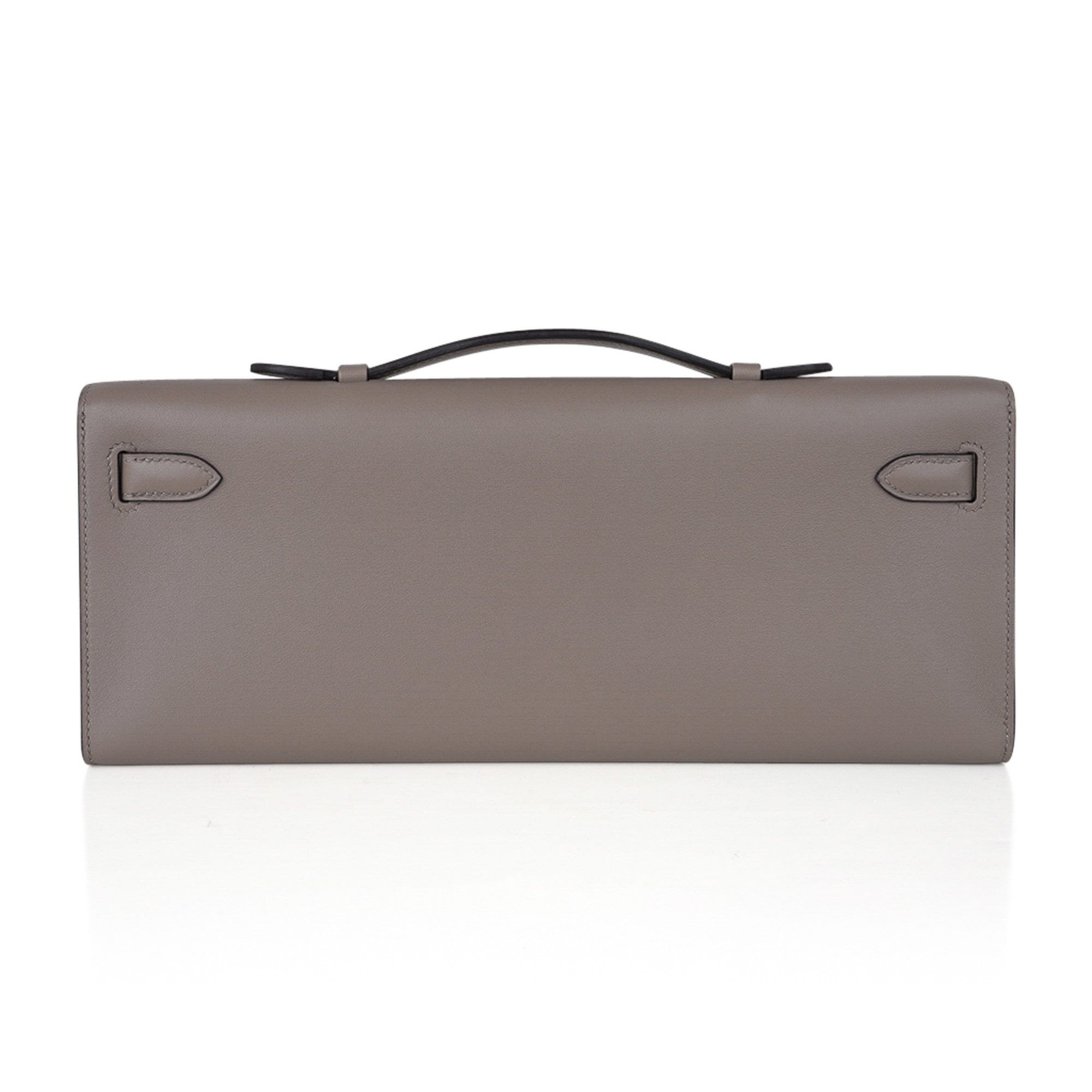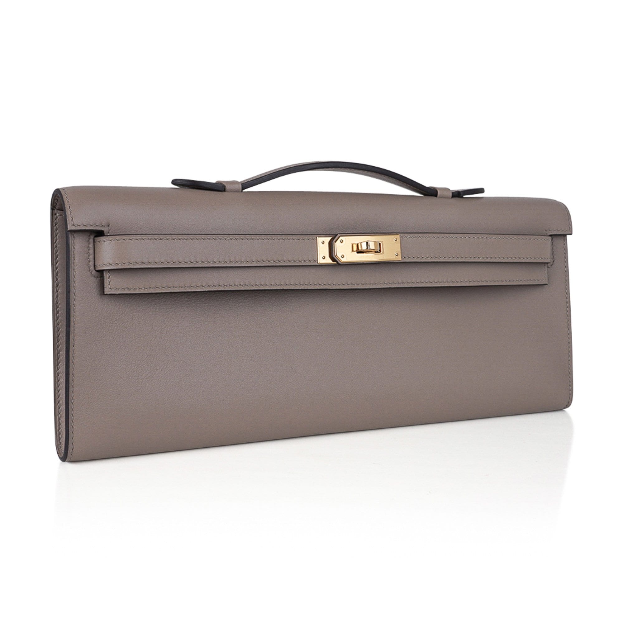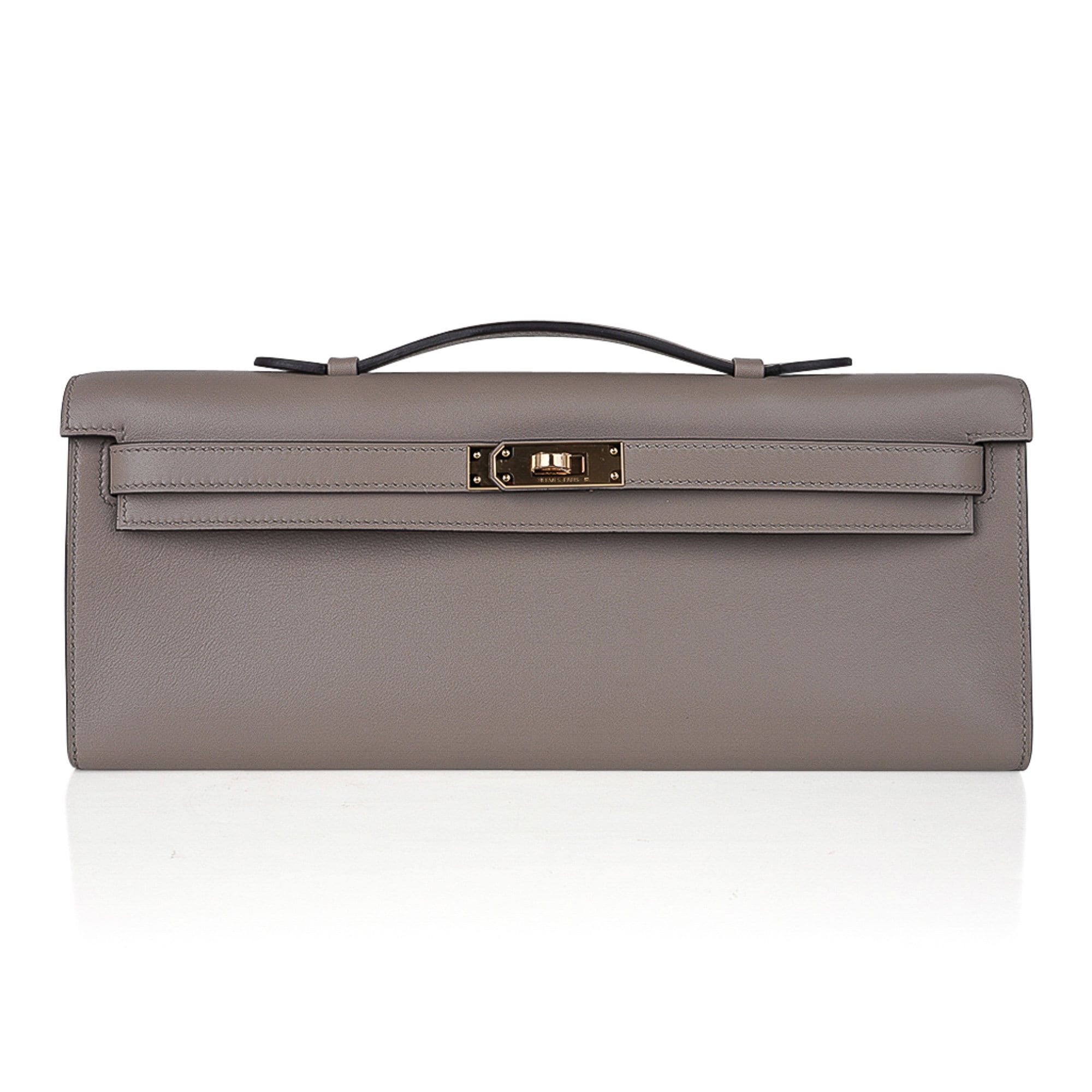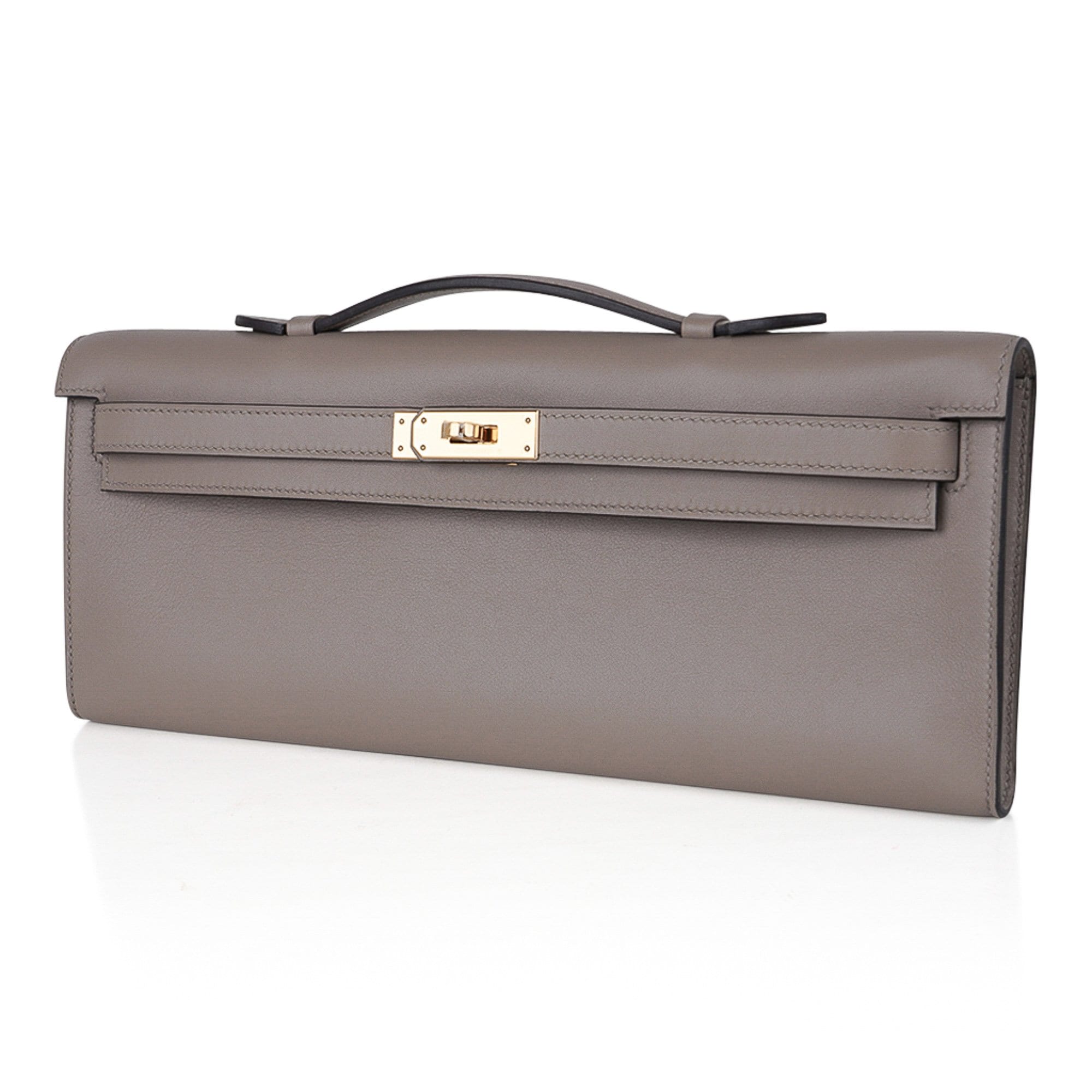 Hermes Kelly Cut Bag Gris Asphalte Gray Clutch Swift Gold Hardware