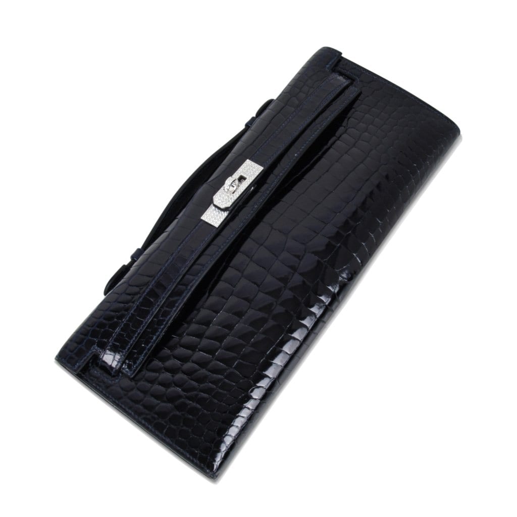 The Kelly Cut has a sharp rectangular shape and is longer and thinner than the Kelly Pochette. Although the Kelly Cut is often viewed as more elegant, both styles are classy and versatile, transitioning from day to night effortlessly.