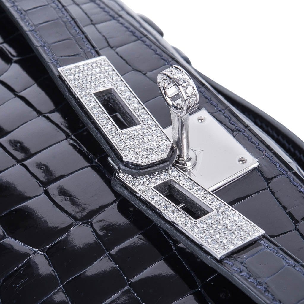 Guaranteed authentic timeless very rare diamond Hermes Kelly Cut bag features rich jewel toned Blue Marine.