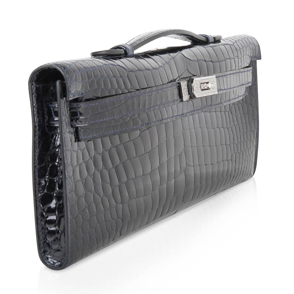 Exquisite Hermes Kelly Clutch with Hermes set diamonds.