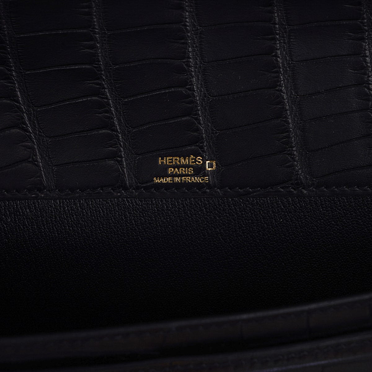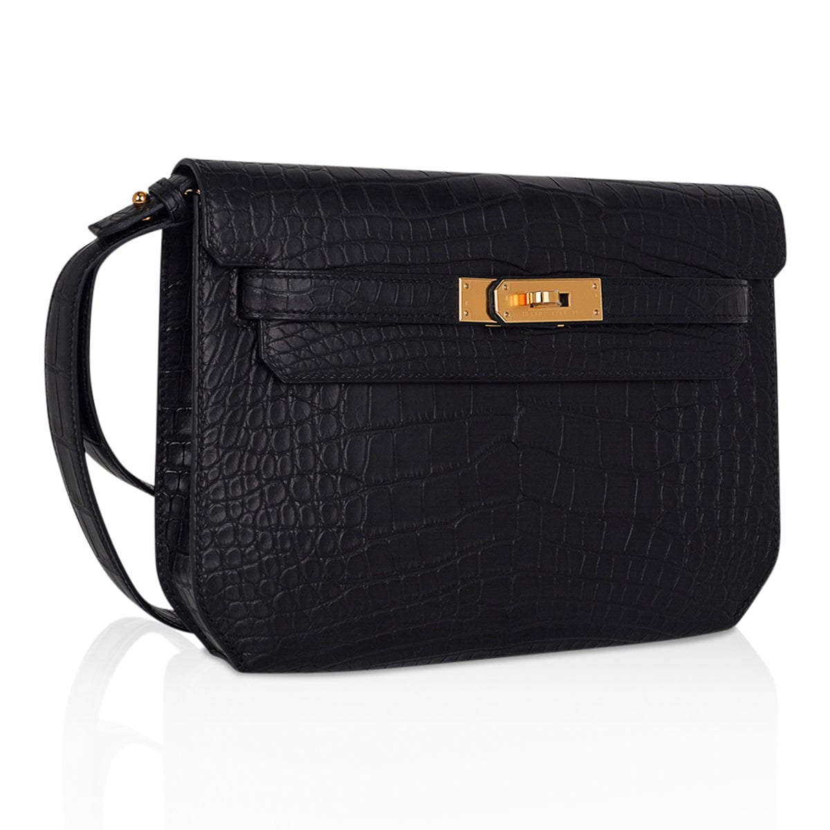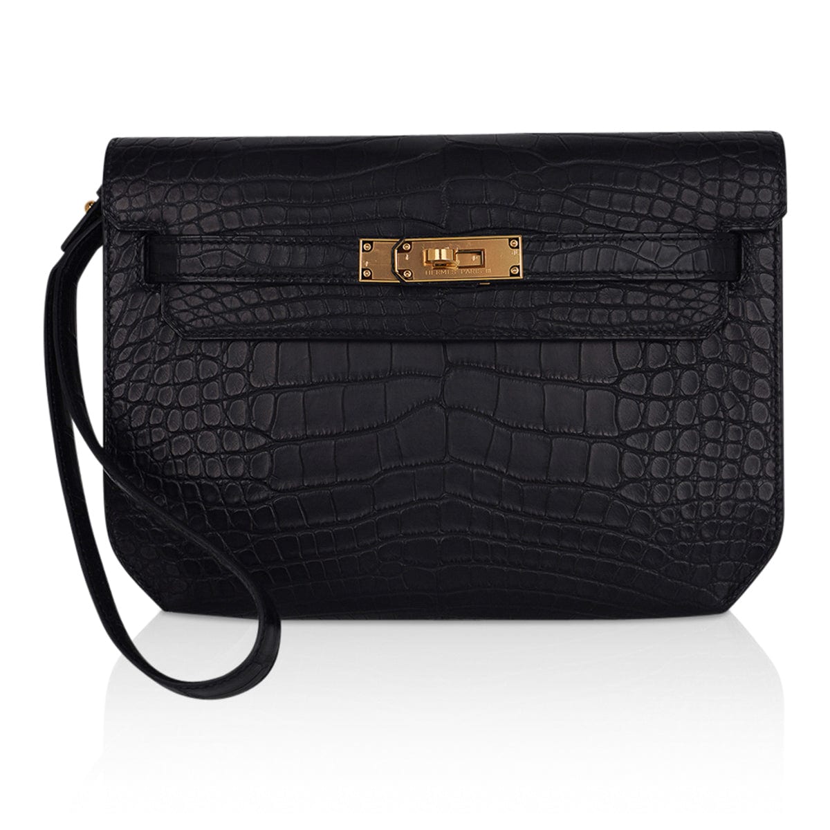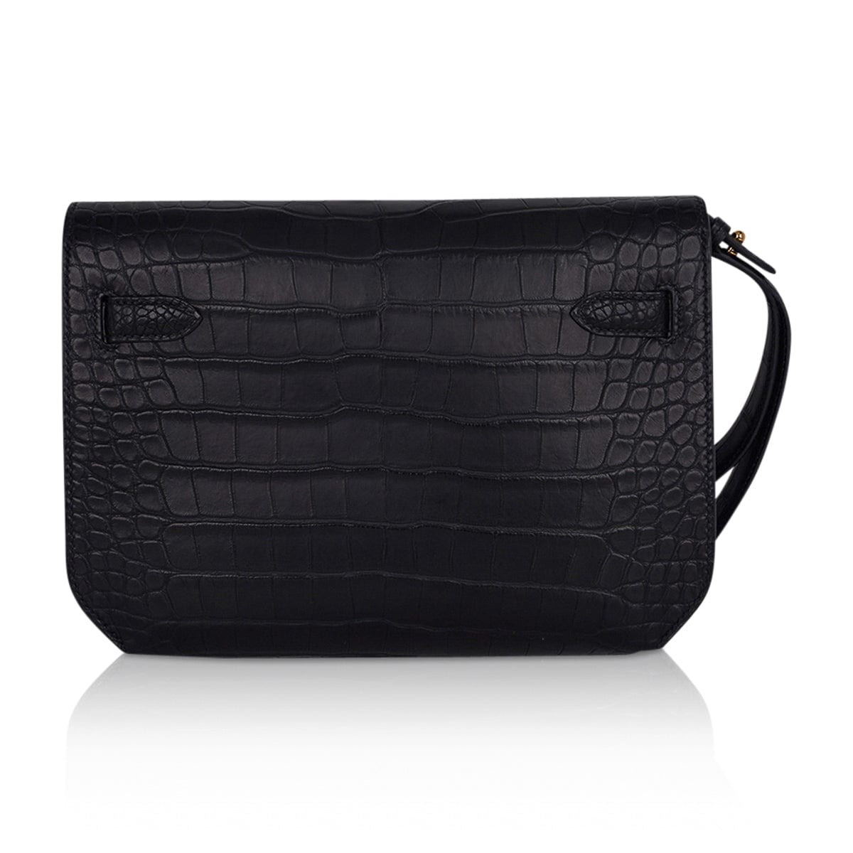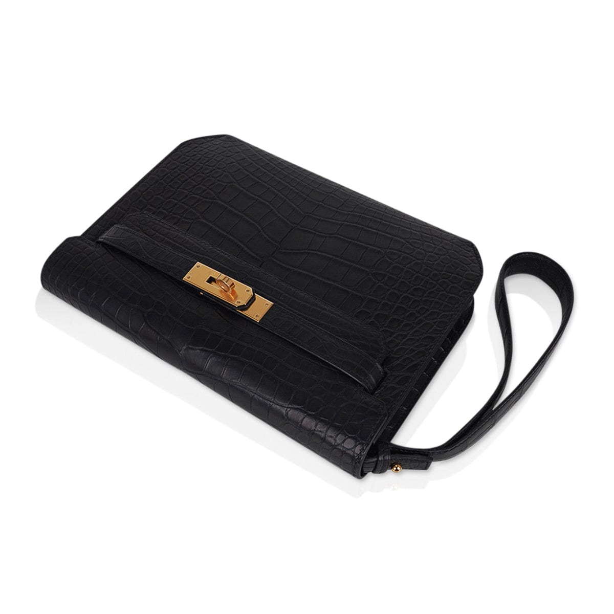 Guaranteed authentic men’s Hermes Kelly Depeches 25 Pouch featured in Black matte Alligator.