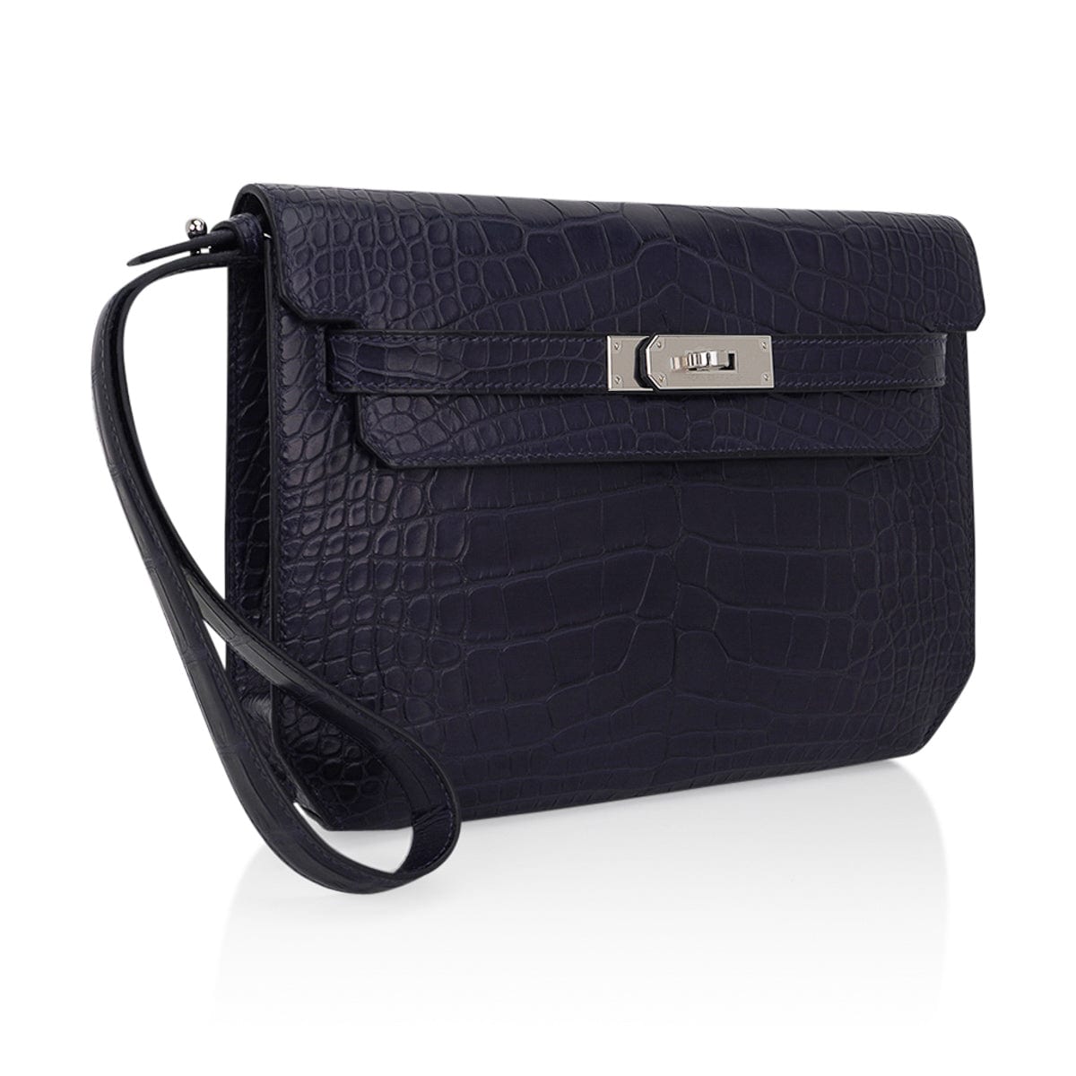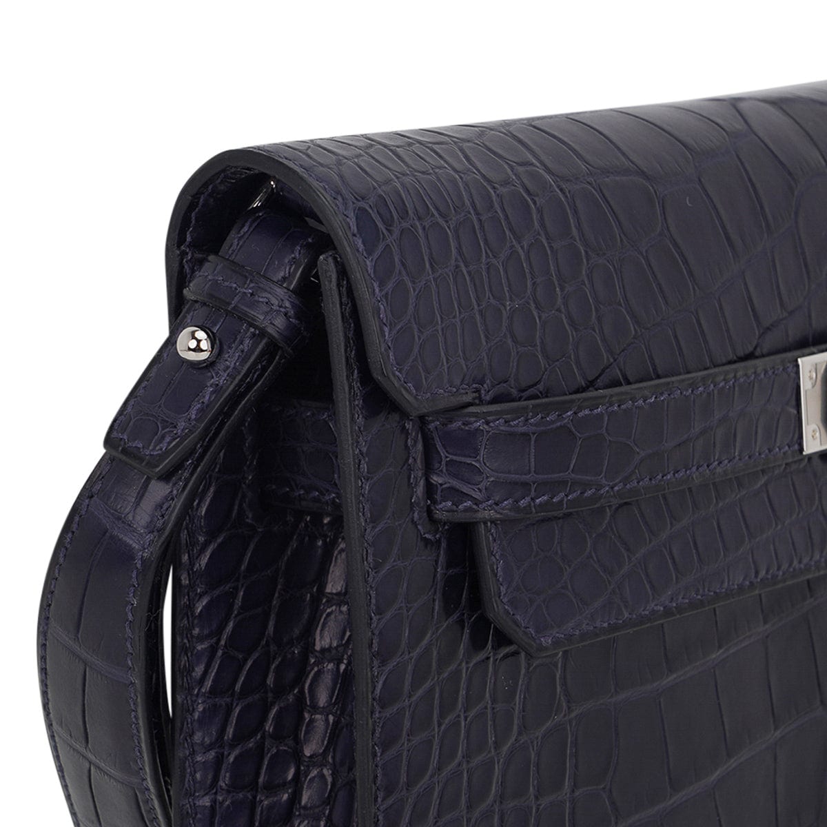 Hermes Kelly Depeches 25 Pouch Blue Indigo Matte Alligator Palladium Hardware
