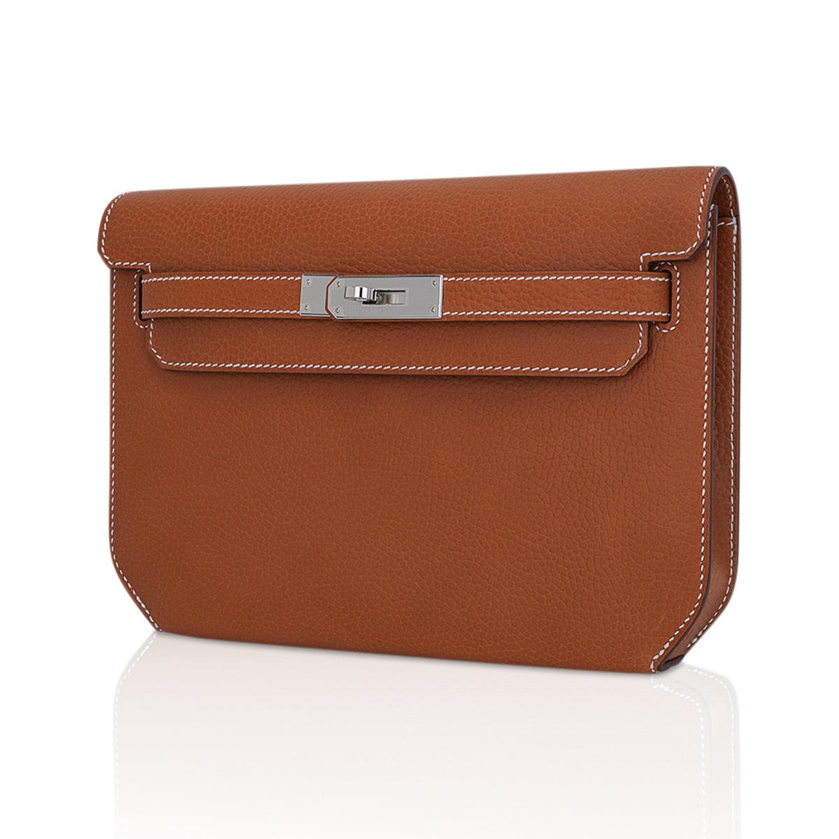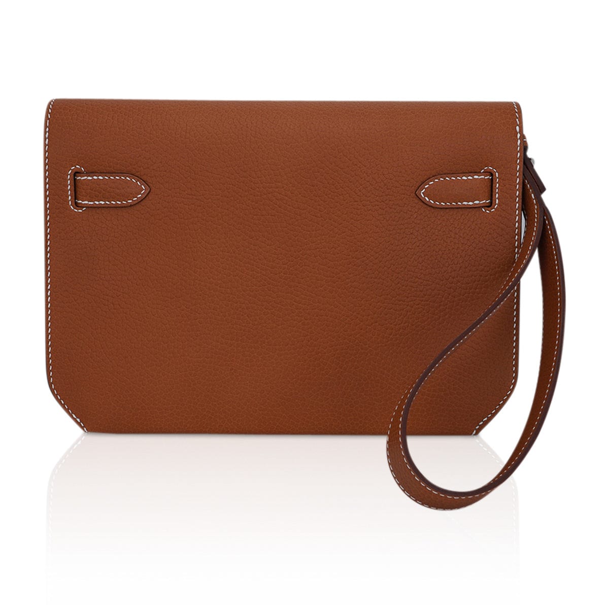 Guaranteed authentic Hermes Kelly Depeches 25 Pouch featured in very rare Fauve Galop D’Hermes Vache leather.