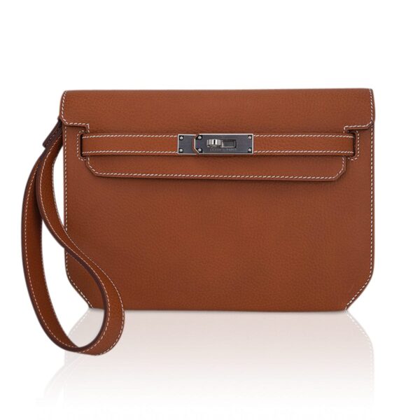 Hermes Kelly Depeches 25 Pouch Fauve Galop D’Hermes Vache Palladium Hardware