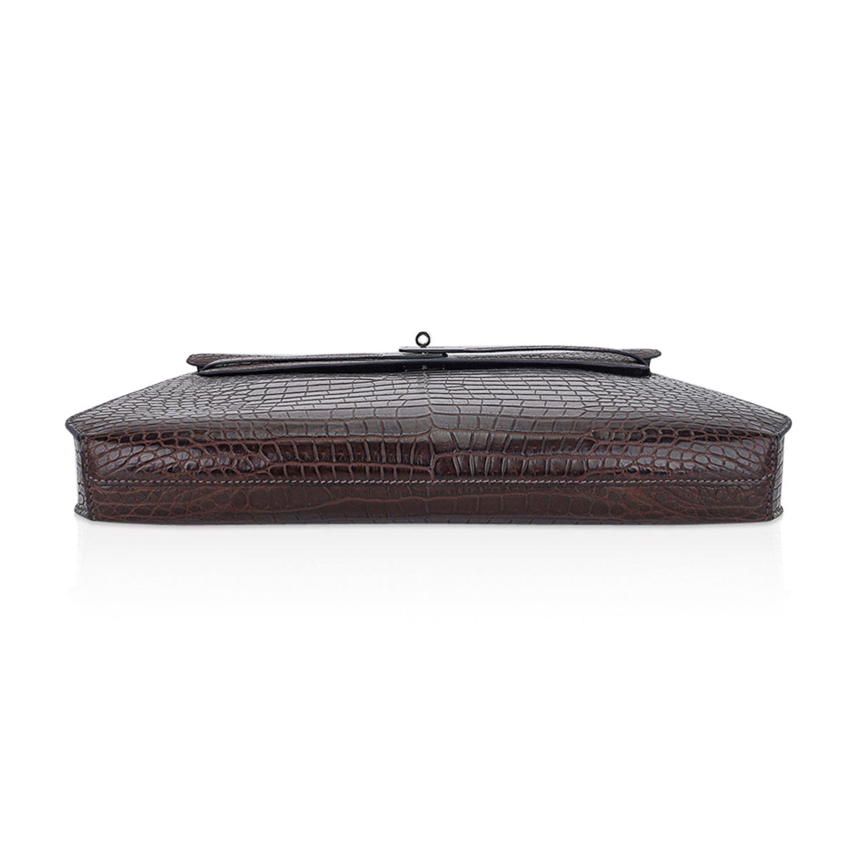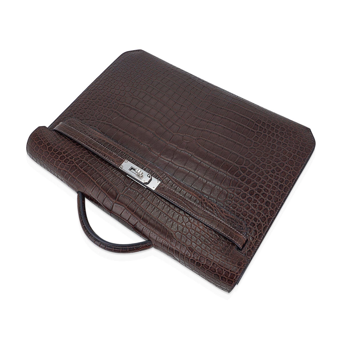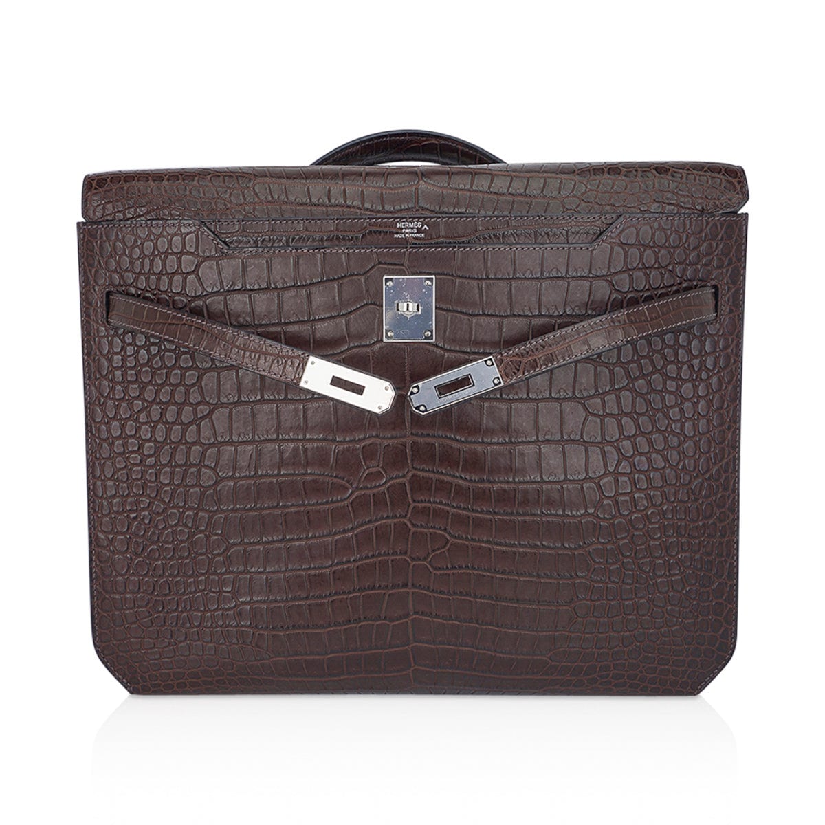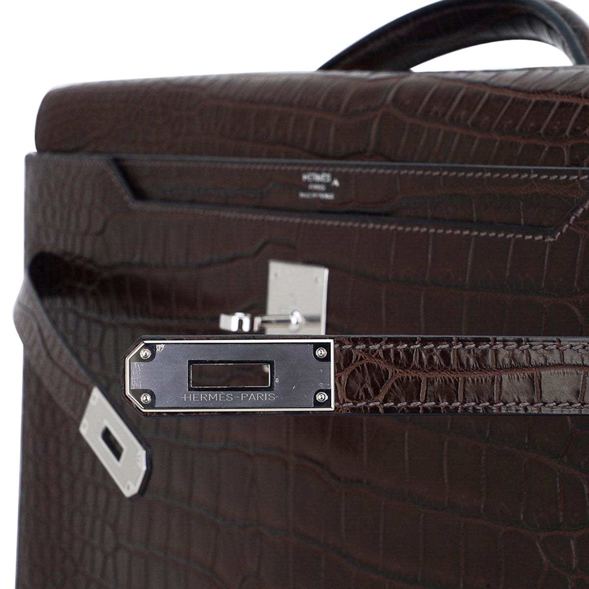 Guaranteed authentic Hermes coveted Kelly Depeches 36 briefcase featured in Matte Havane Porosus Crocodile.