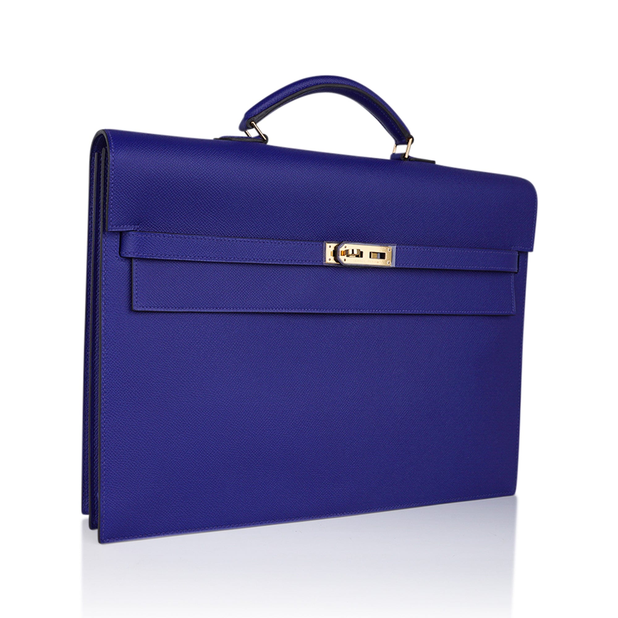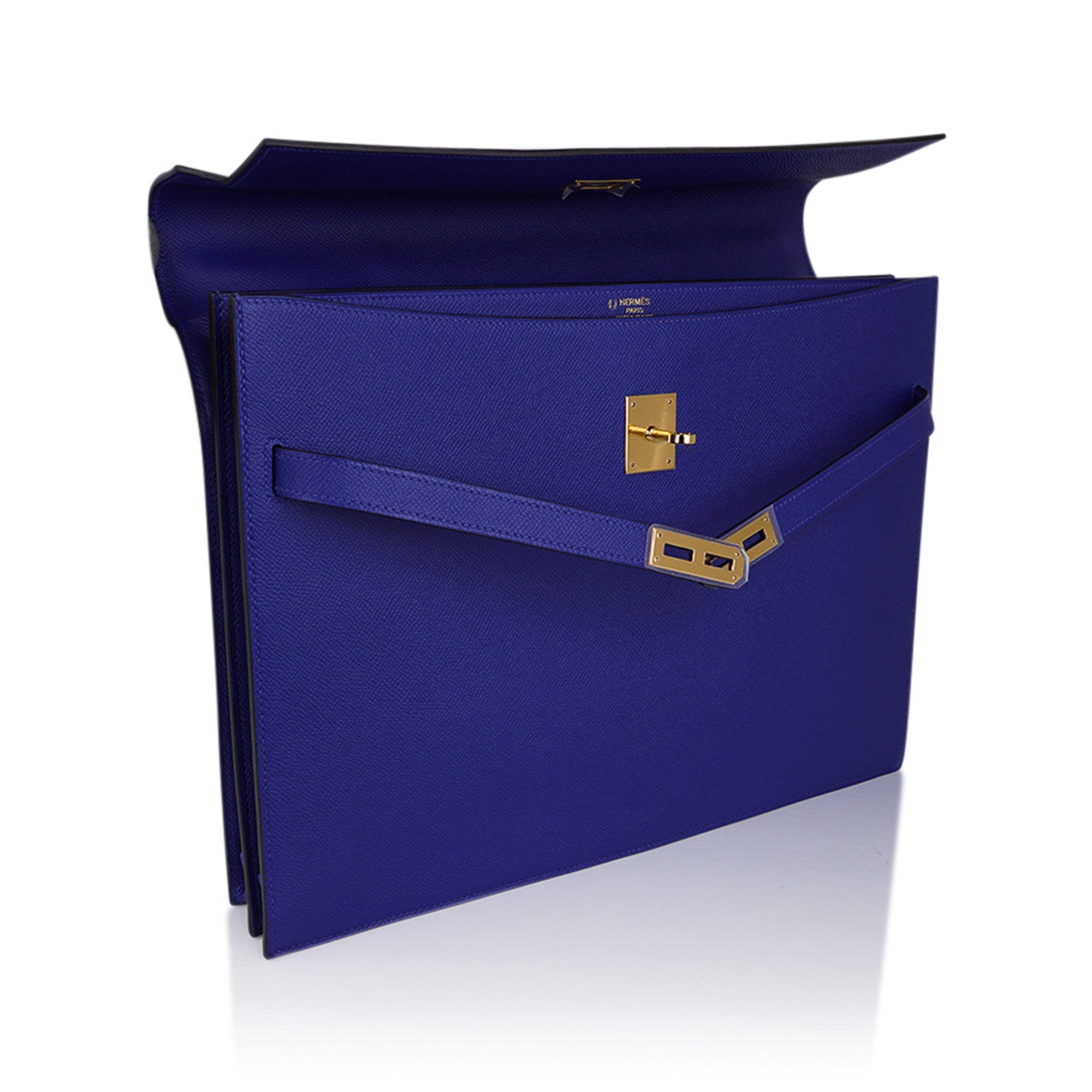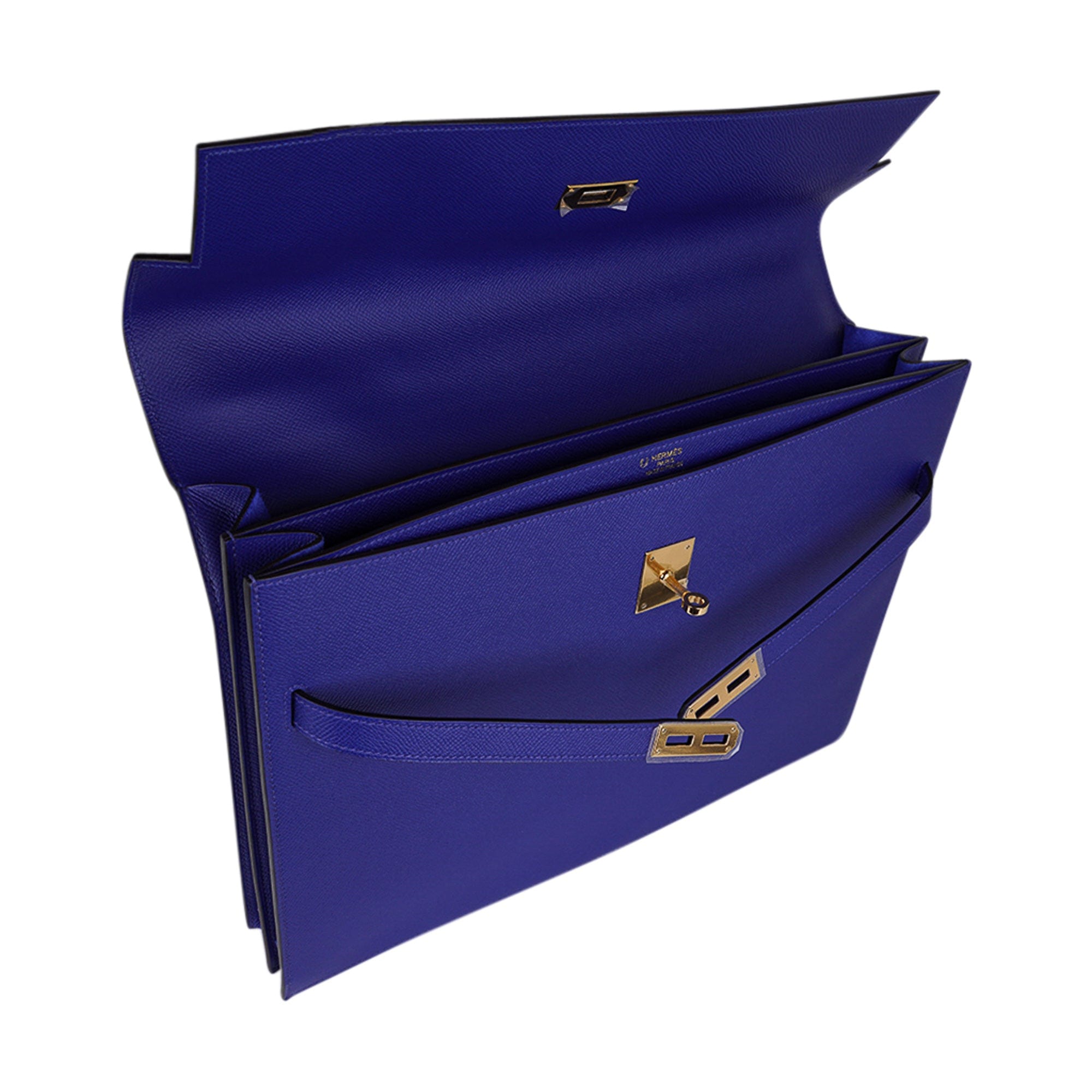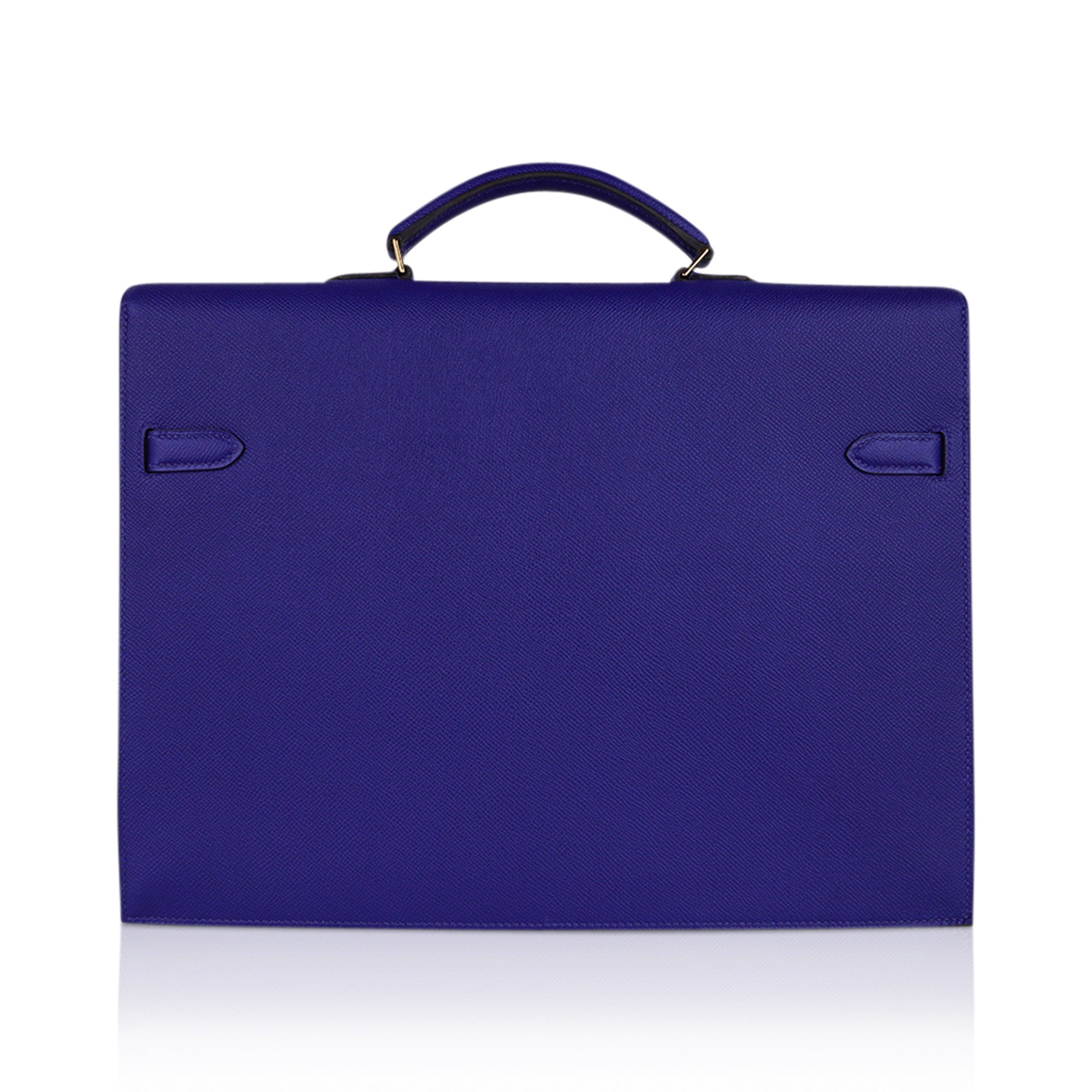 Hermes Kelly Depeches HSS 38 Briefcase Blue Electric Gold Hardware Epsom Hardware