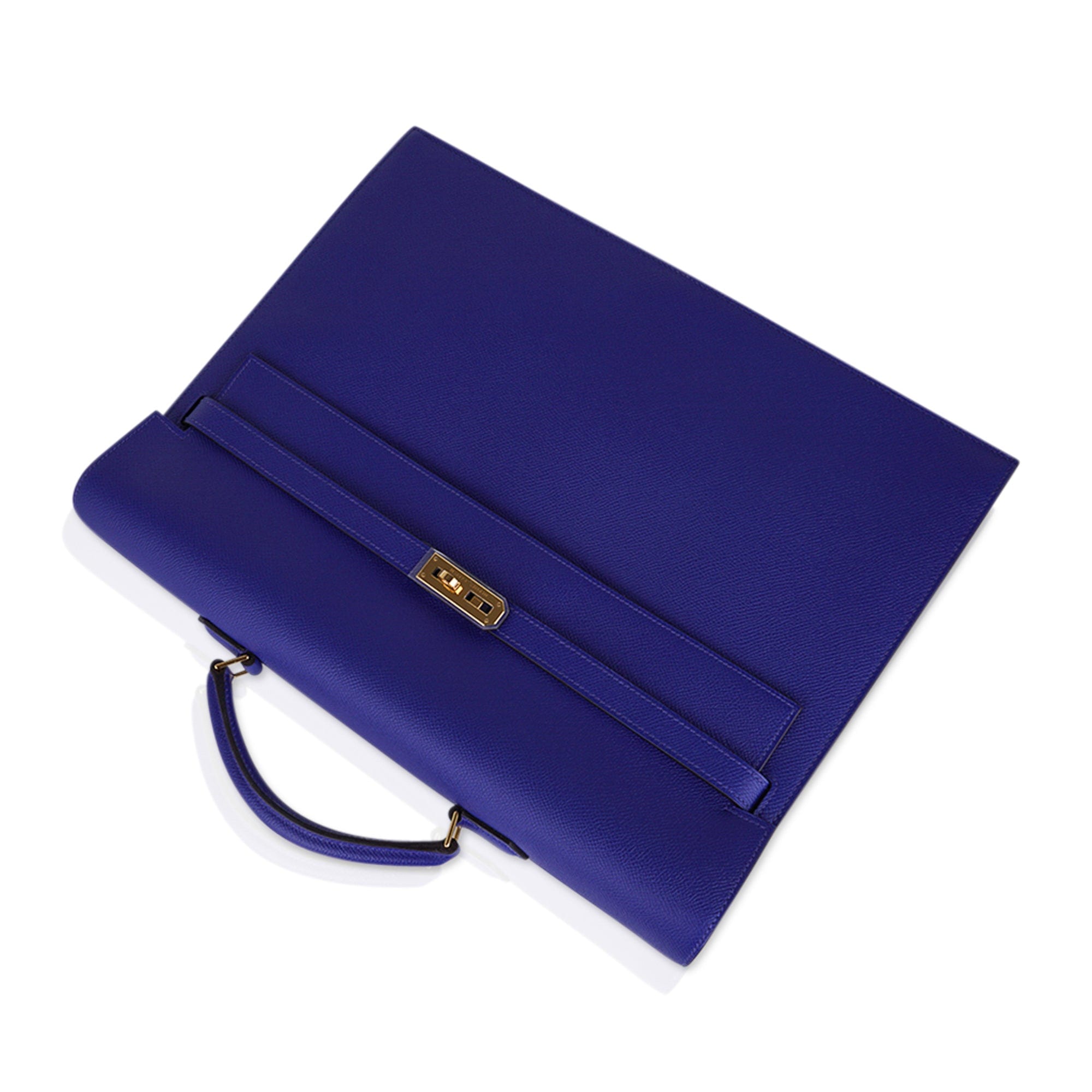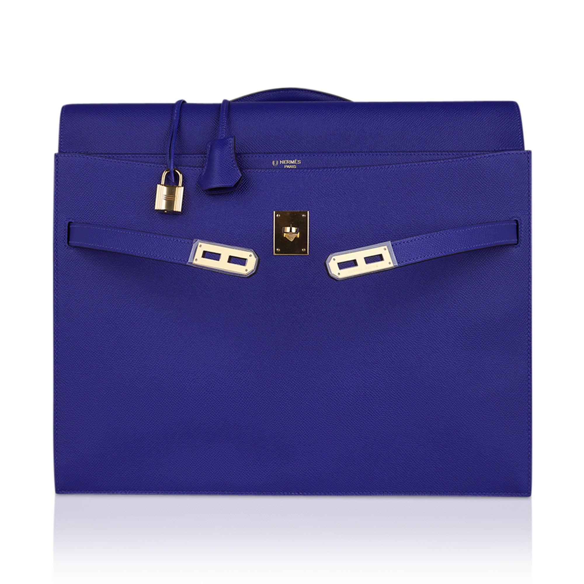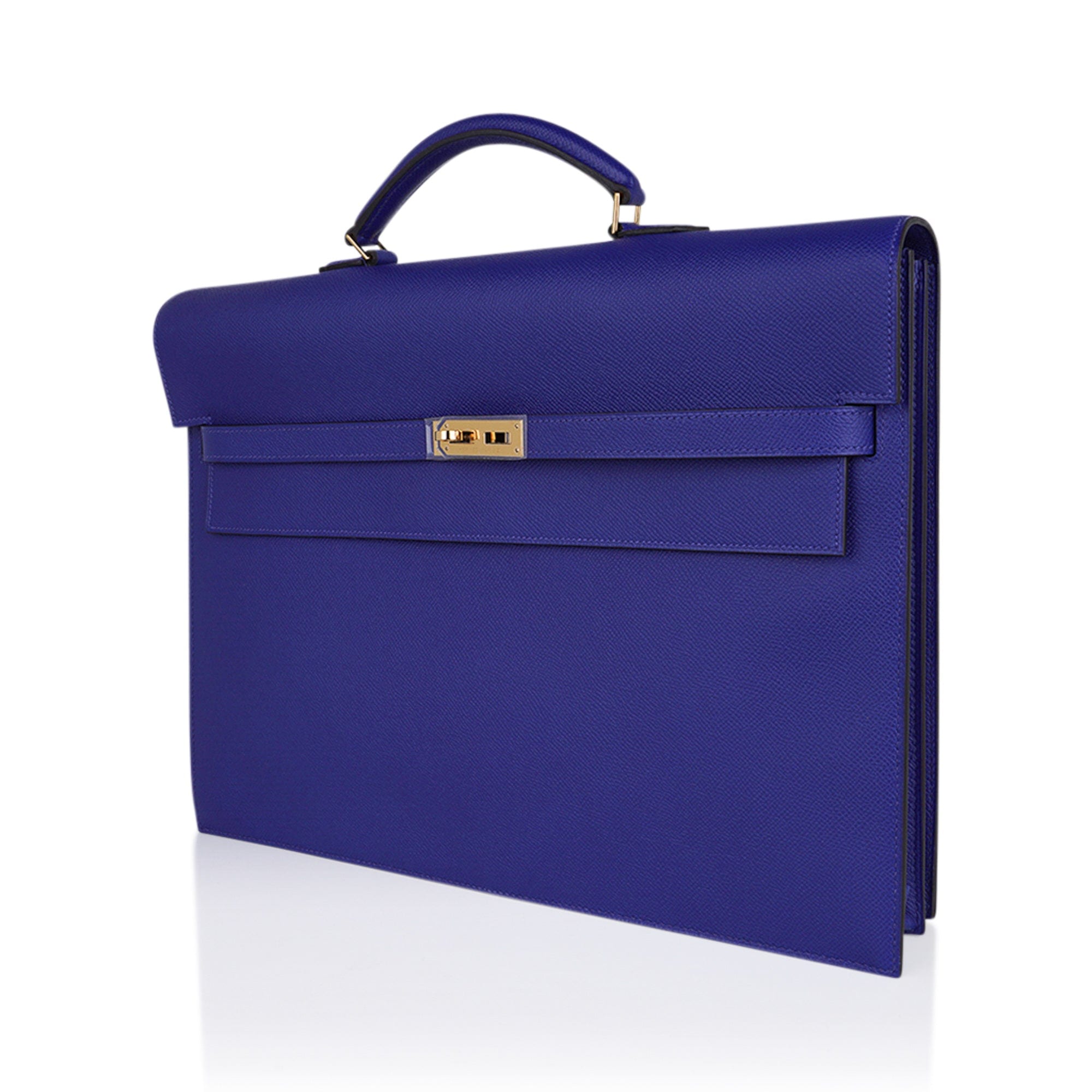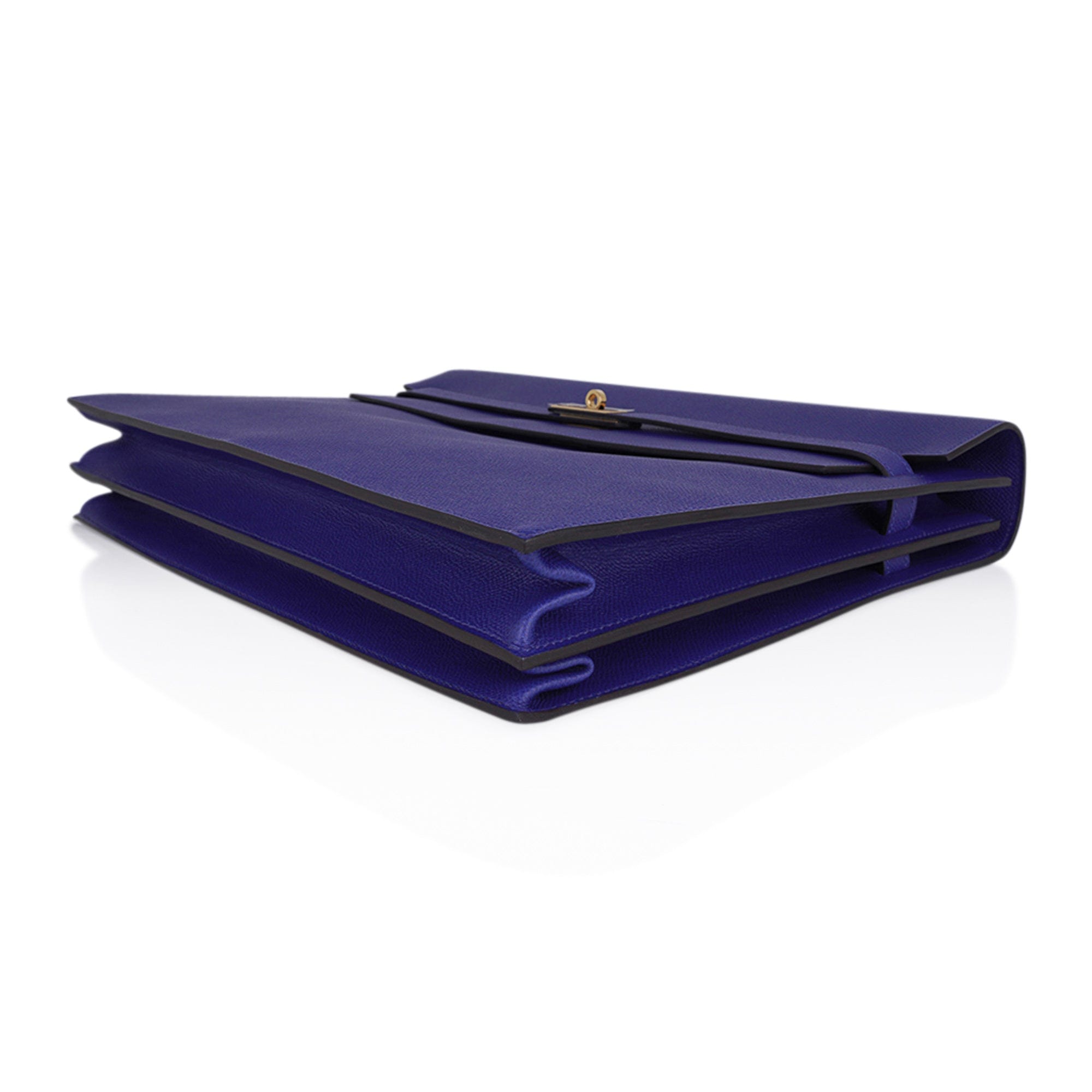 Hermes Kelly Depeches HSS 38 Briefcase Blue Electric Gold Hardware Epsom Hardware