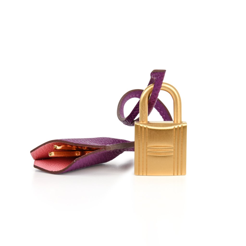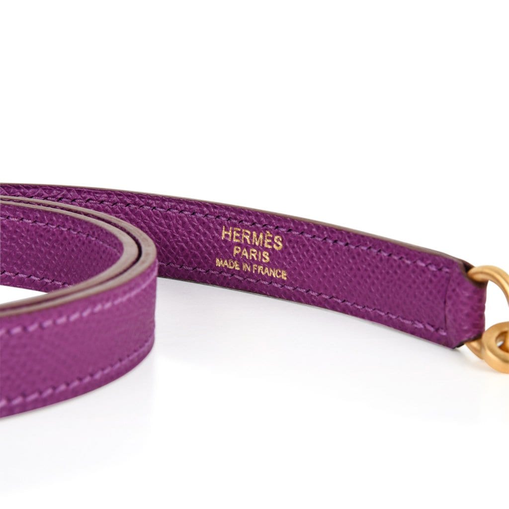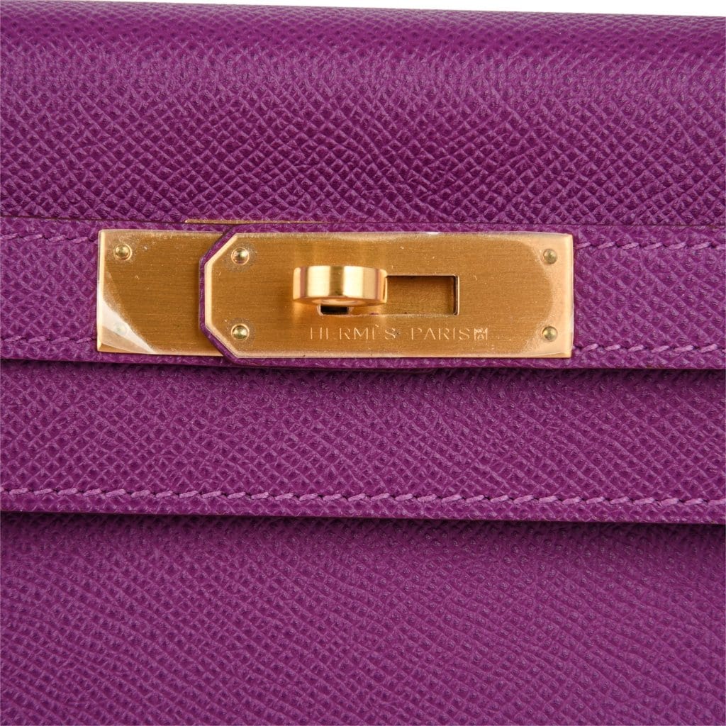 A magnificent Hermes Kelly purple bag in Epsom leather with coveted brushed gold hardware.