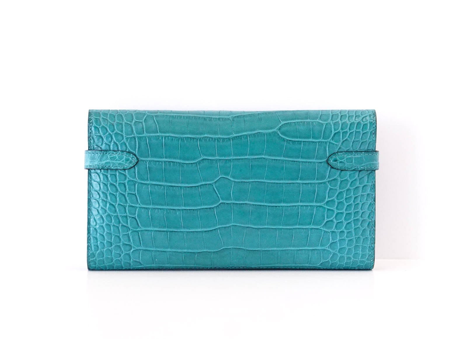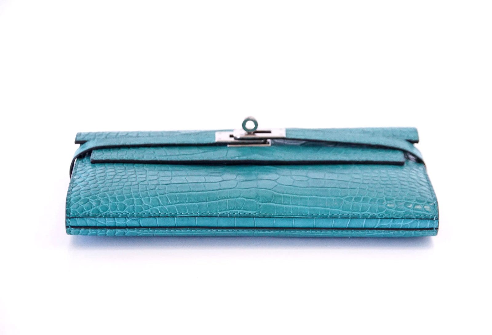 Guaranteed authentic timeless matte Alligator Hermes Kelly Long Wallet.