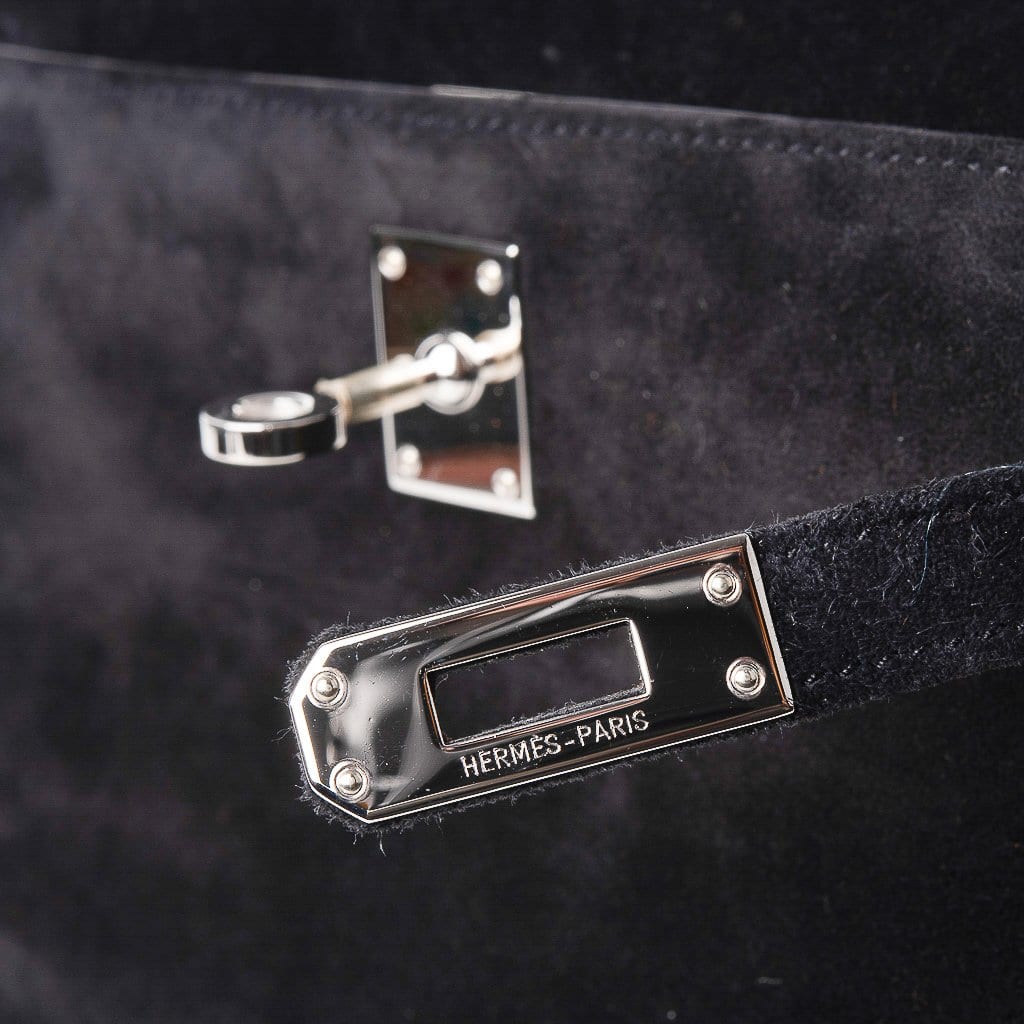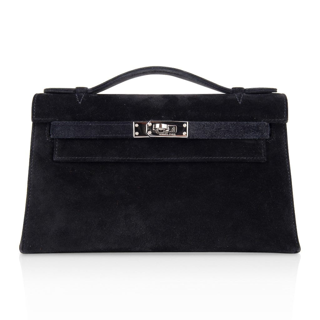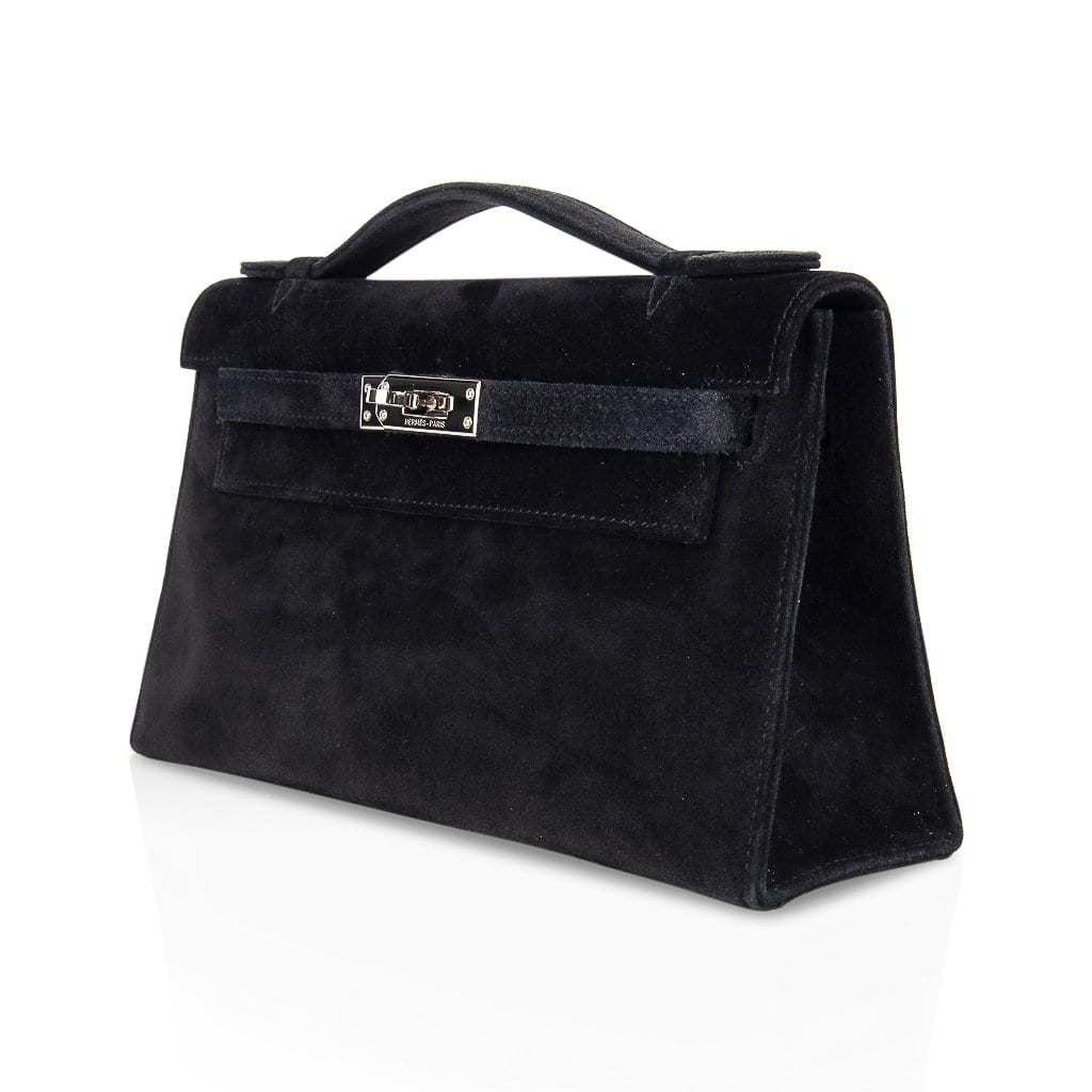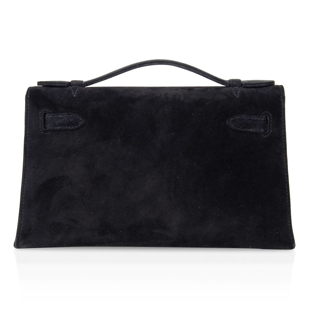 Hermes Kelly Pochette Black Doblis Suede Palladium