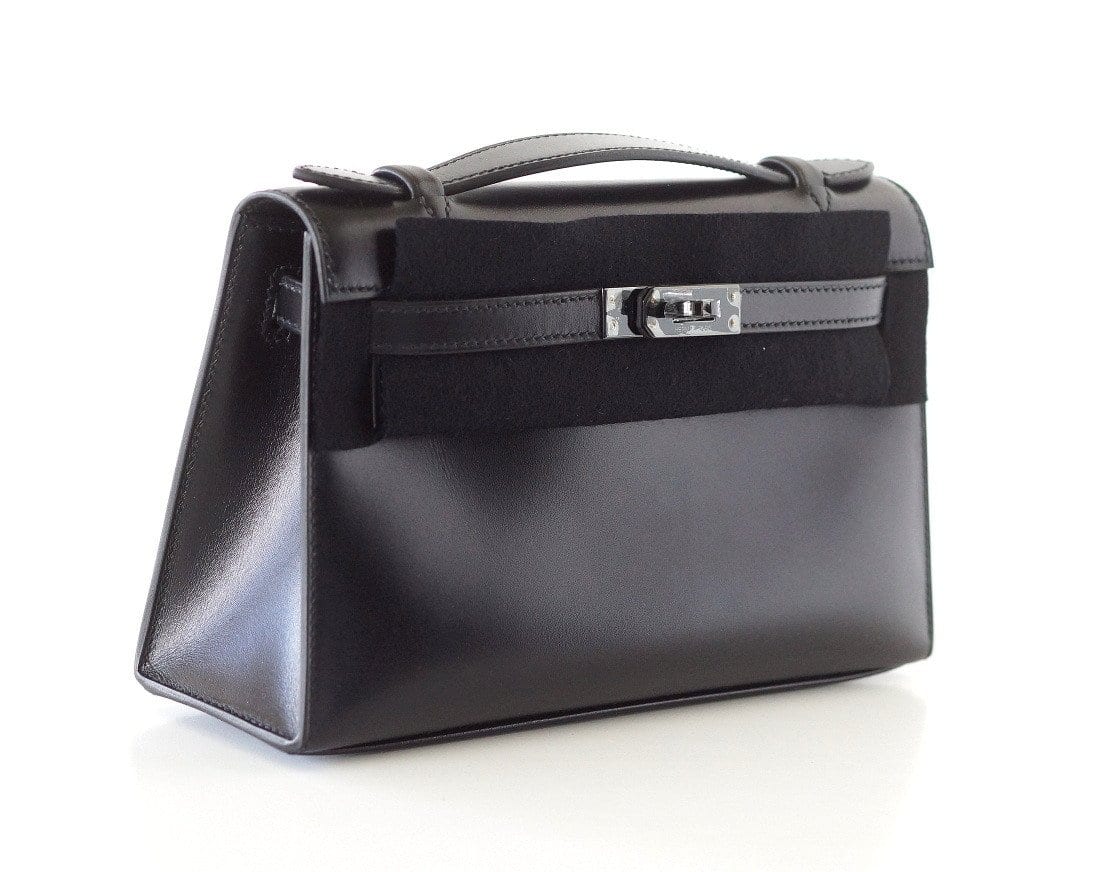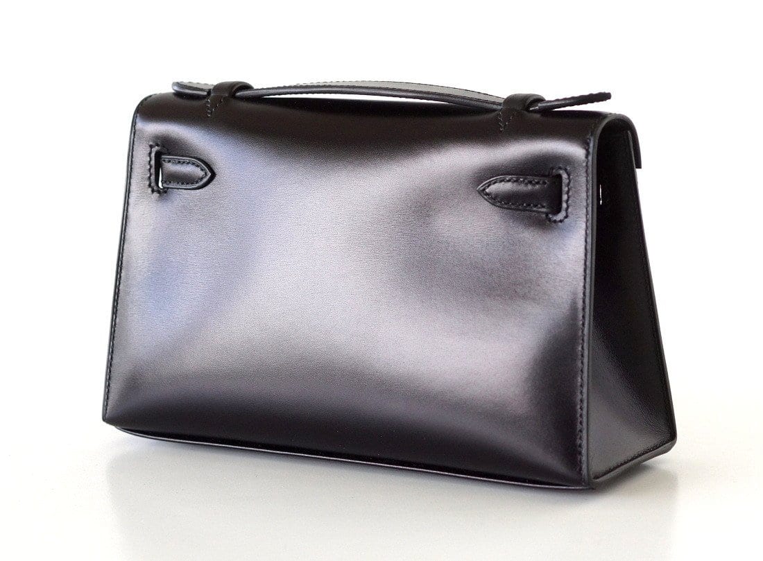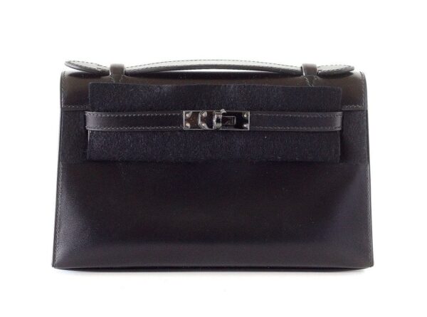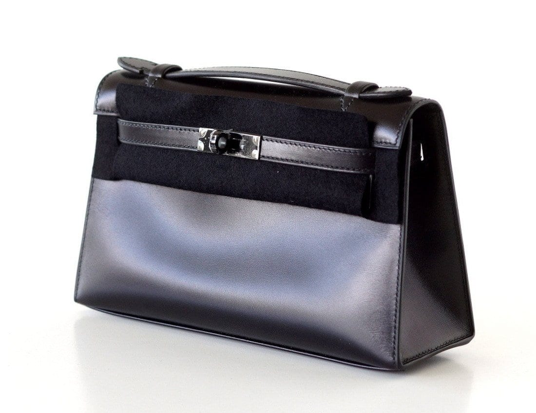 Guaranteed authentic Hermes Kelly Pochette Limited Edition So Black – Rare as very few pochettes were produced.