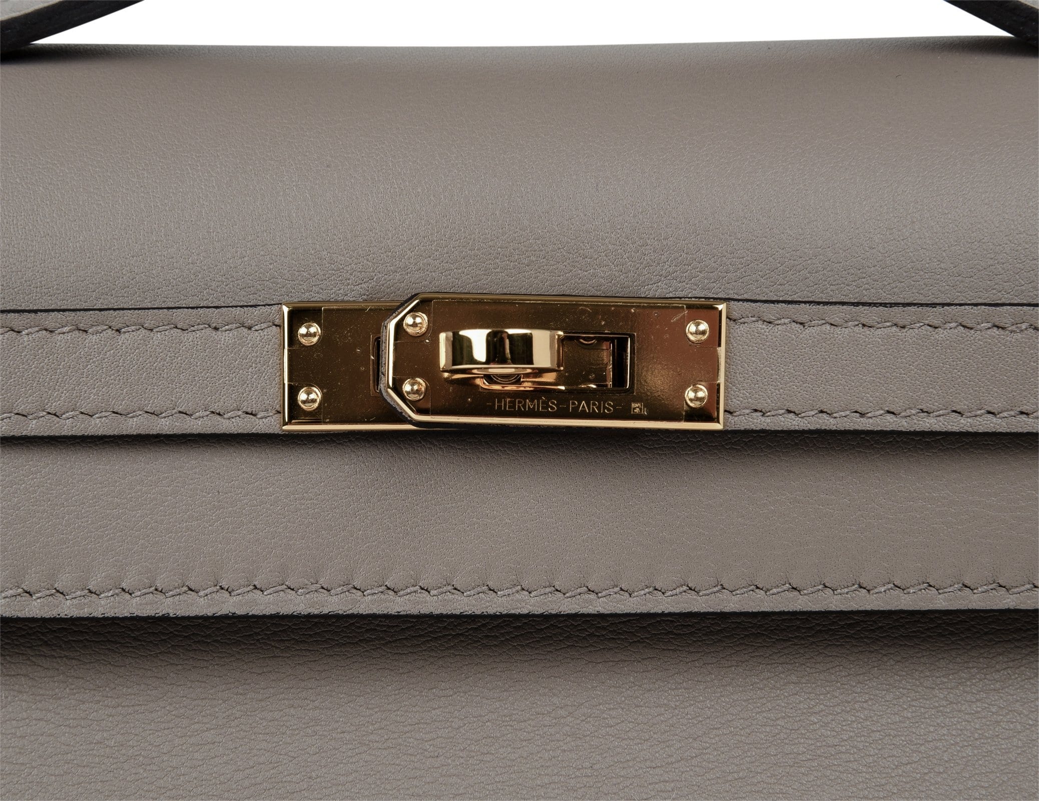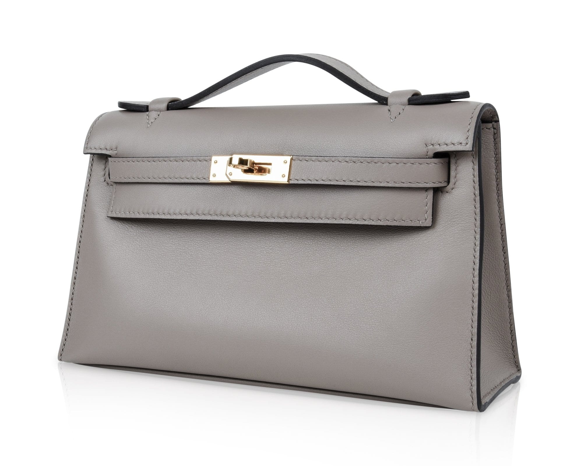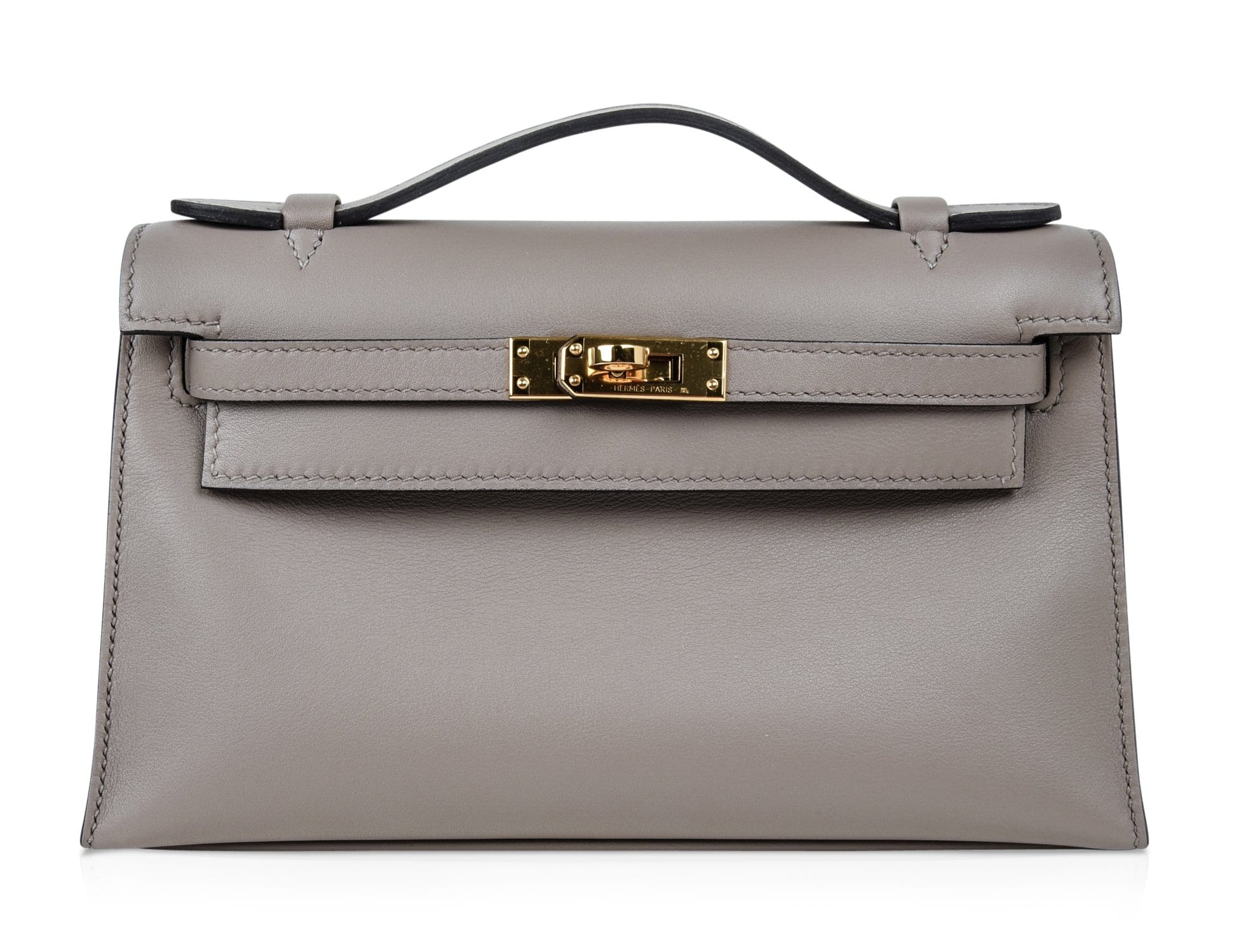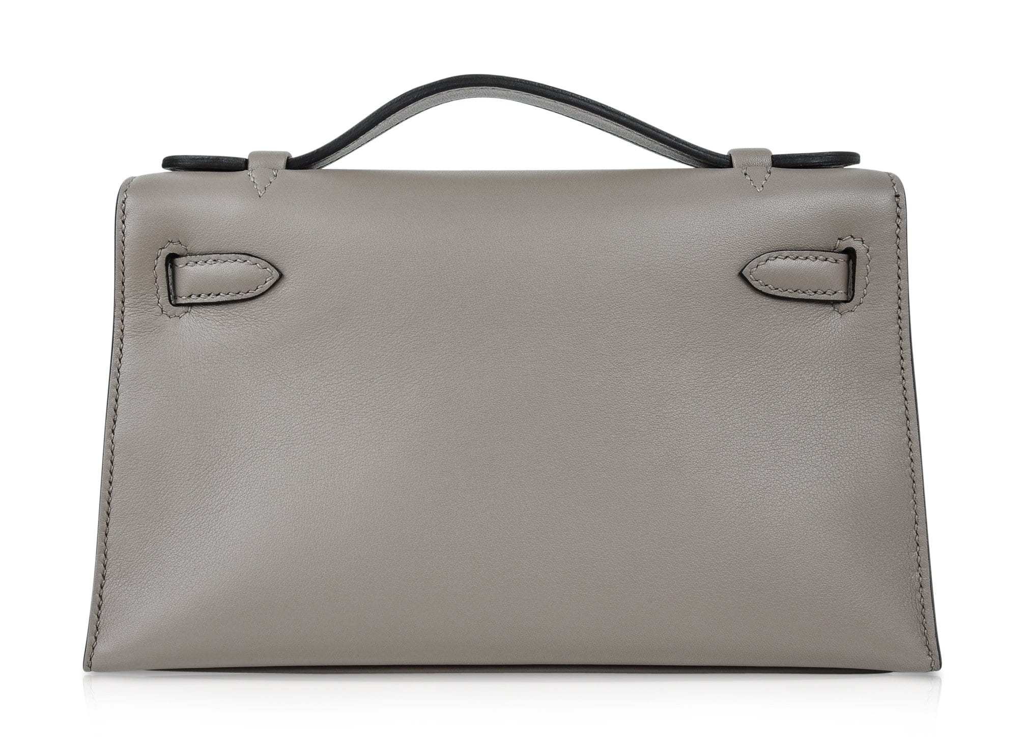 Guaranteed authentic gorgeous Hermes Kelly Pochette in Gris Asphalte.