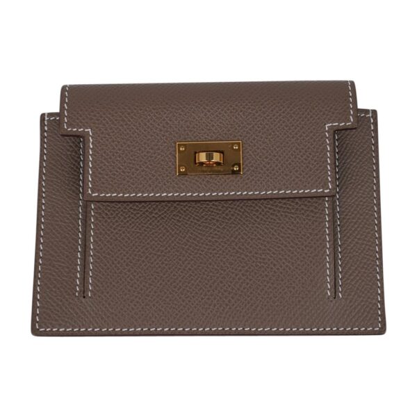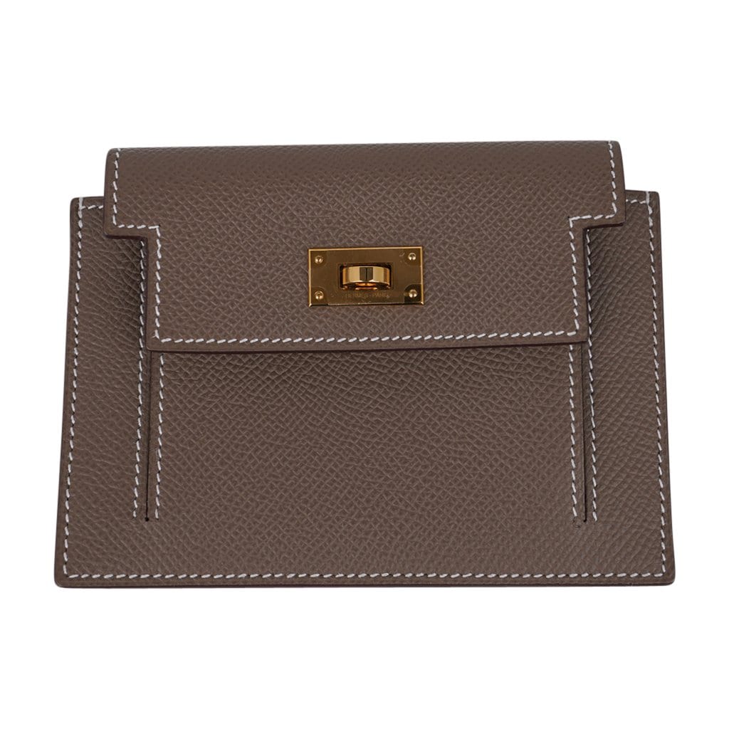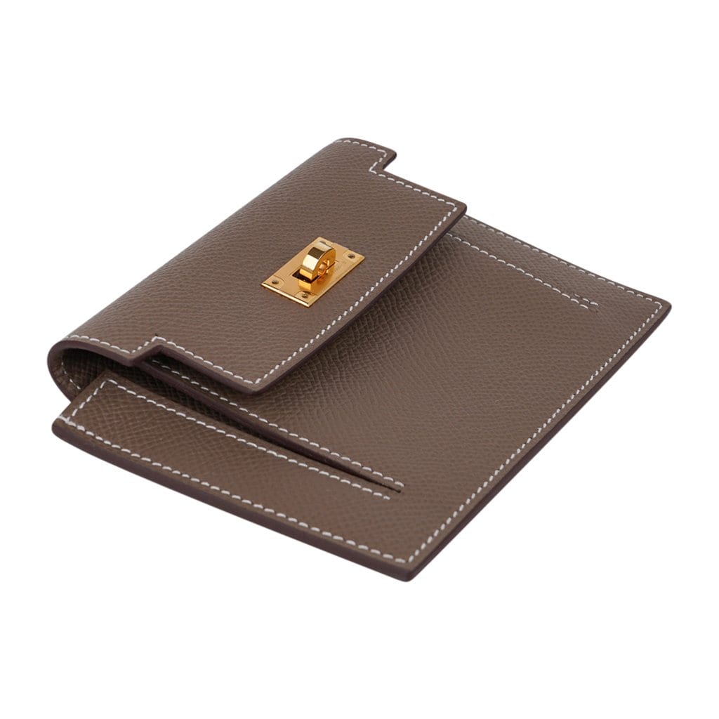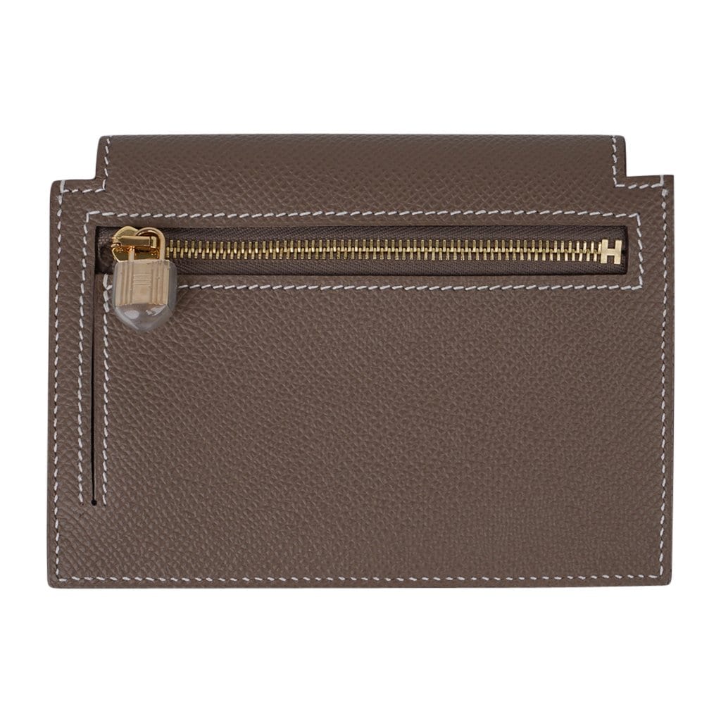 Guaranteed authentic Hermes Pocket Compact Wallet featured in Etoupe Espom calfskin.