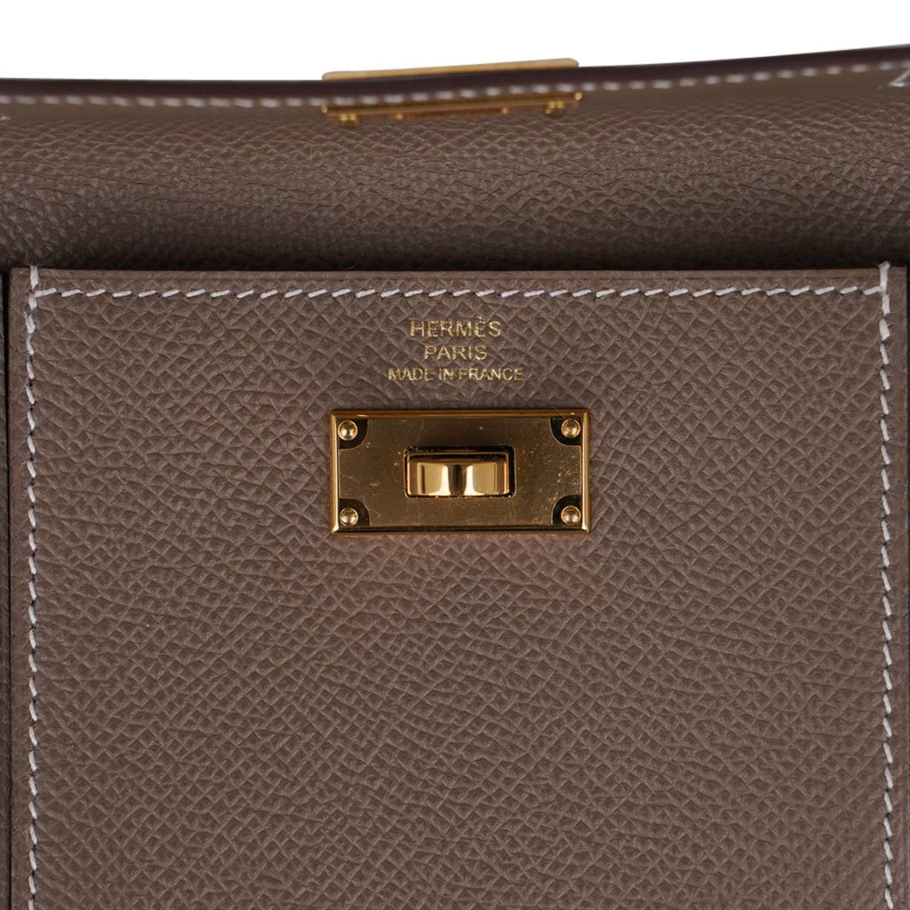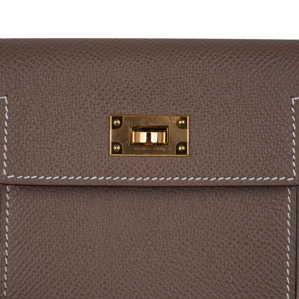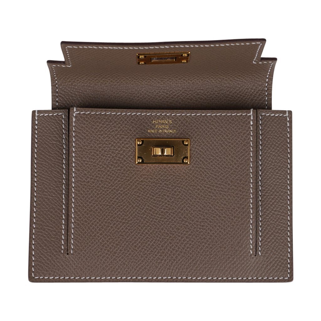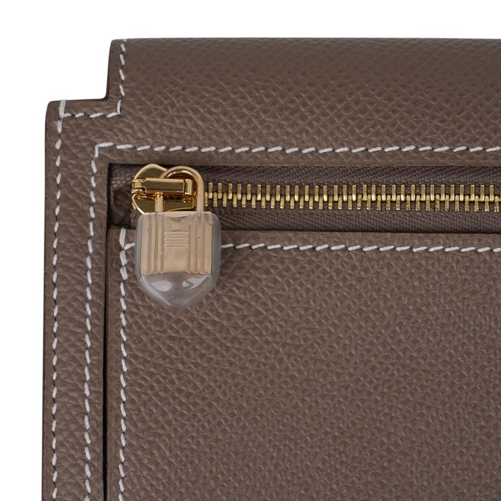 Guaranteed authentic Hermes Pocket Compact Wallet featured in Etoupe Espom calfskin.