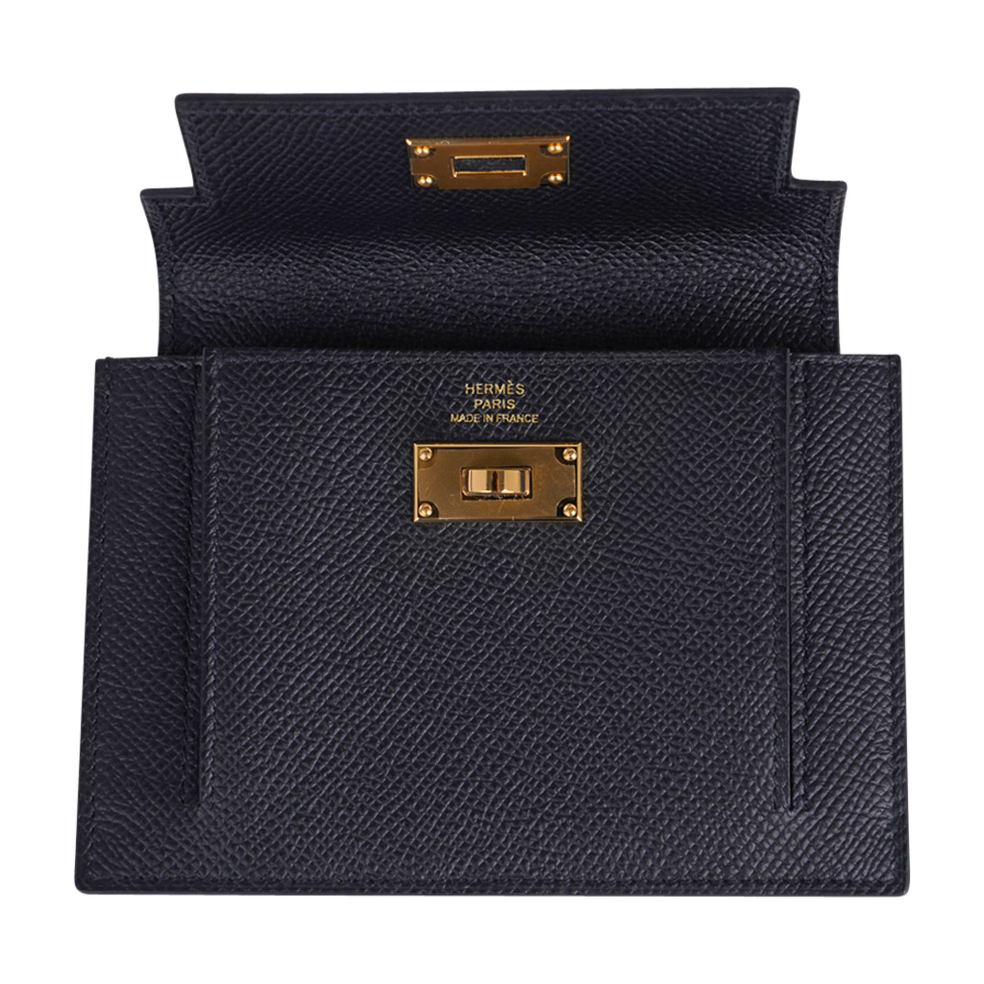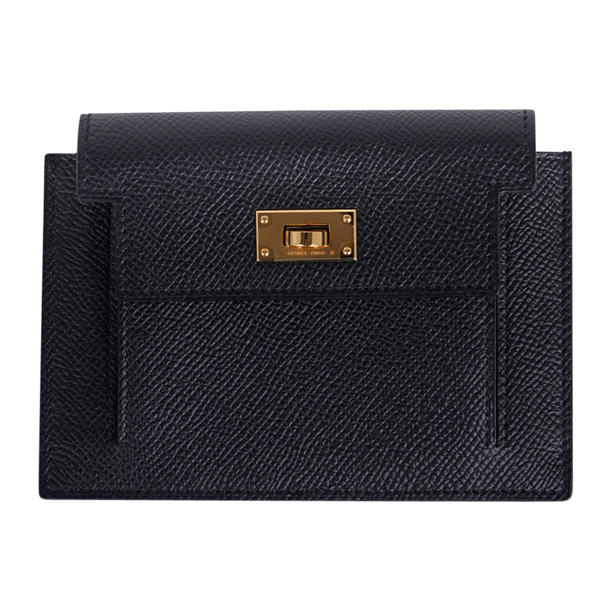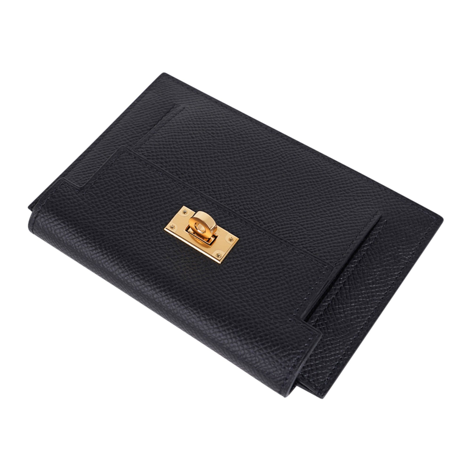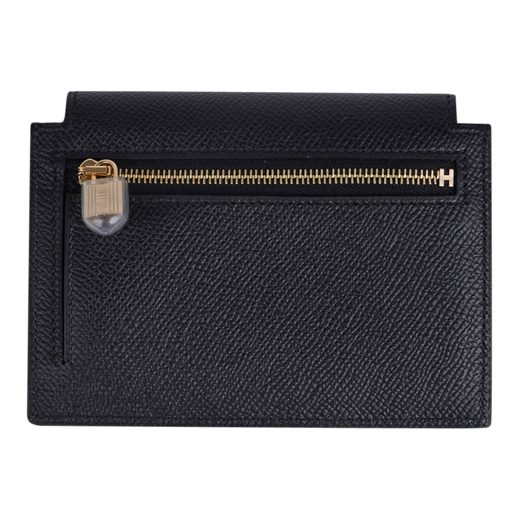 Guaranteed authentic Hermes Pocket Compact Wallet featured in Noir Espom calfskin.
