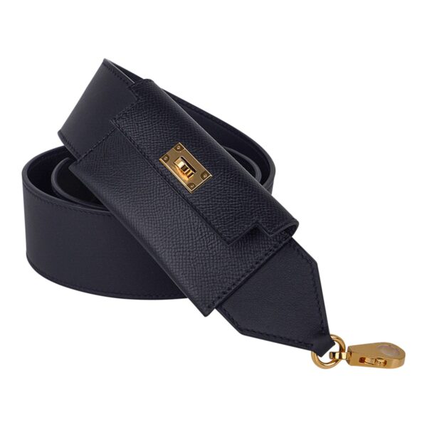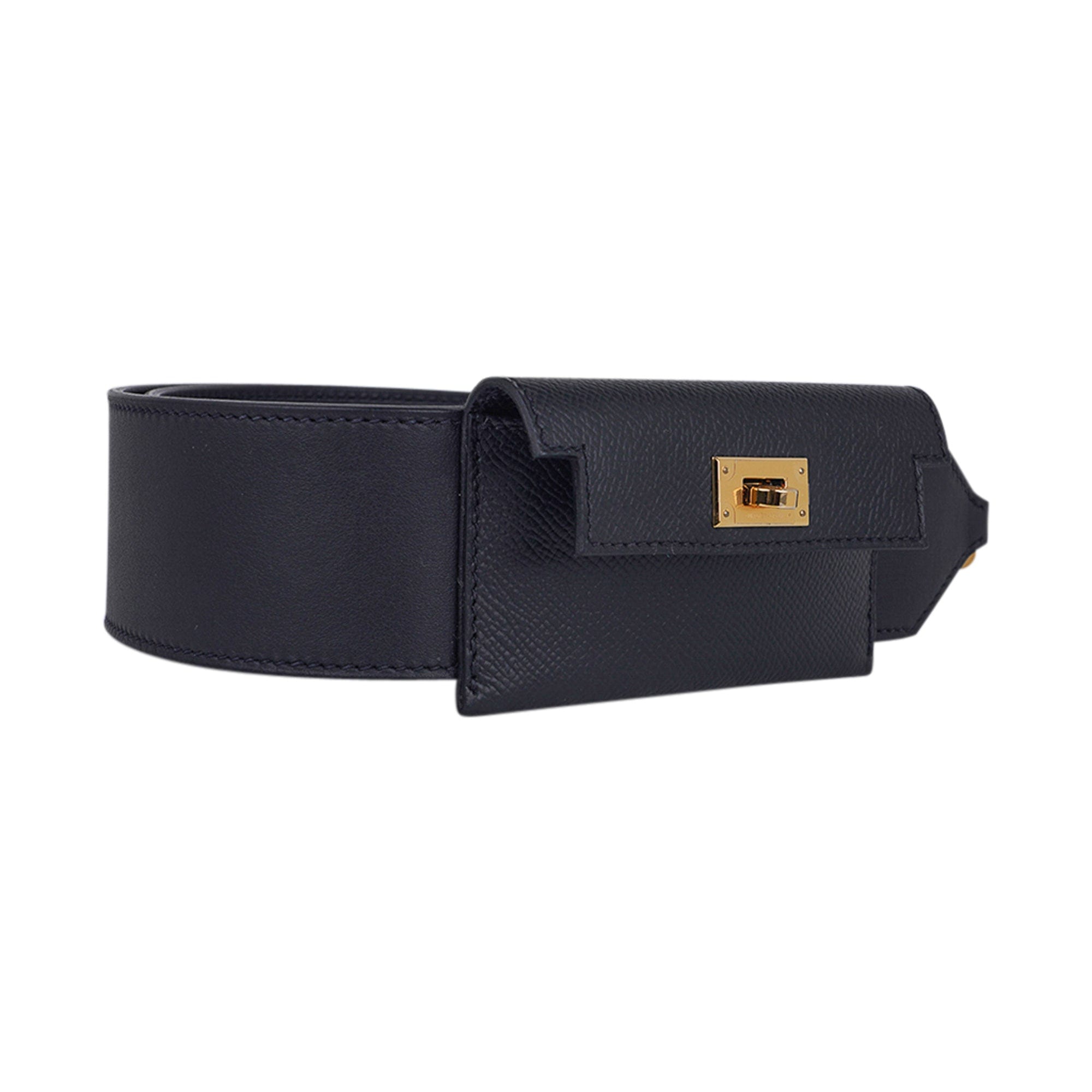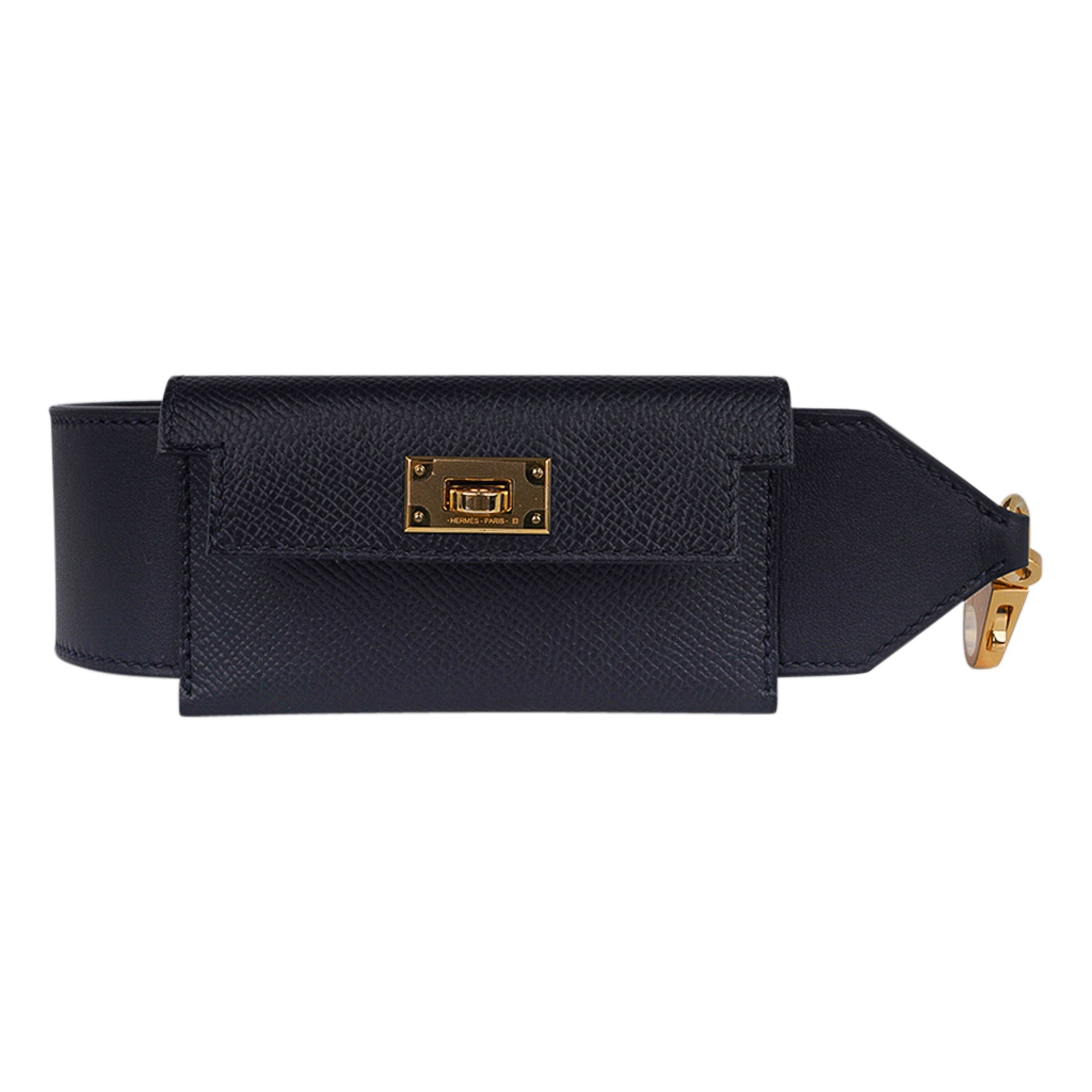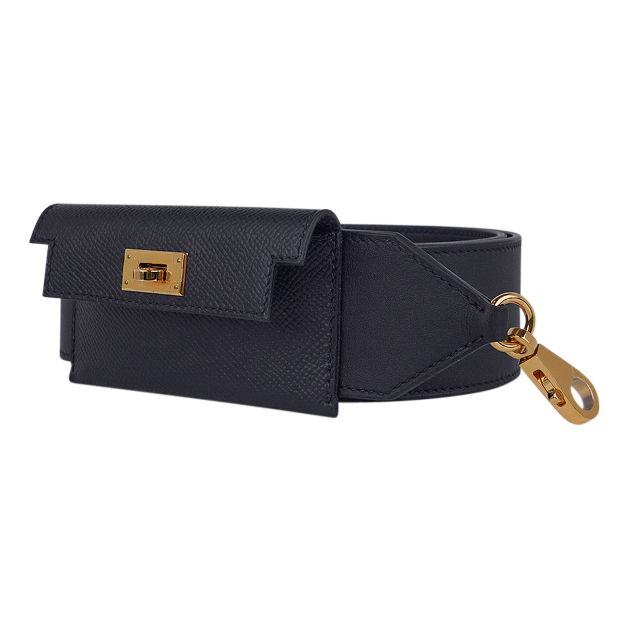 Guaranteed authentic Hermes Kelly Pocket Shoulder Strap PM featured in Black.