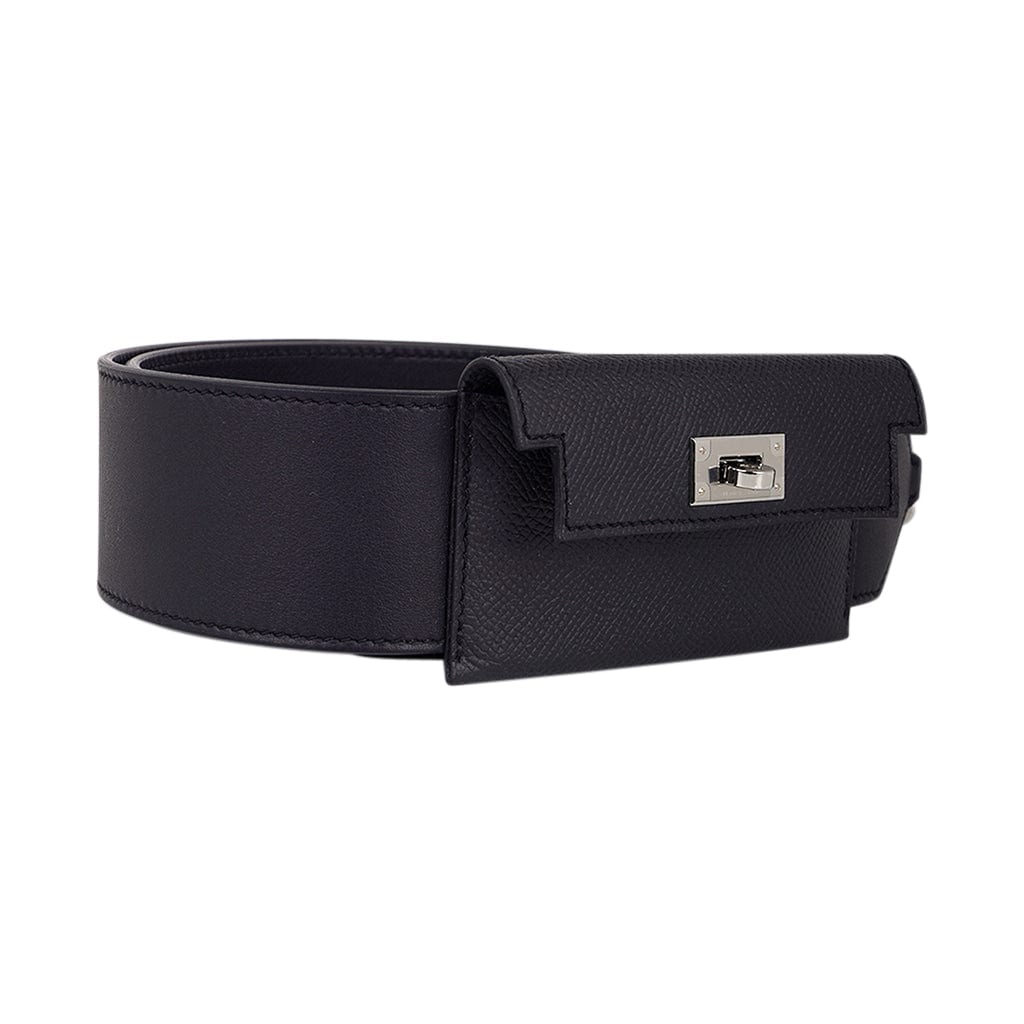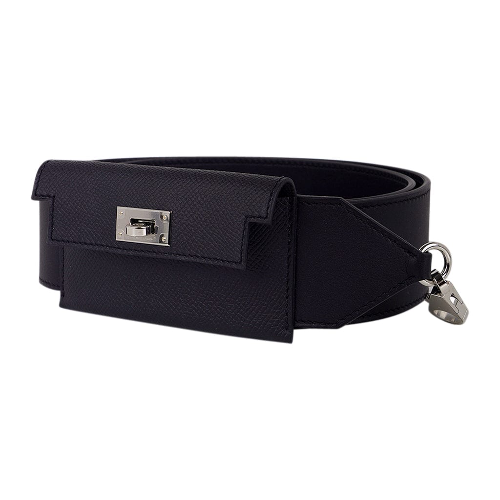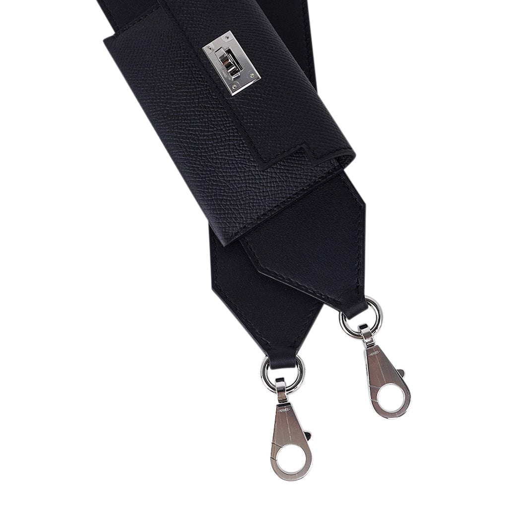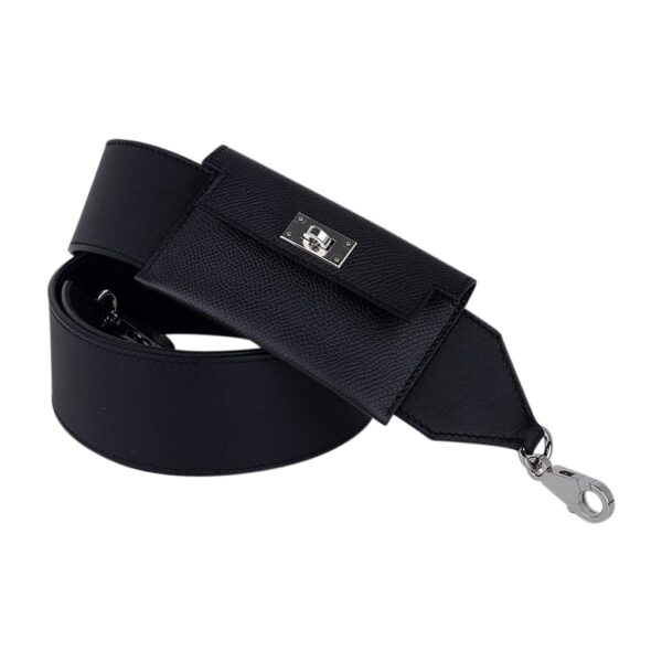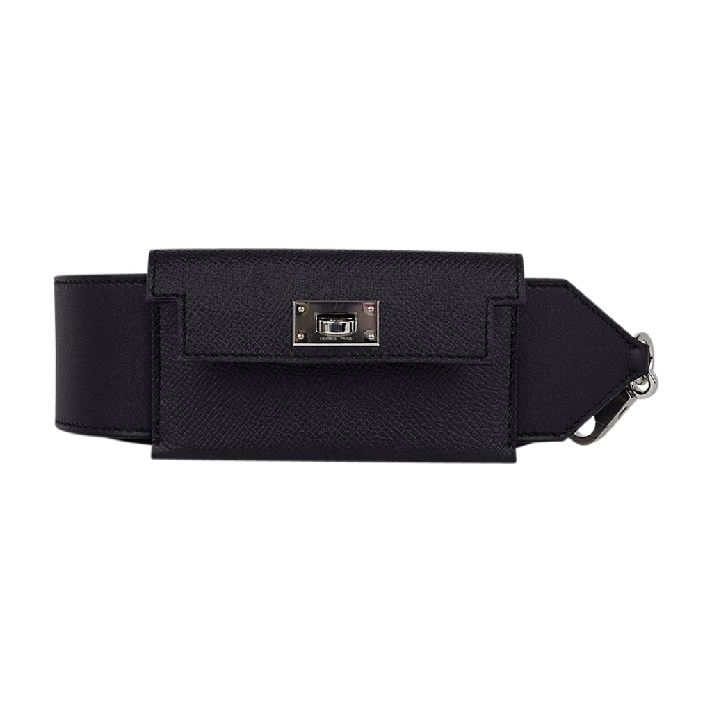 Guaranteed authentic Hermes Kelly Pocket Shoulder Strap PM featured in Black.