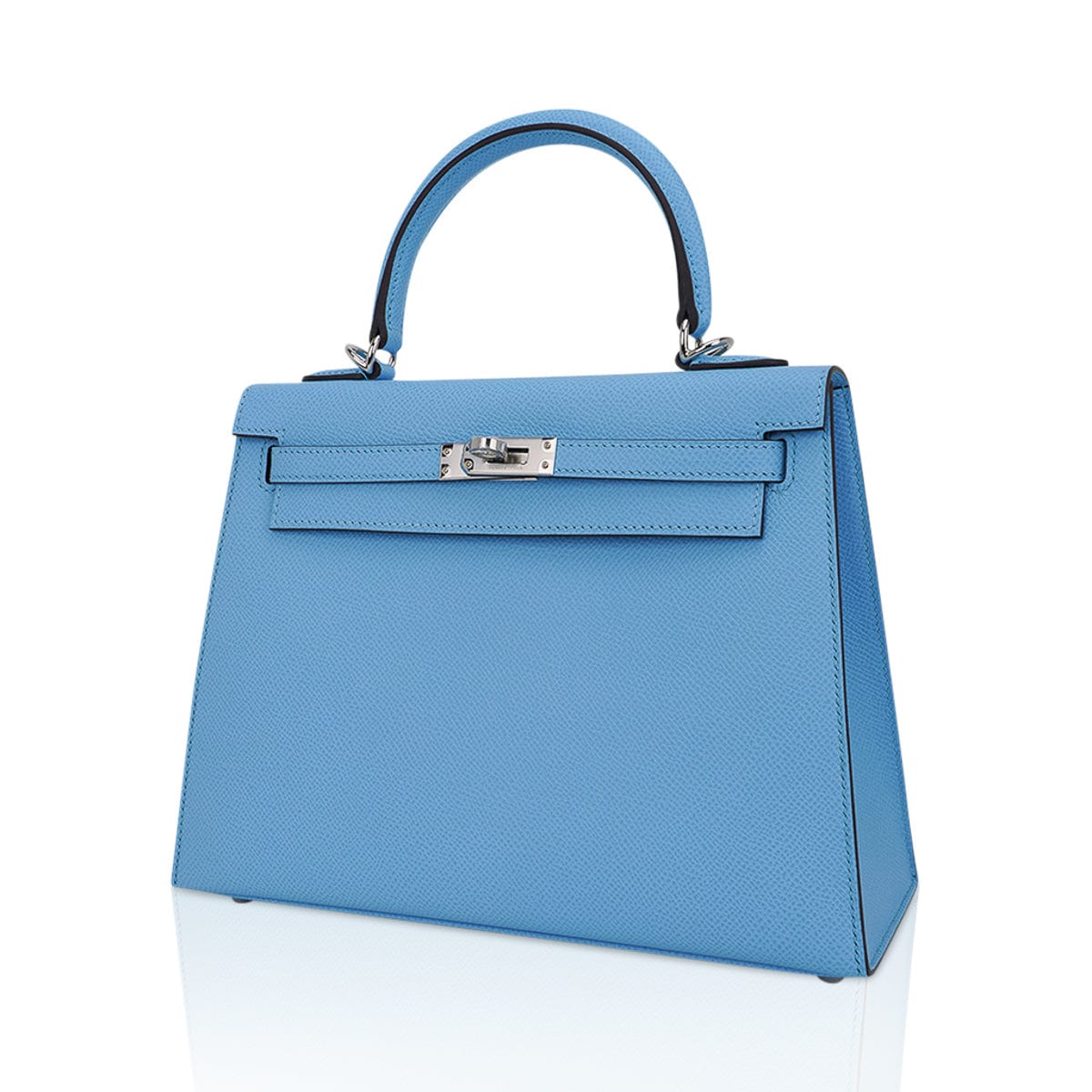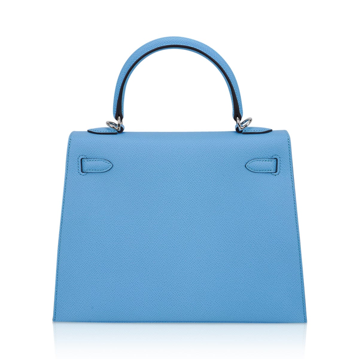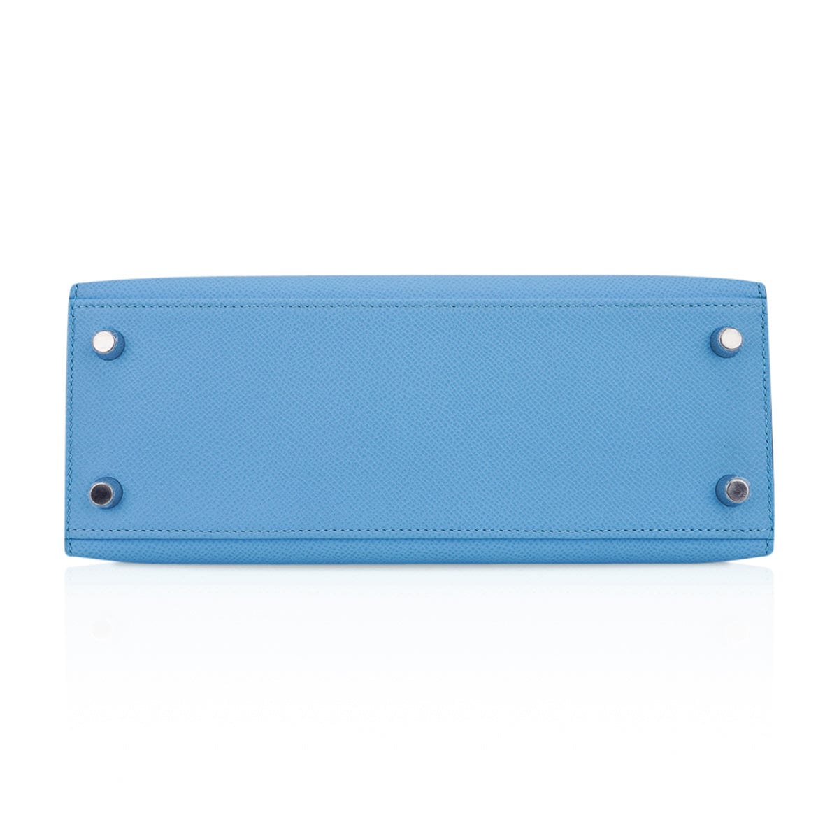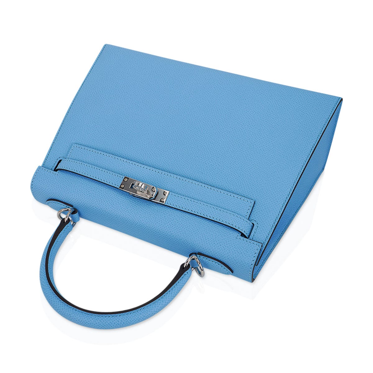 Guaranteed authentic exquisite Hermes Kelly 25 Sellier bag featured in soft sky blue Bleu Celeste.