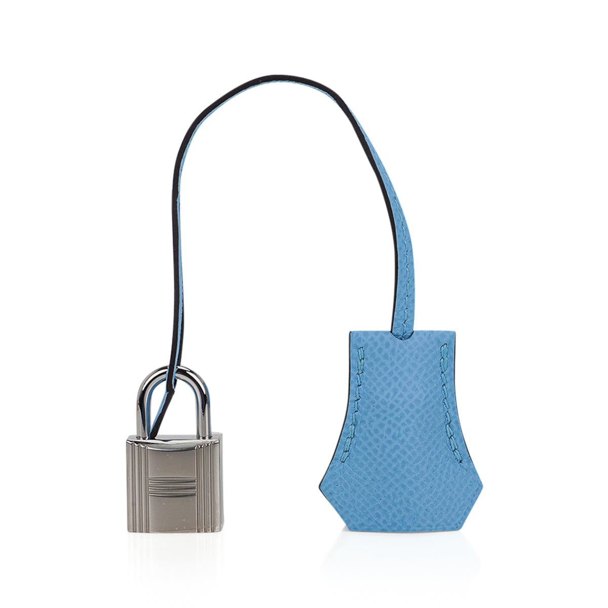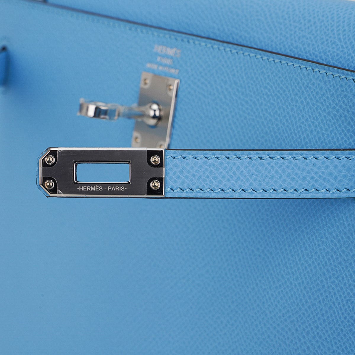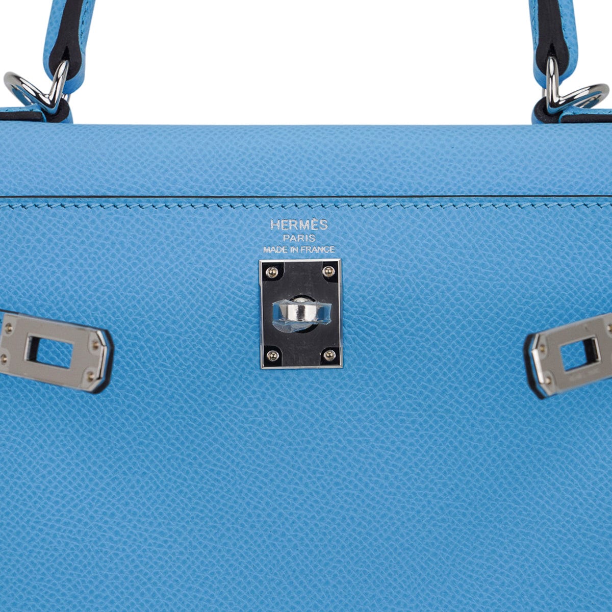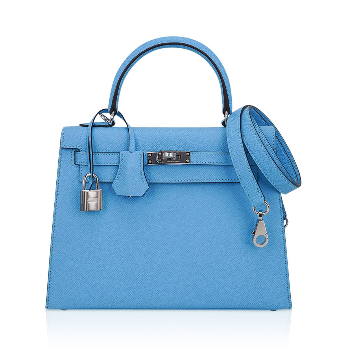 Guaranteed authentic exquisite Hermes Kelly 25 Sellier bag featured in soft sky blue Bleu Celeste.