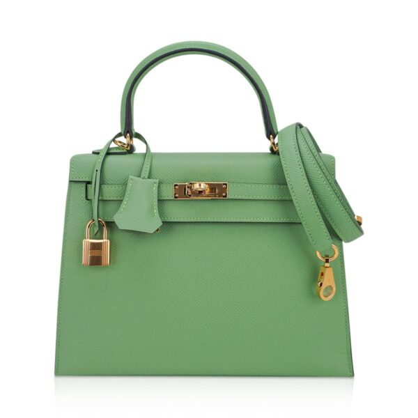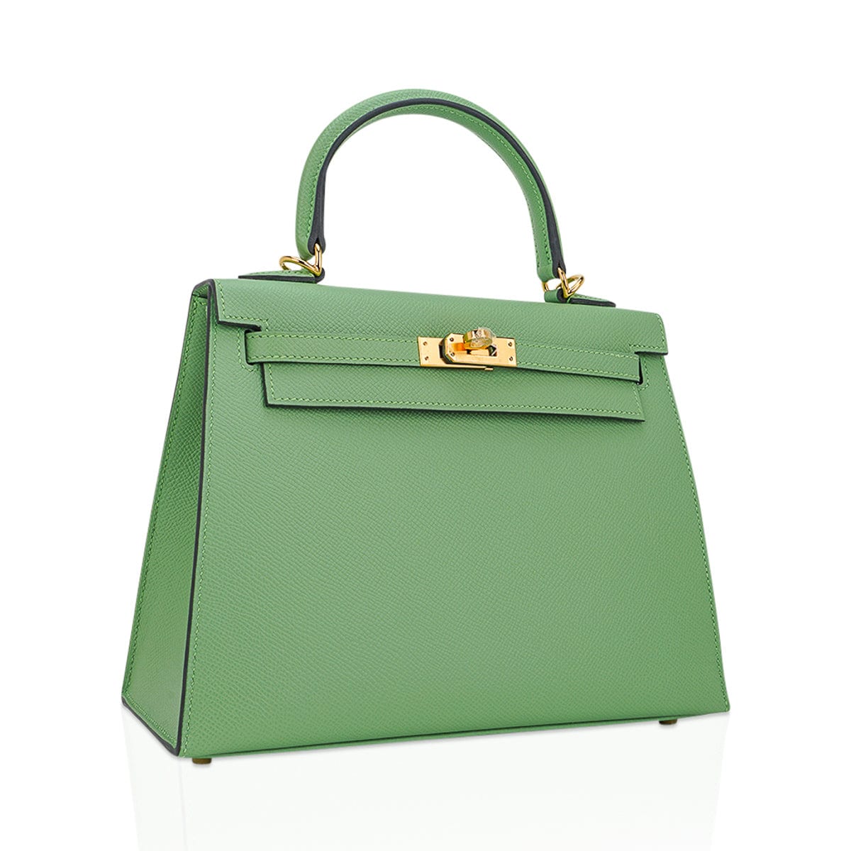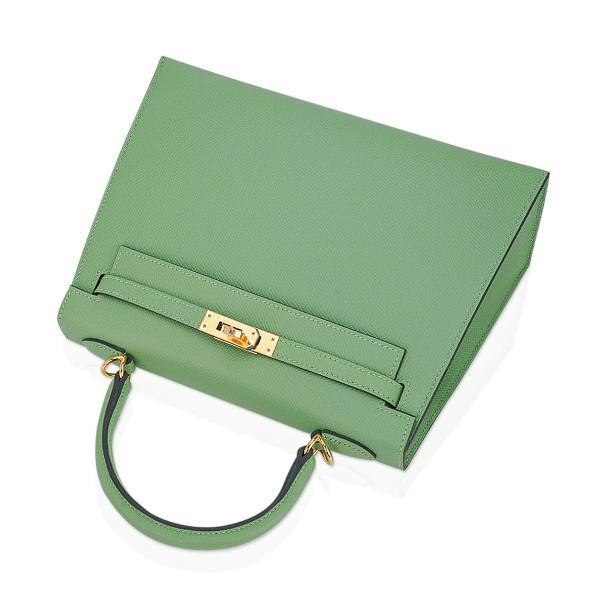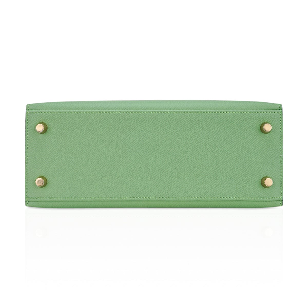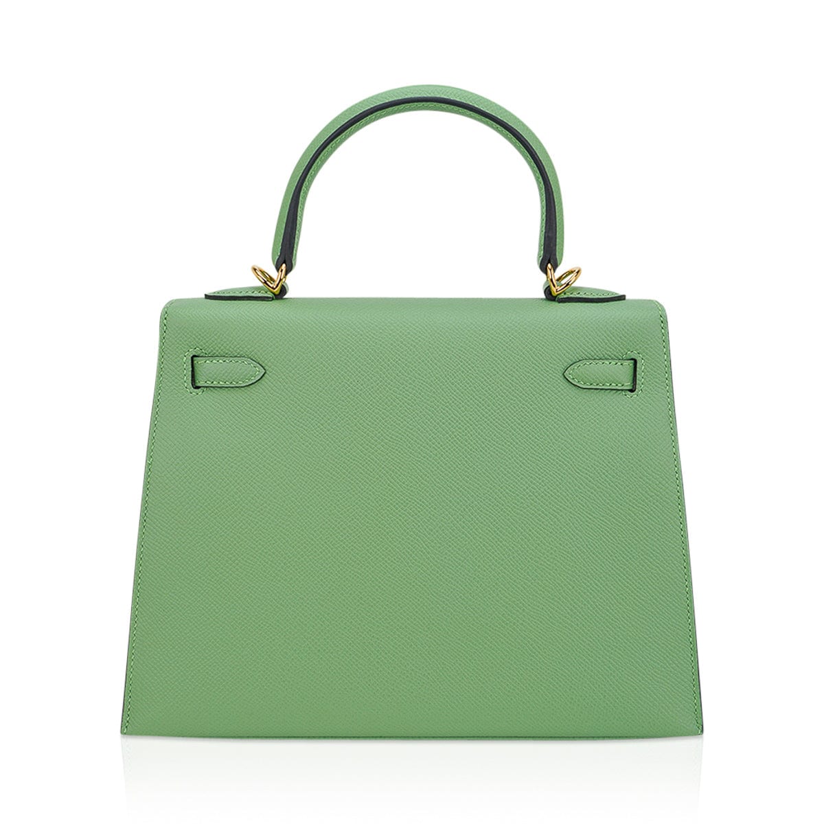 Guaranteed authentic Hermes Kelly Sellier 25 bag featured in fresh Vert Criquet.