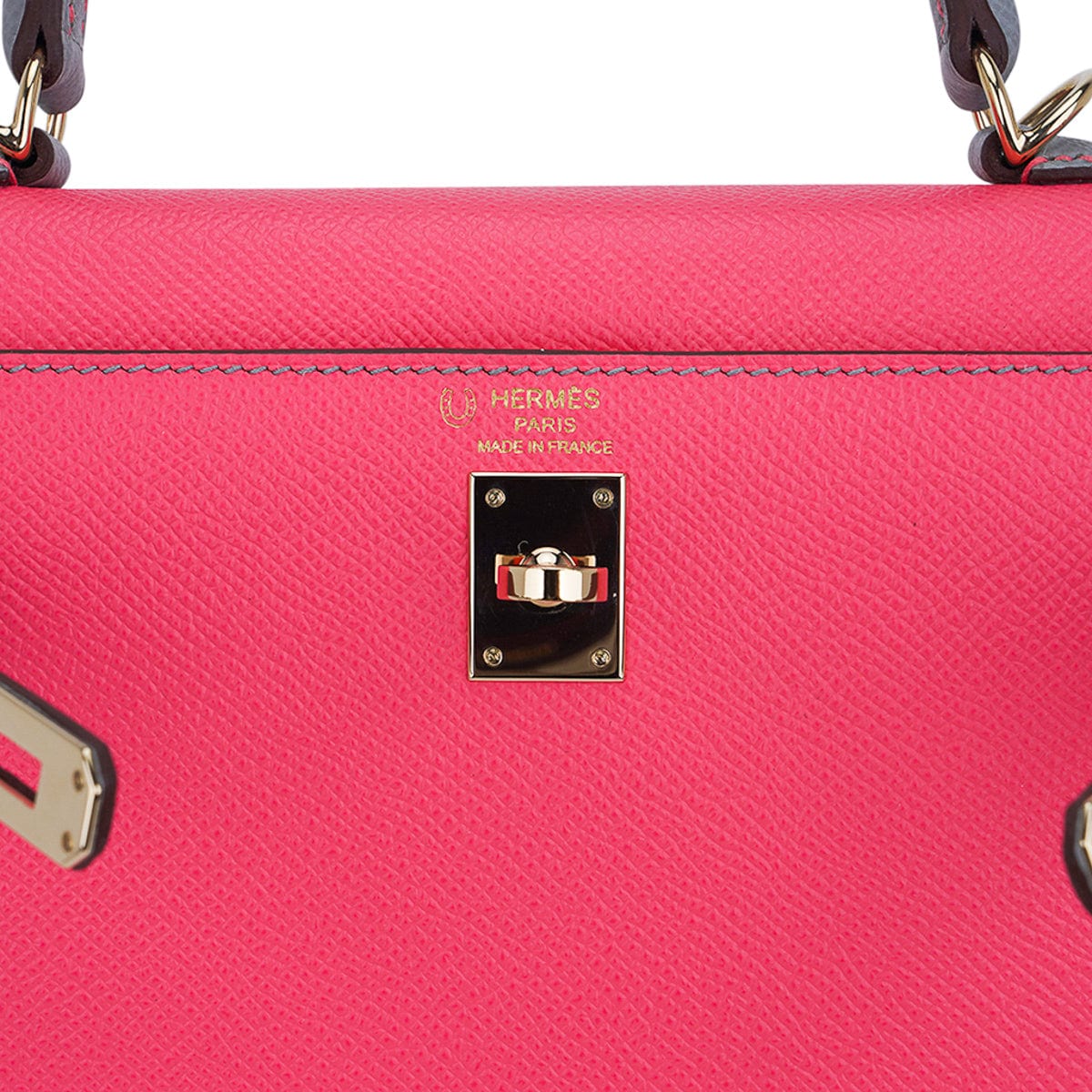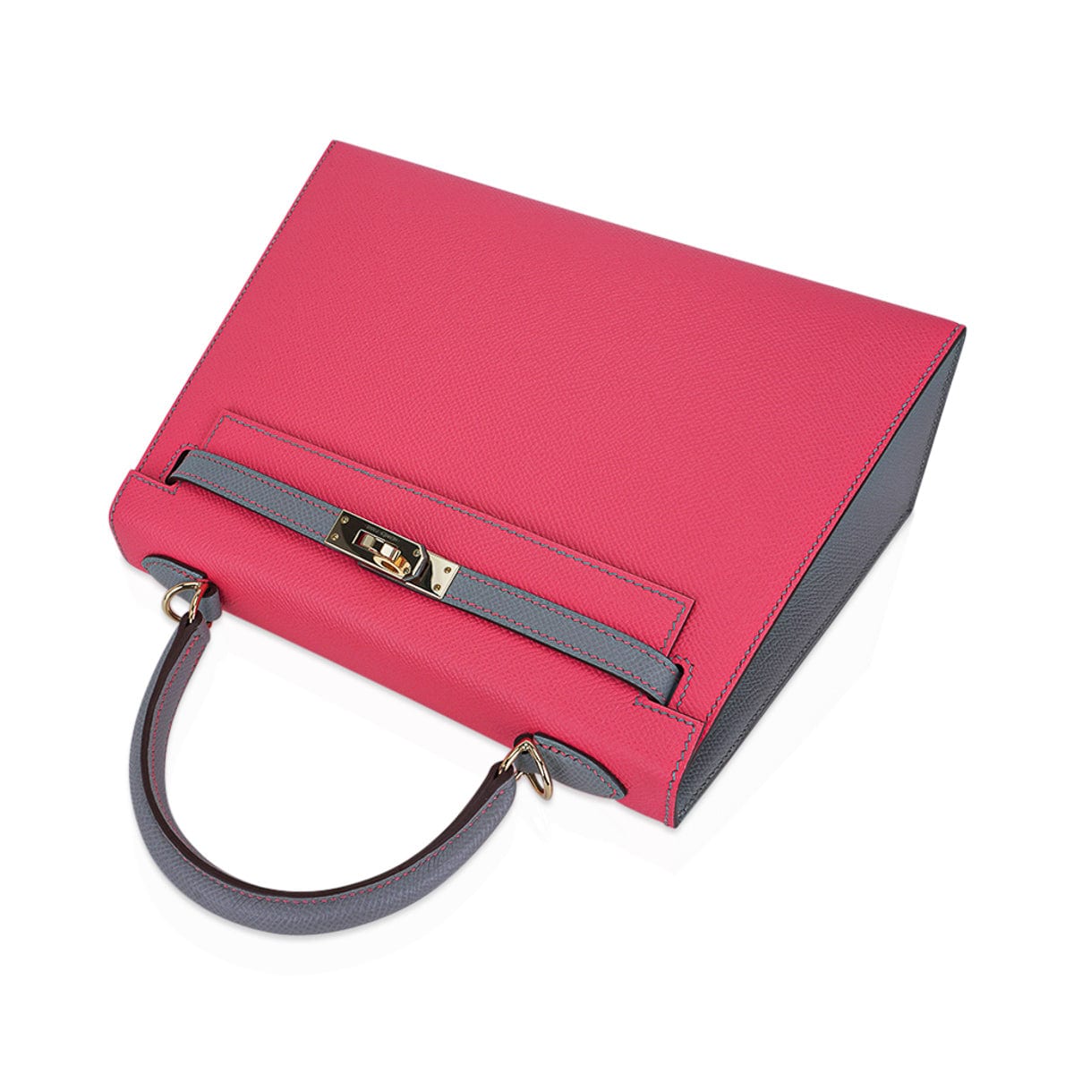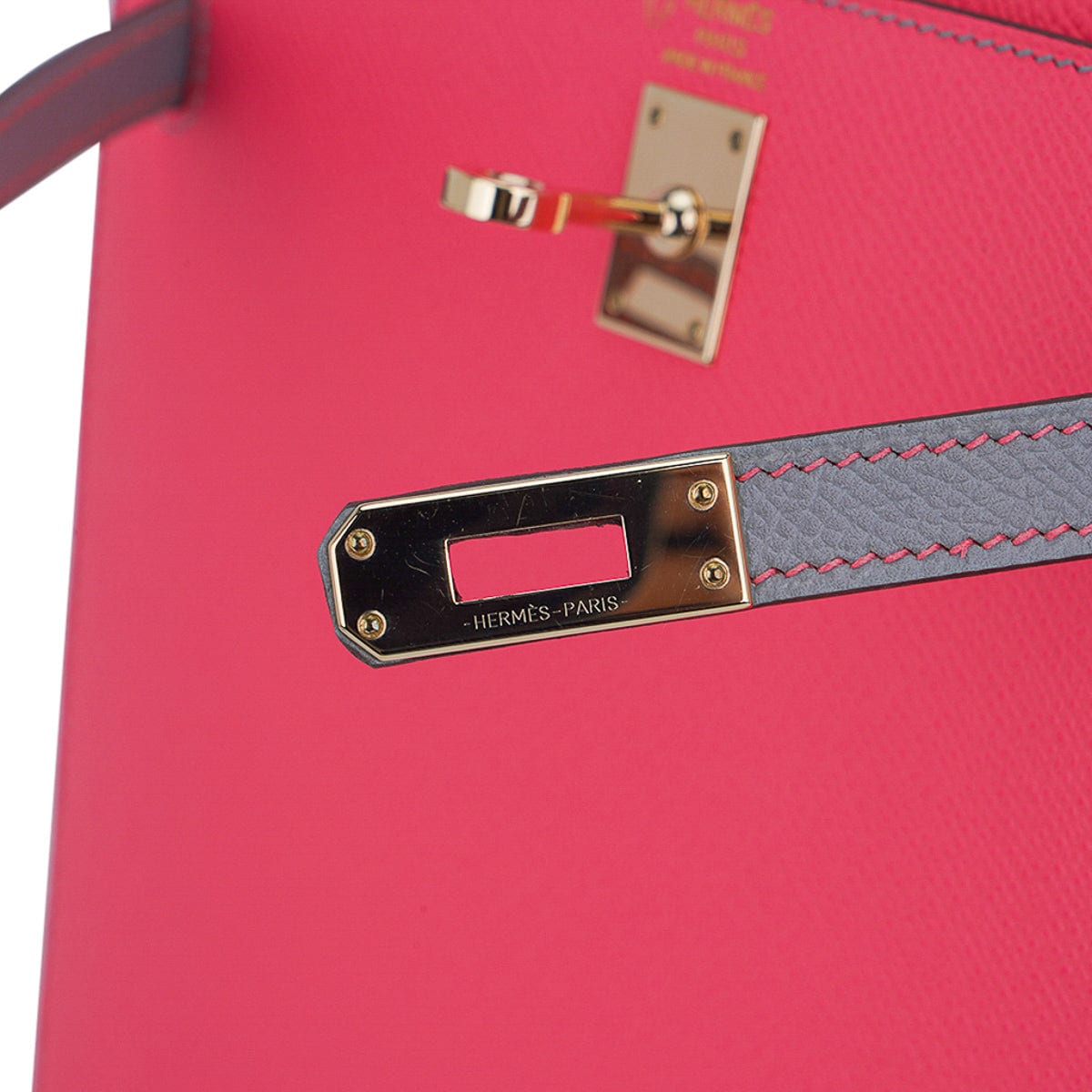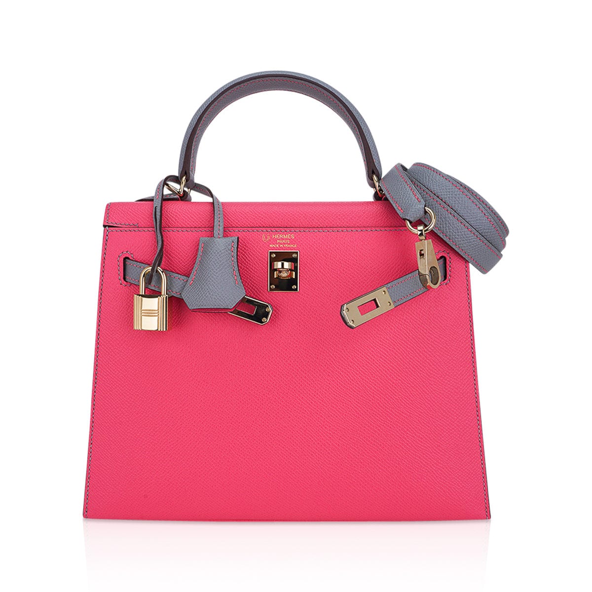 Guaranteed authentic Hermes Kelly Sellier HSS 28 bag featured in Rose Azalee and Gris Mouette.