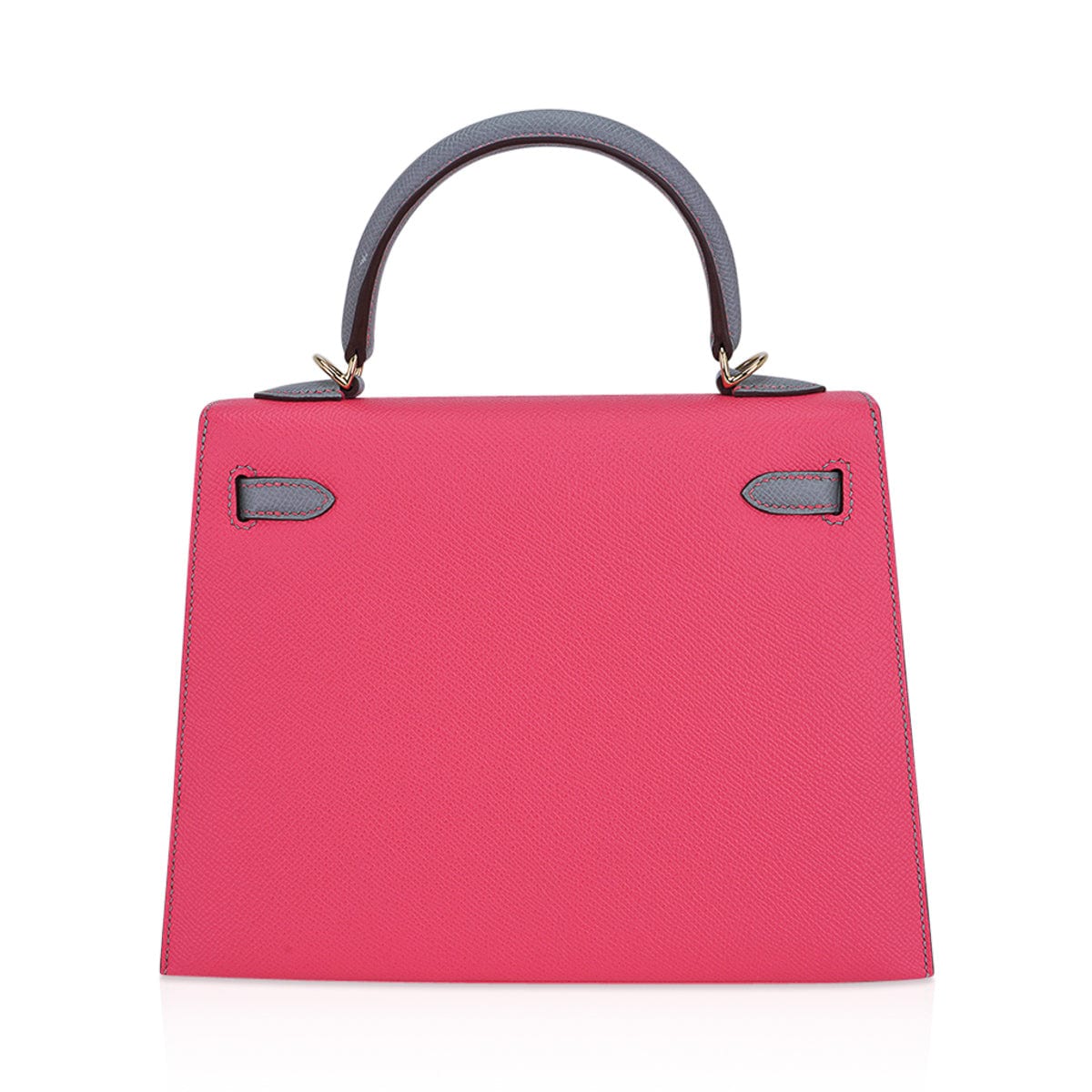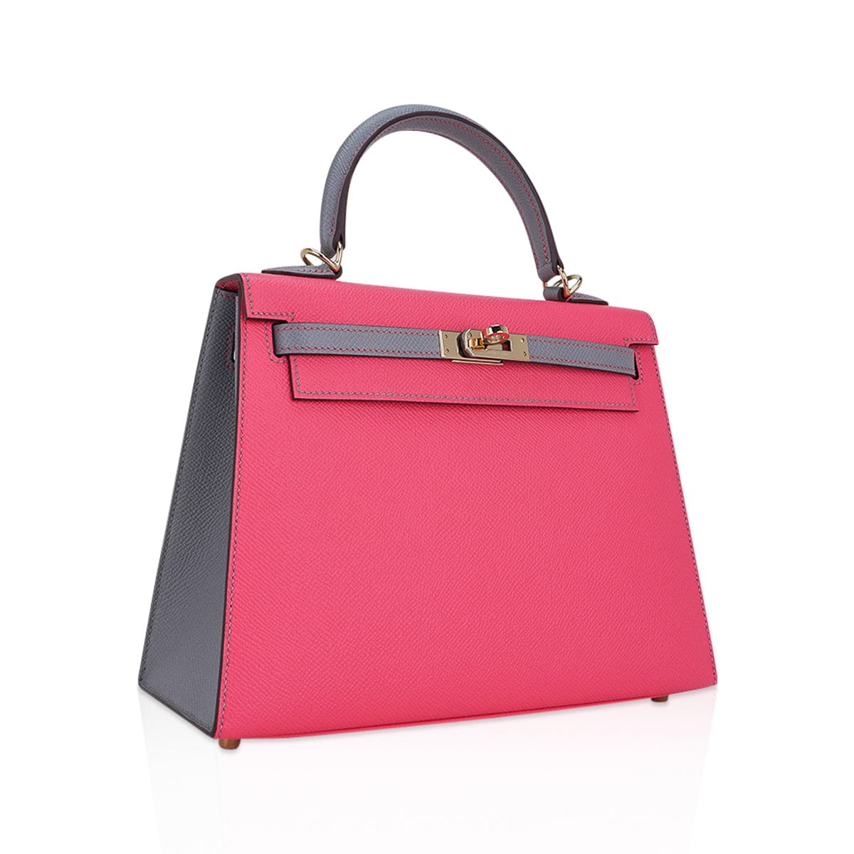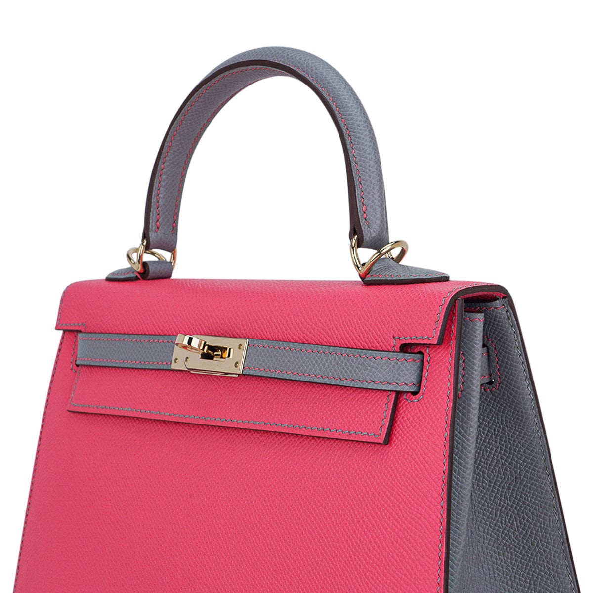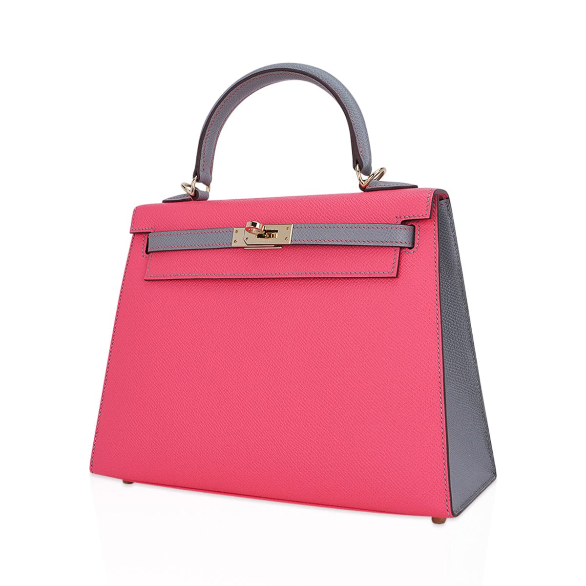 Guaranteed authentic Hermes Kelly Sellier HSS 28 bag featured in Rose Azalee and Gris Mouette.