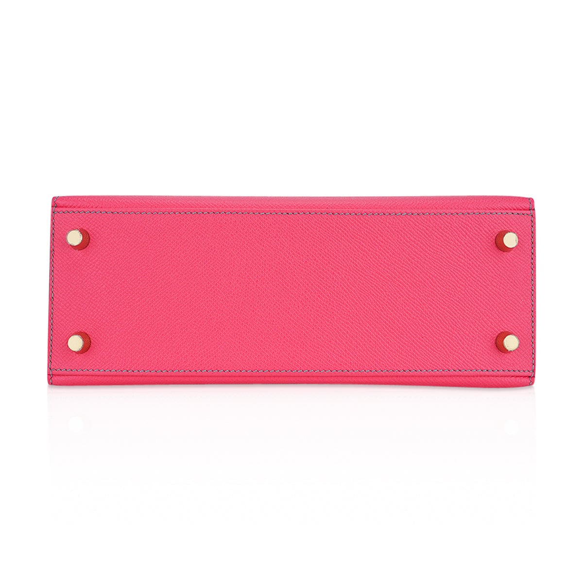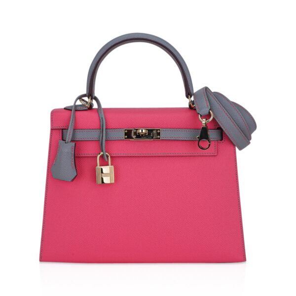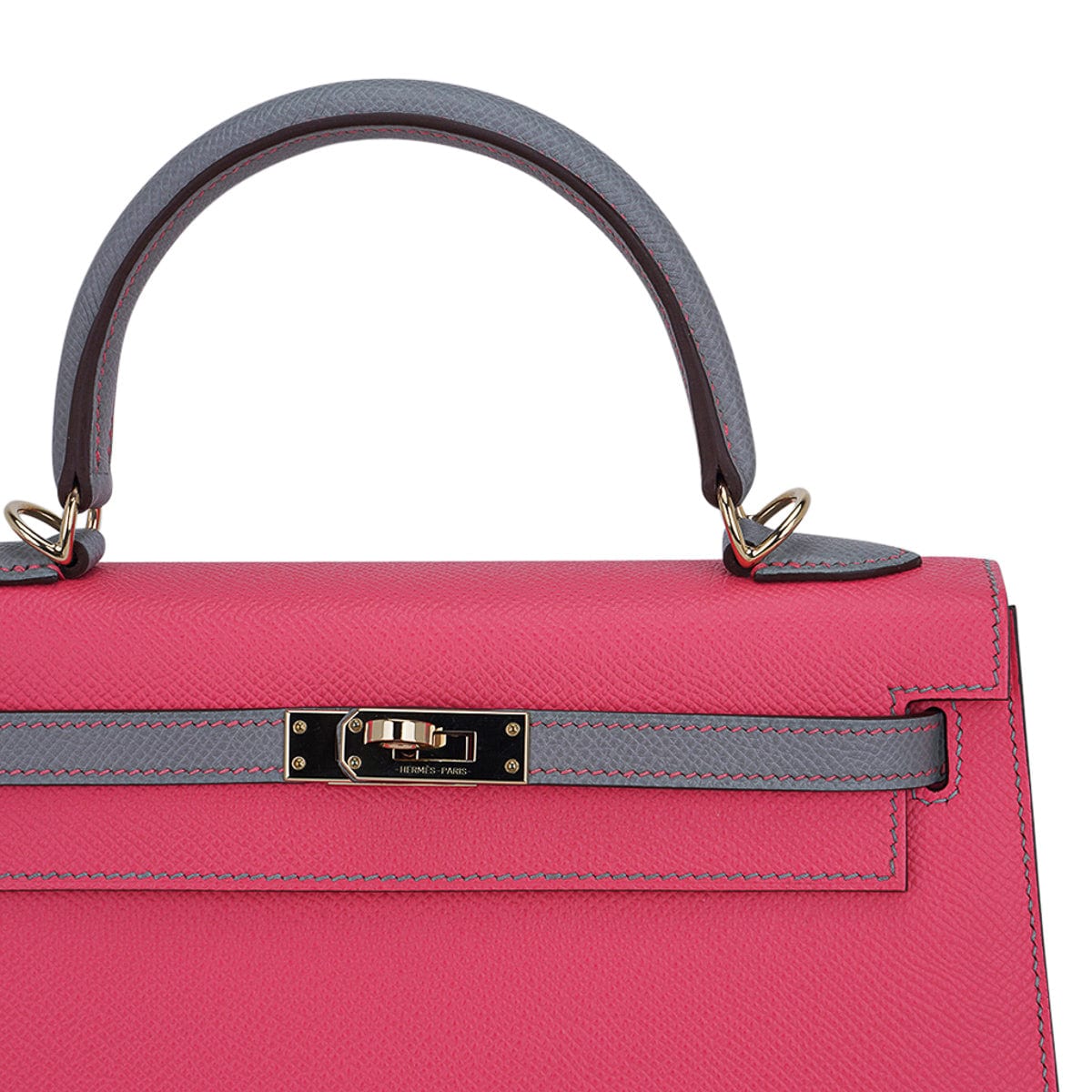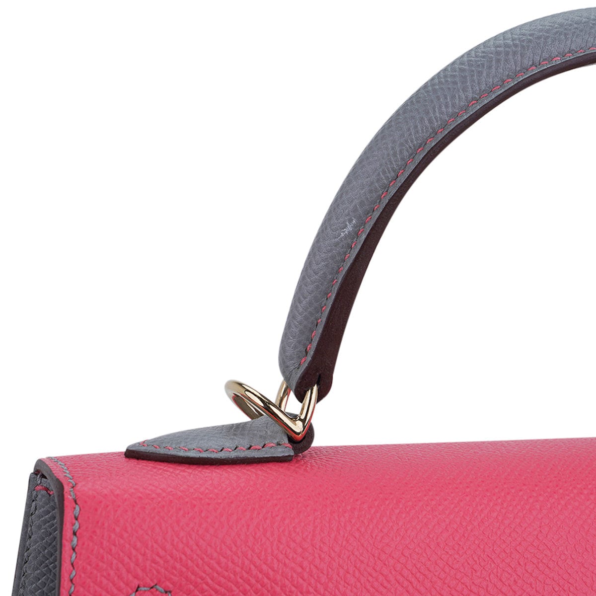 Guaranteed authentic Hermes Kelly Sellier HSS 28 bag featured in Rose Azalee and Gris Mouette.
