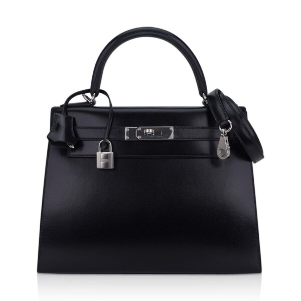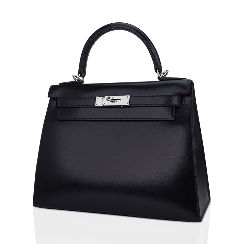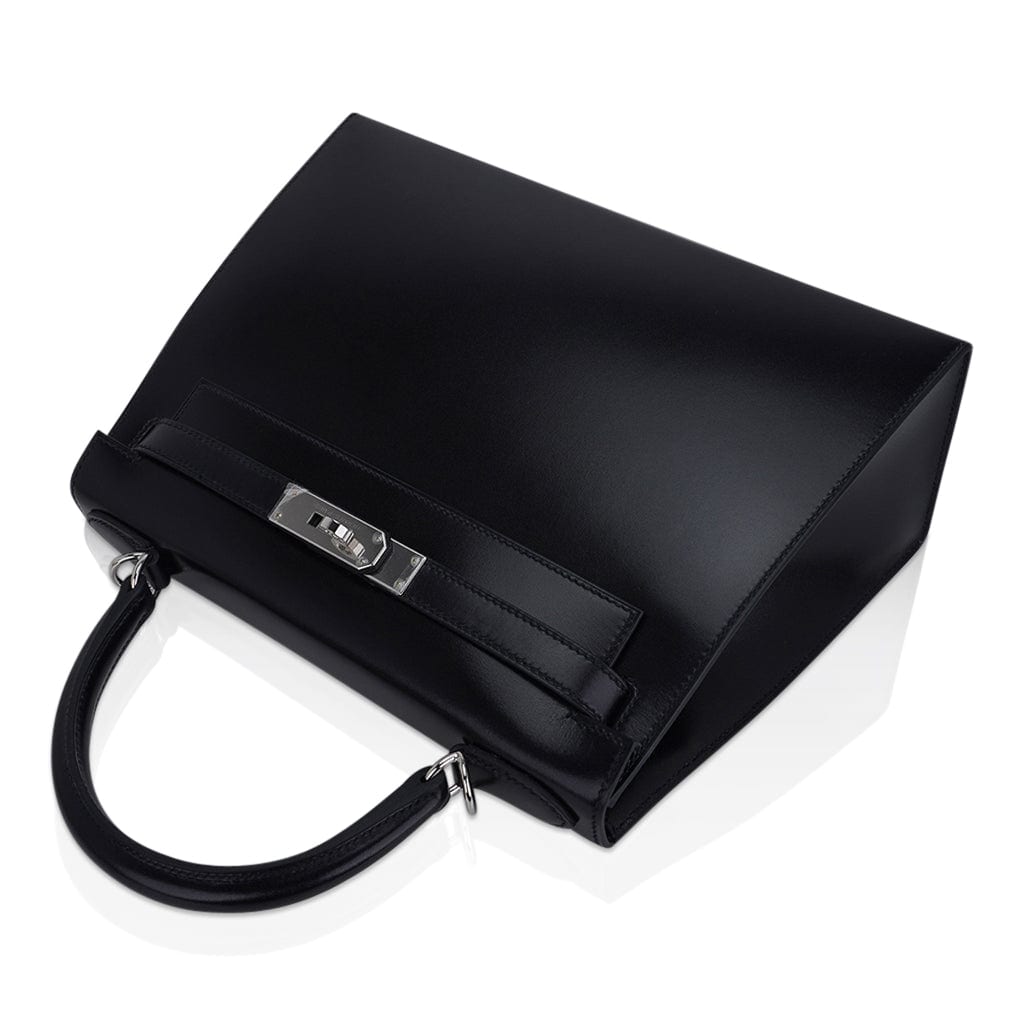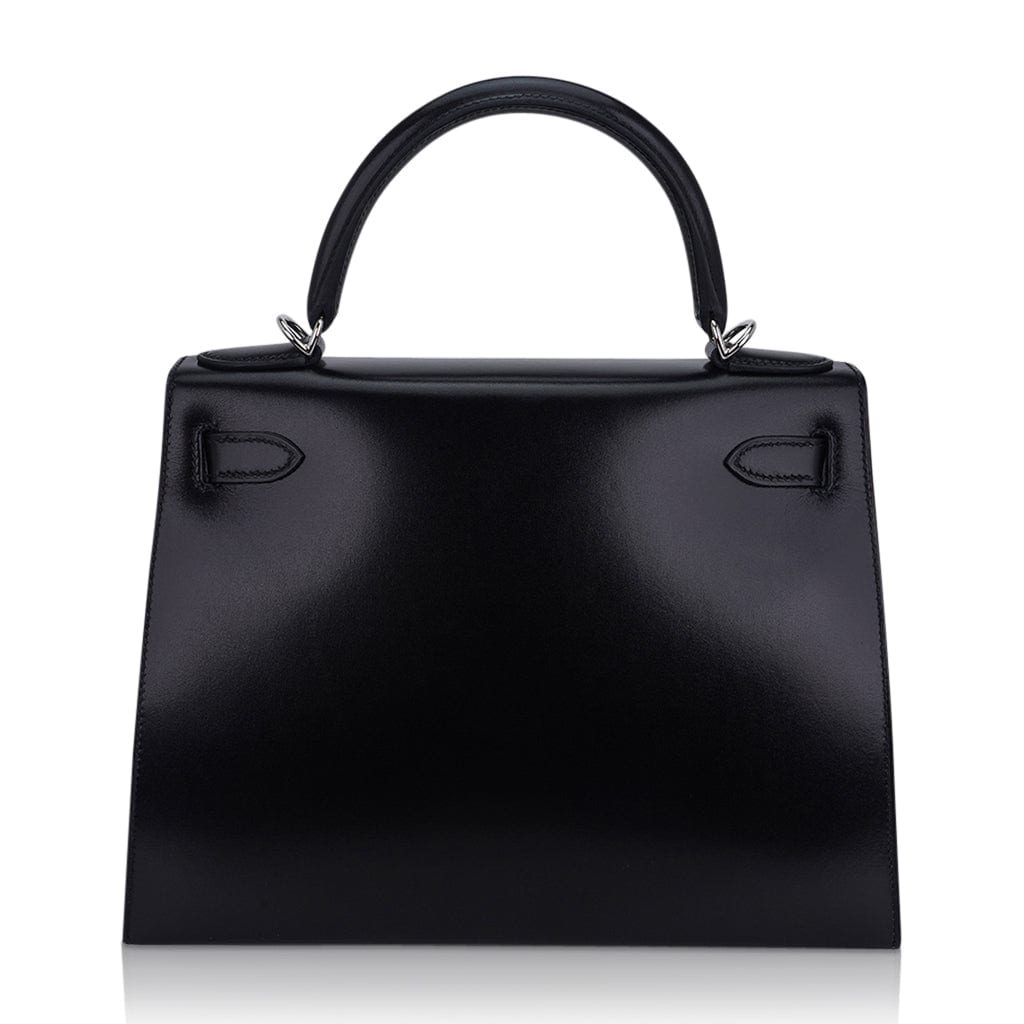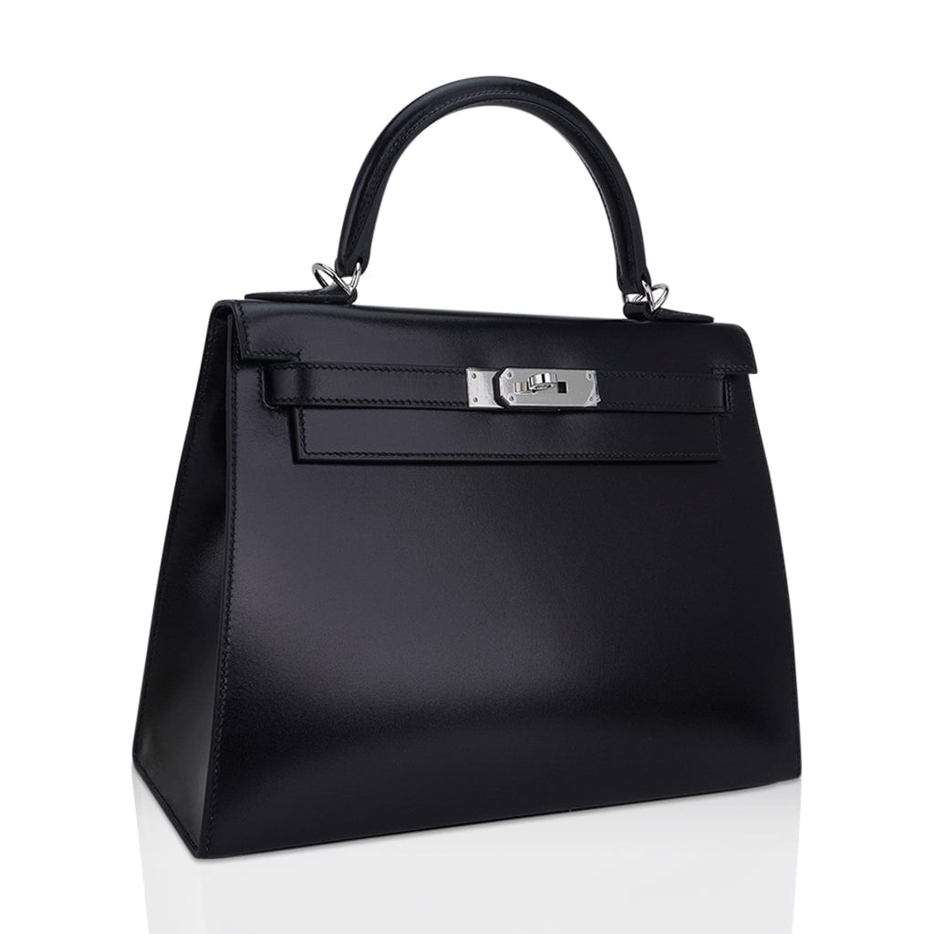 Guaranteed authentic Hermes Kelly Sellier 28 bag featured in rare Black Box leather.