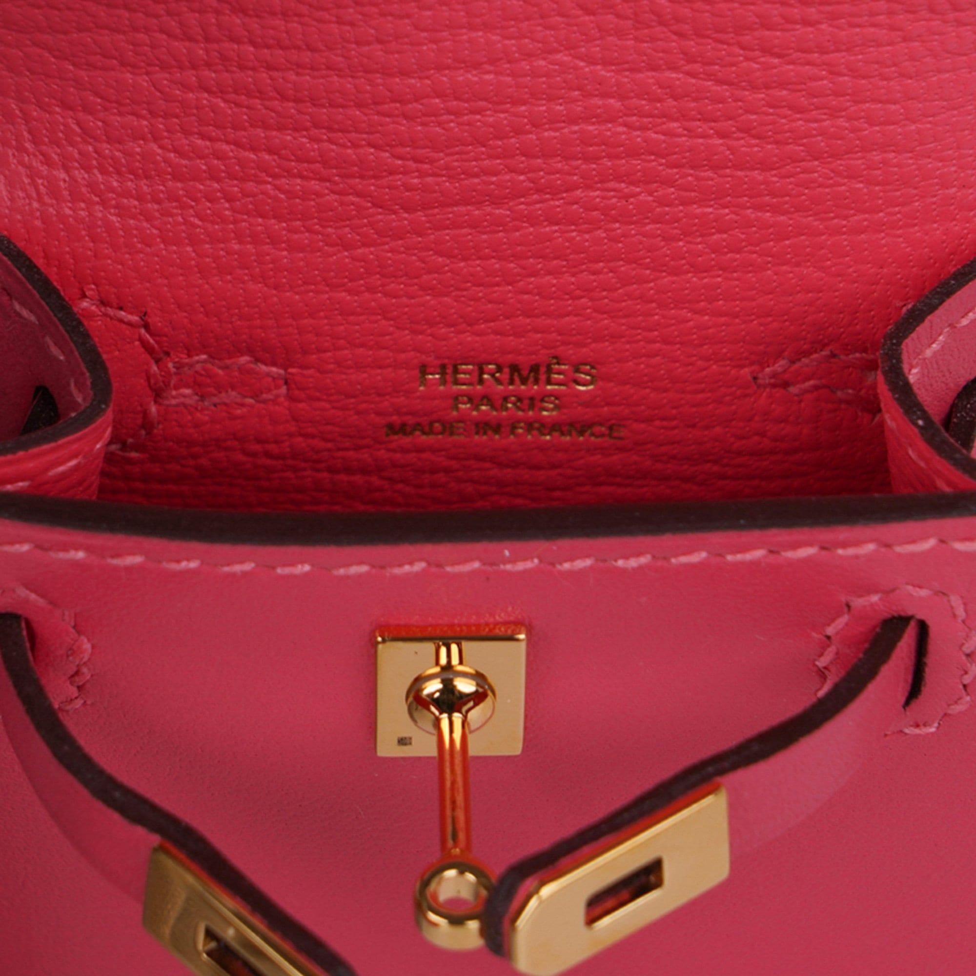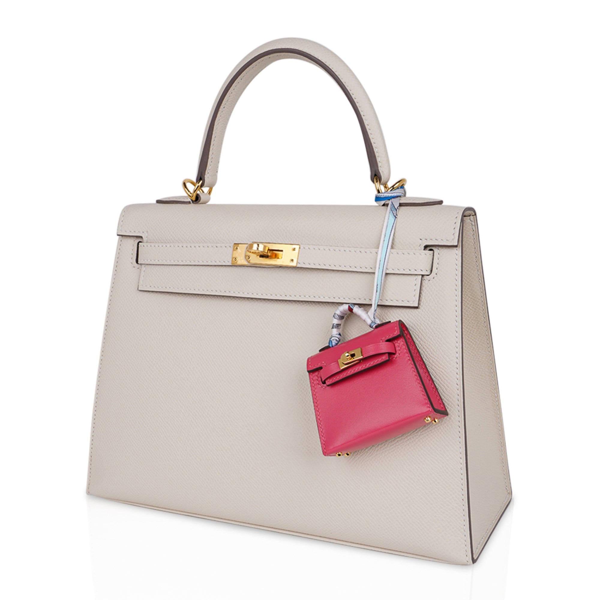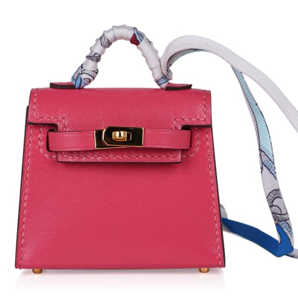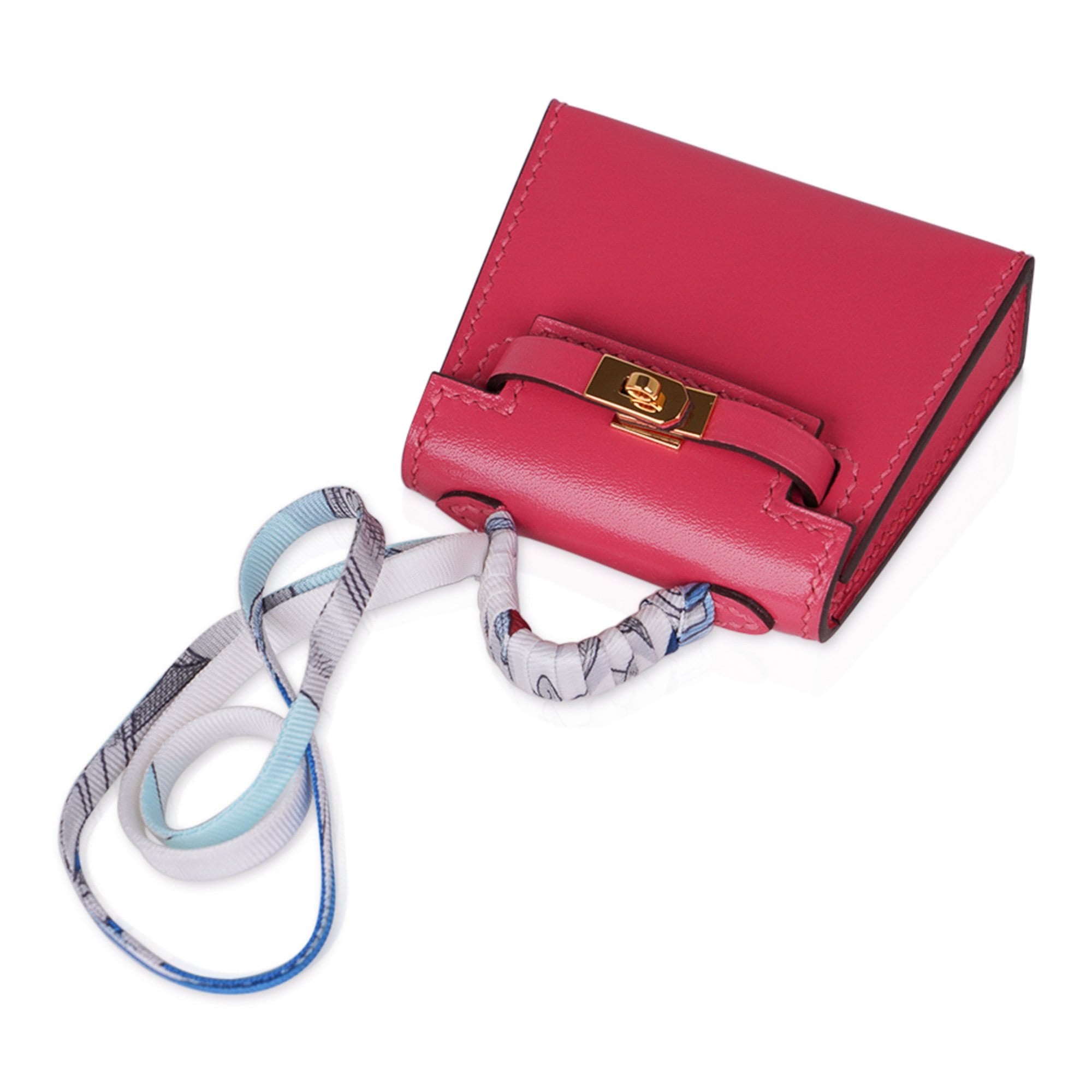 Guaranteed authentic very rare limited edition Hermes Kelly Twilly Bag Charm features a miniature Kelly in Rose Lipstick.