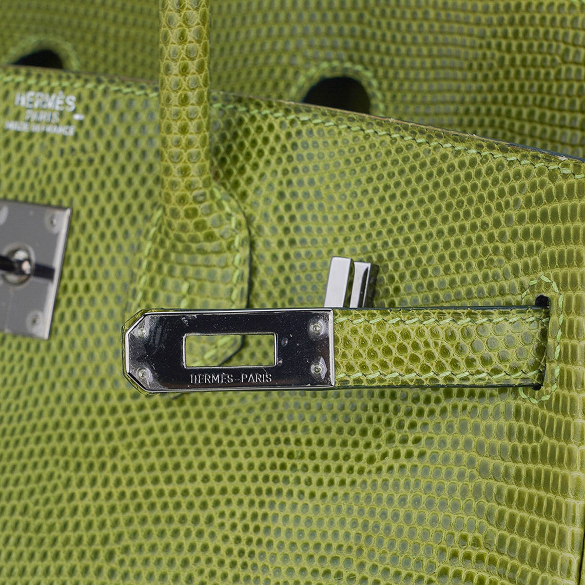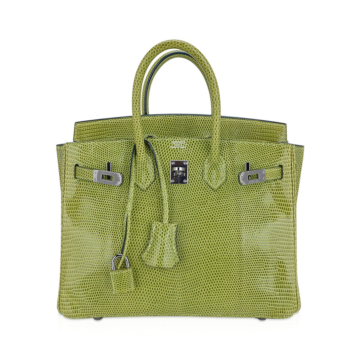 Guaranteed authentic limited edition Hermes Birkin 25 bag featured in Vert Anis Lizard.