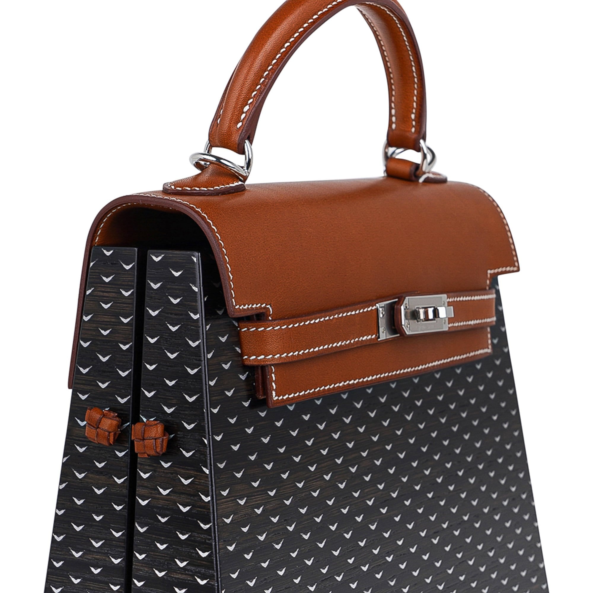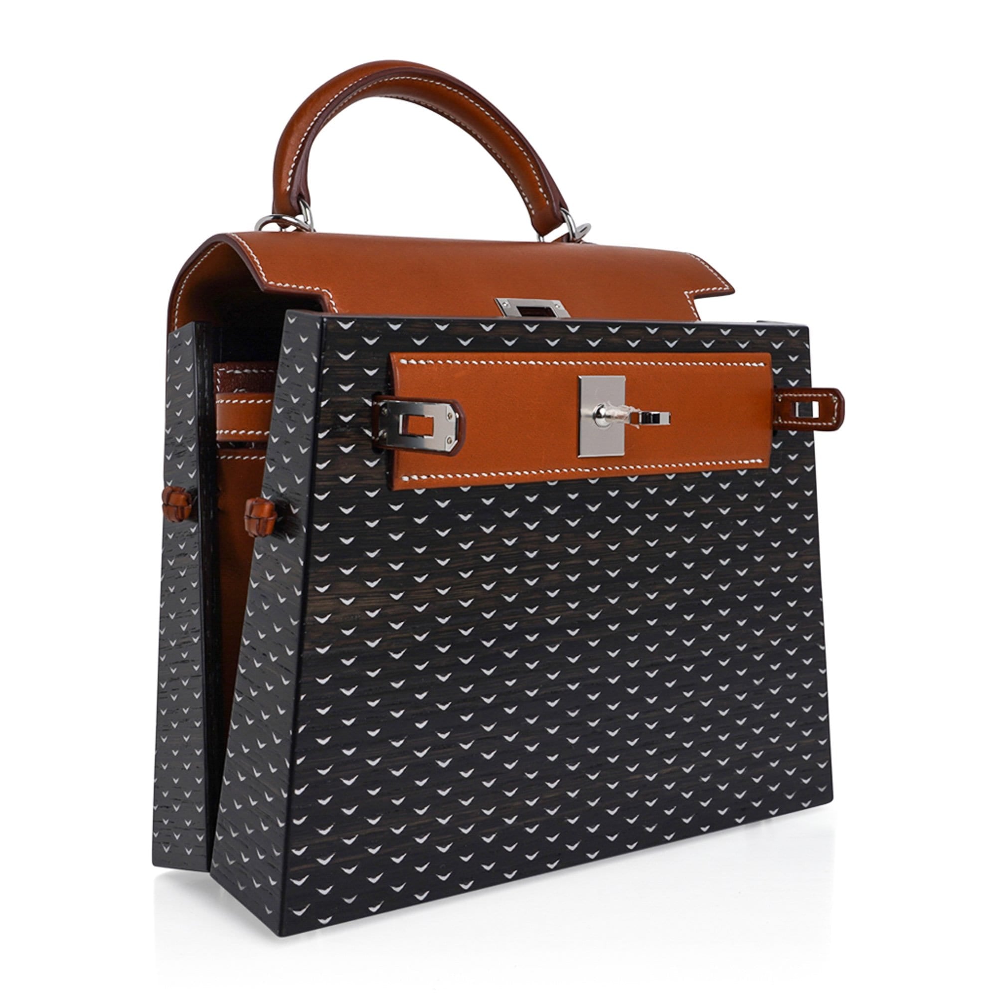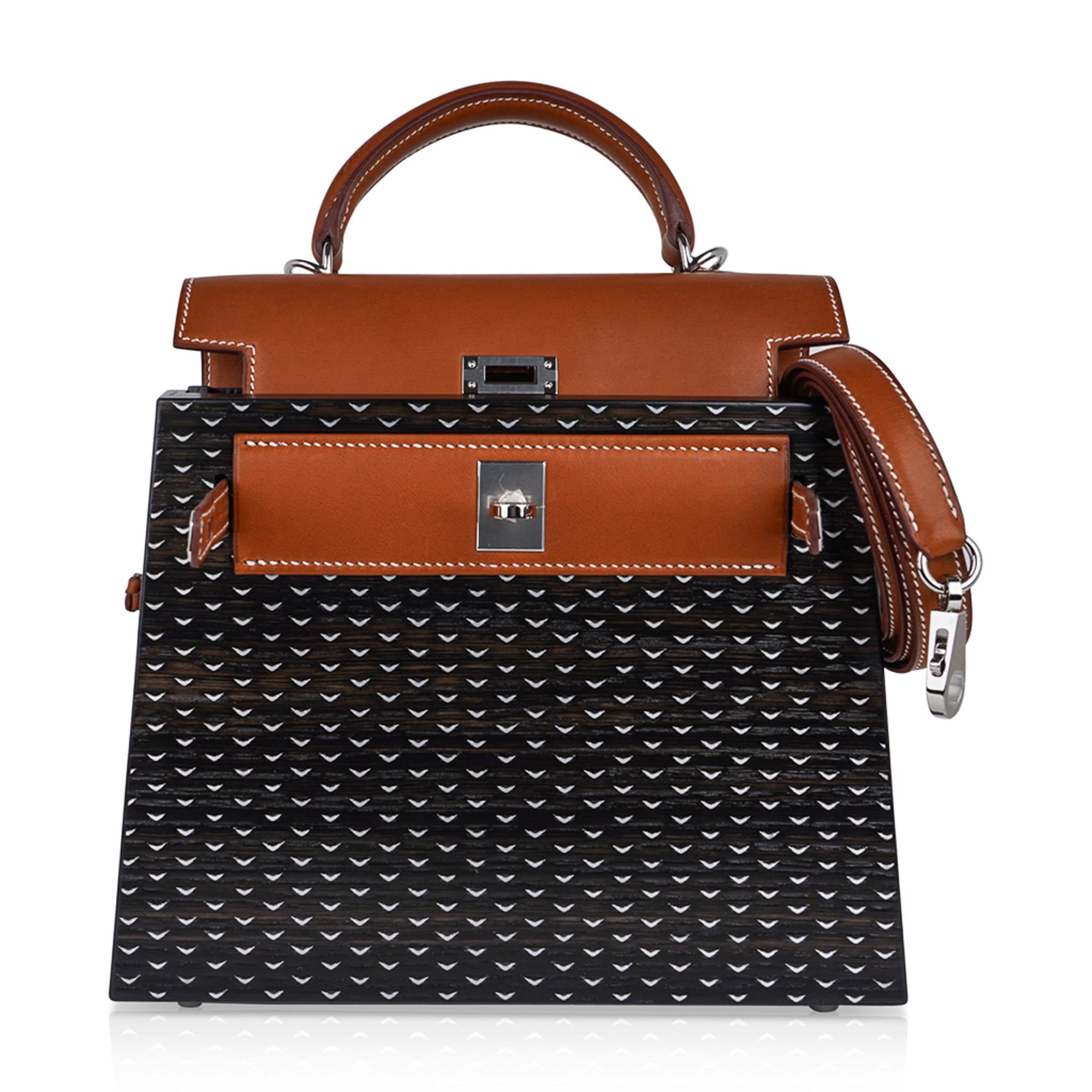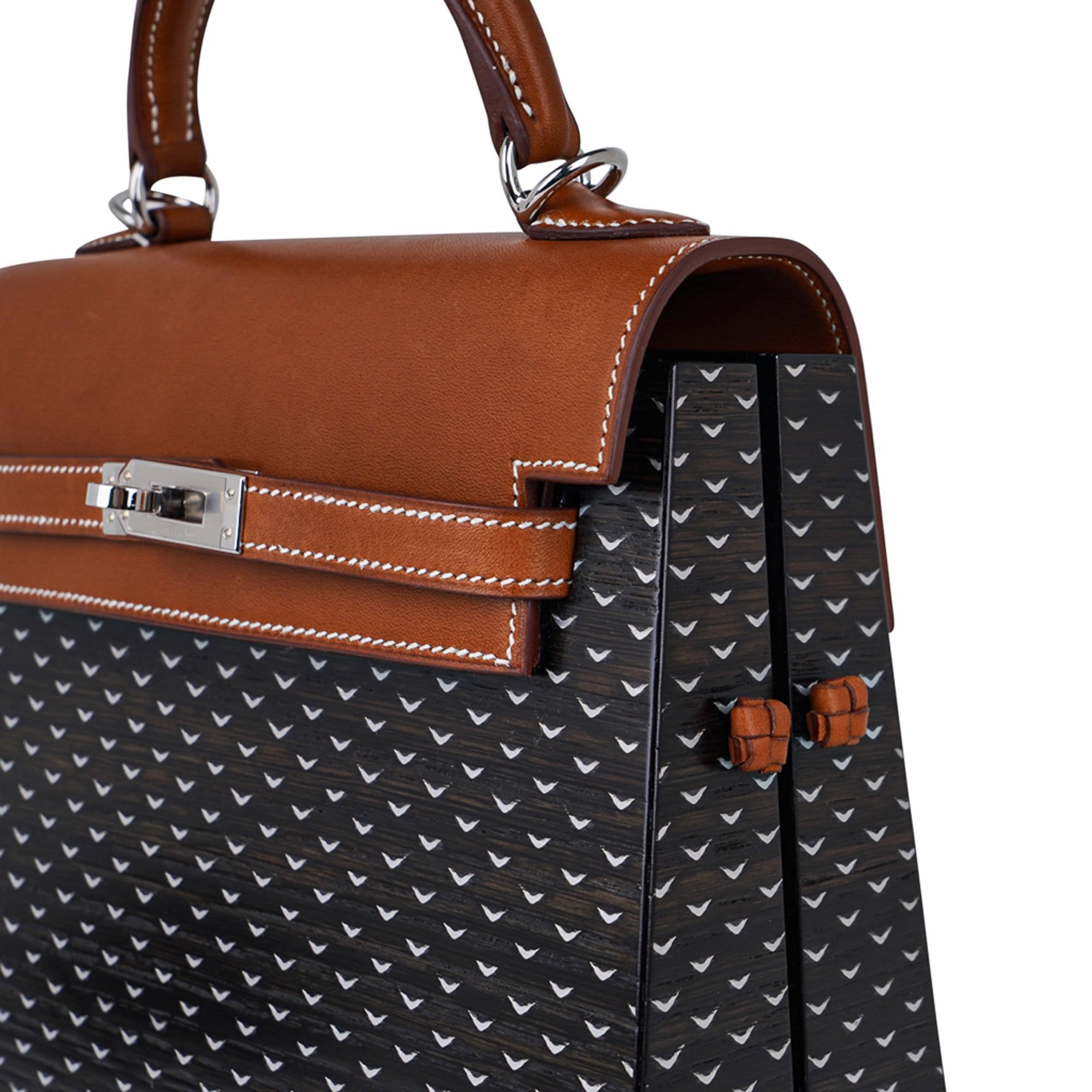 Hermes Limited Edition Kellywood 22 Bag in Wood with Aluminum and Barenia Leather Palladium Hardware