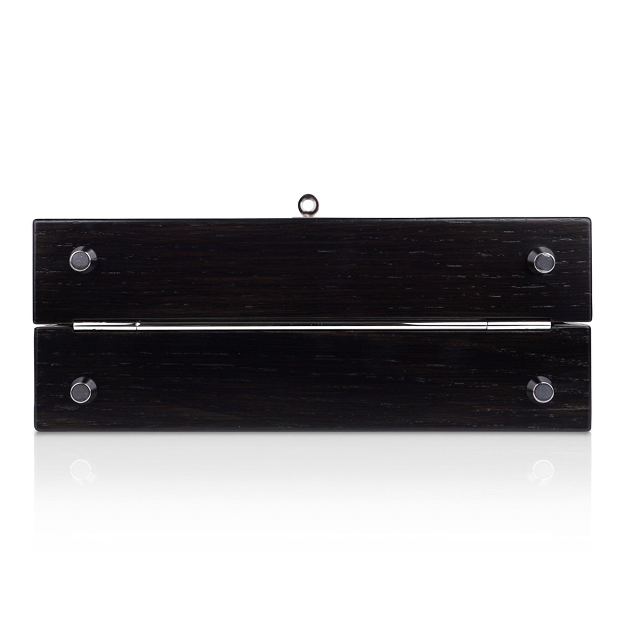 The expert craftsmanship brings the metal chevron motif inlay to be one with the wood. Smooth, and rich to the touch.