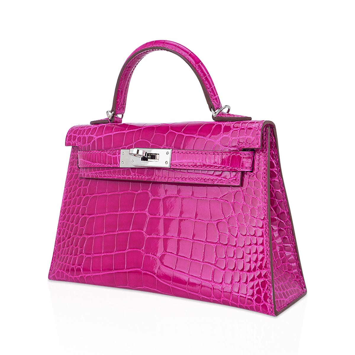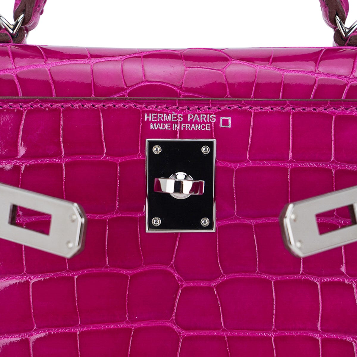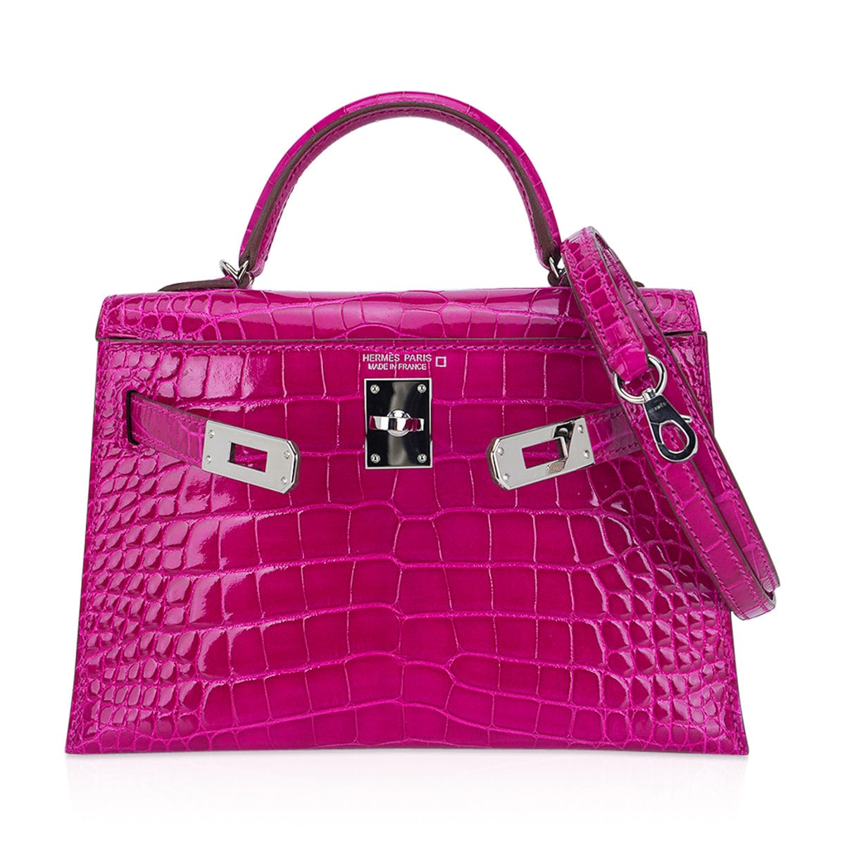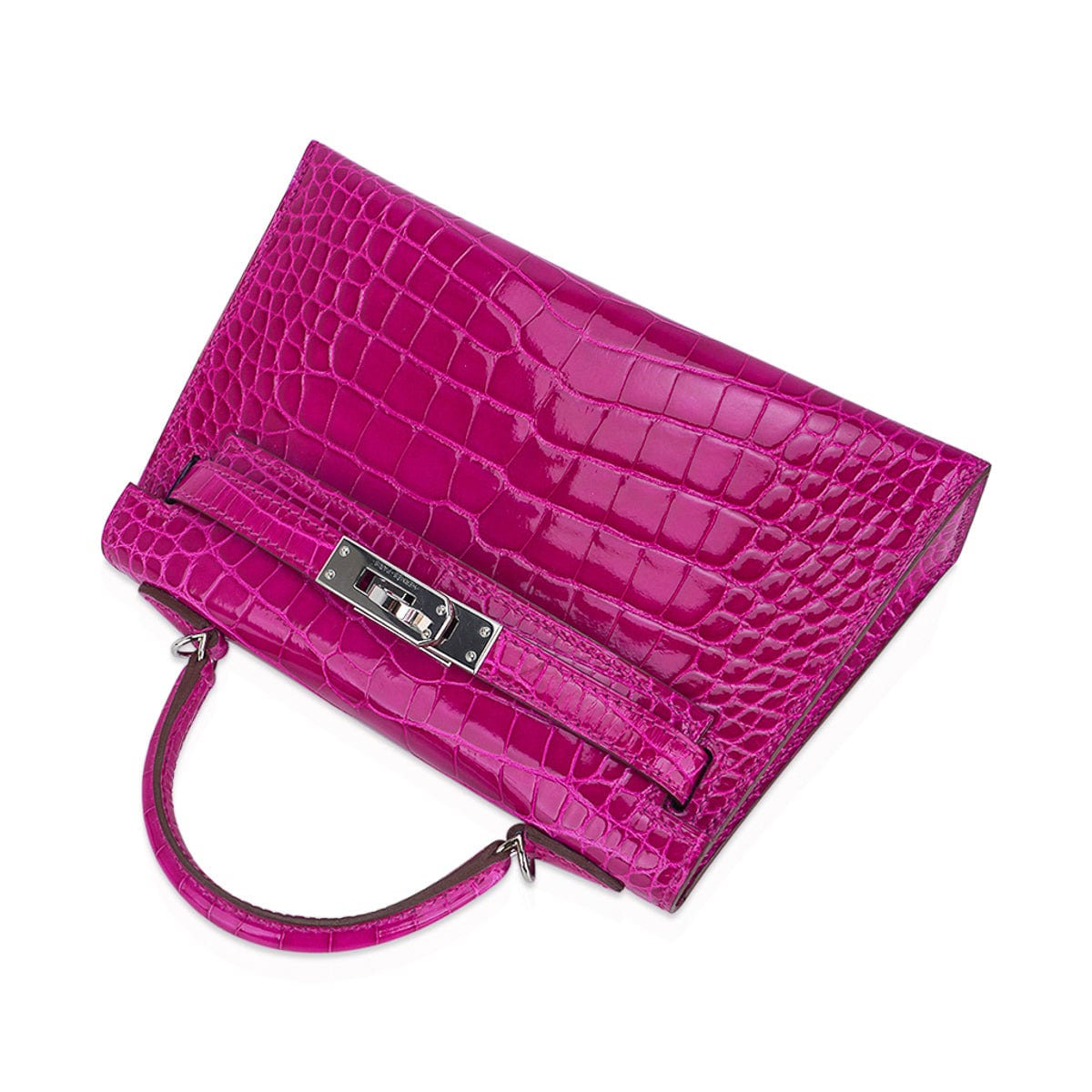 Hermes Limited Edition Mini Kelly 20 Sellier Bag in Rose Scheherazade Alligator with Palladium Hardware