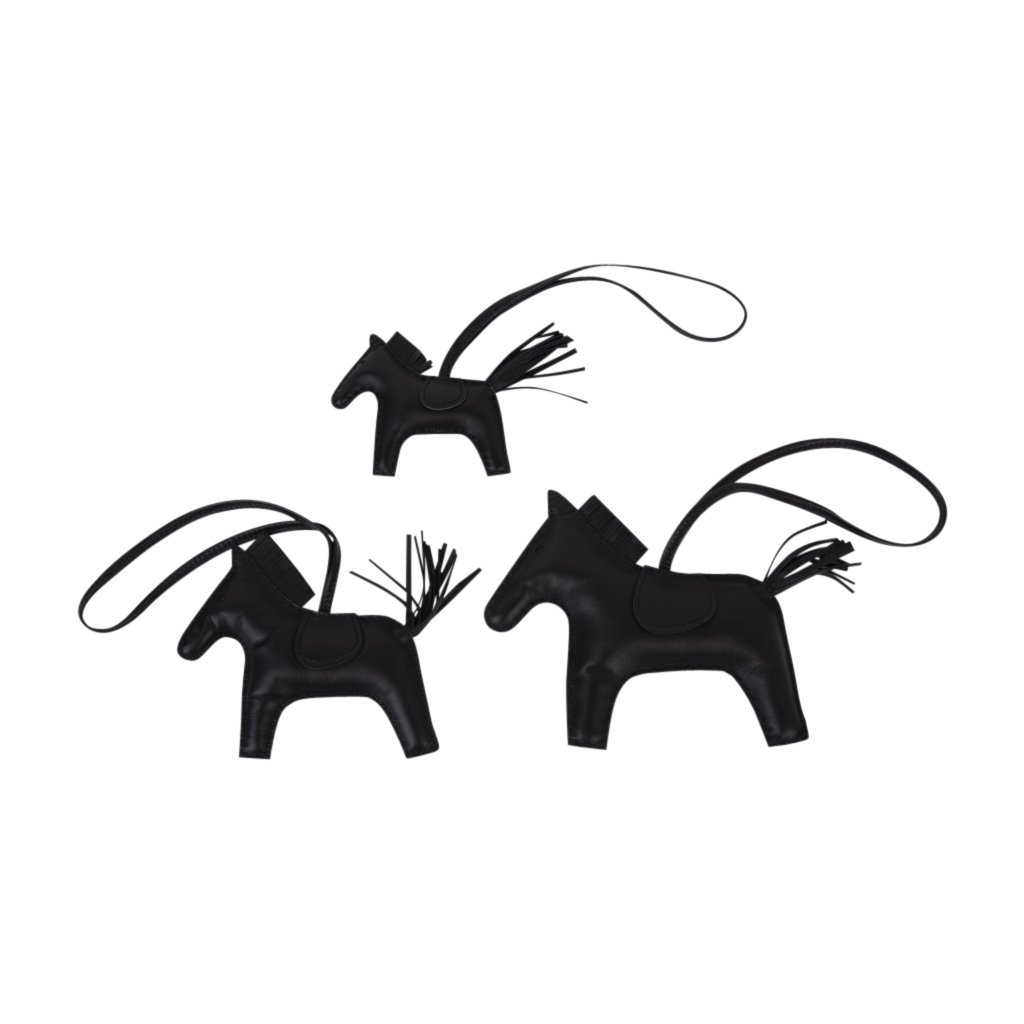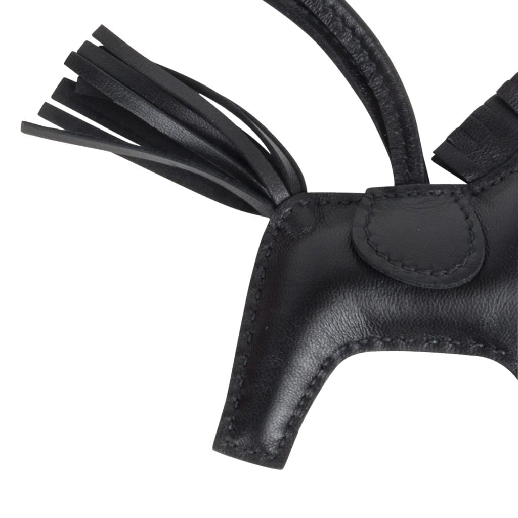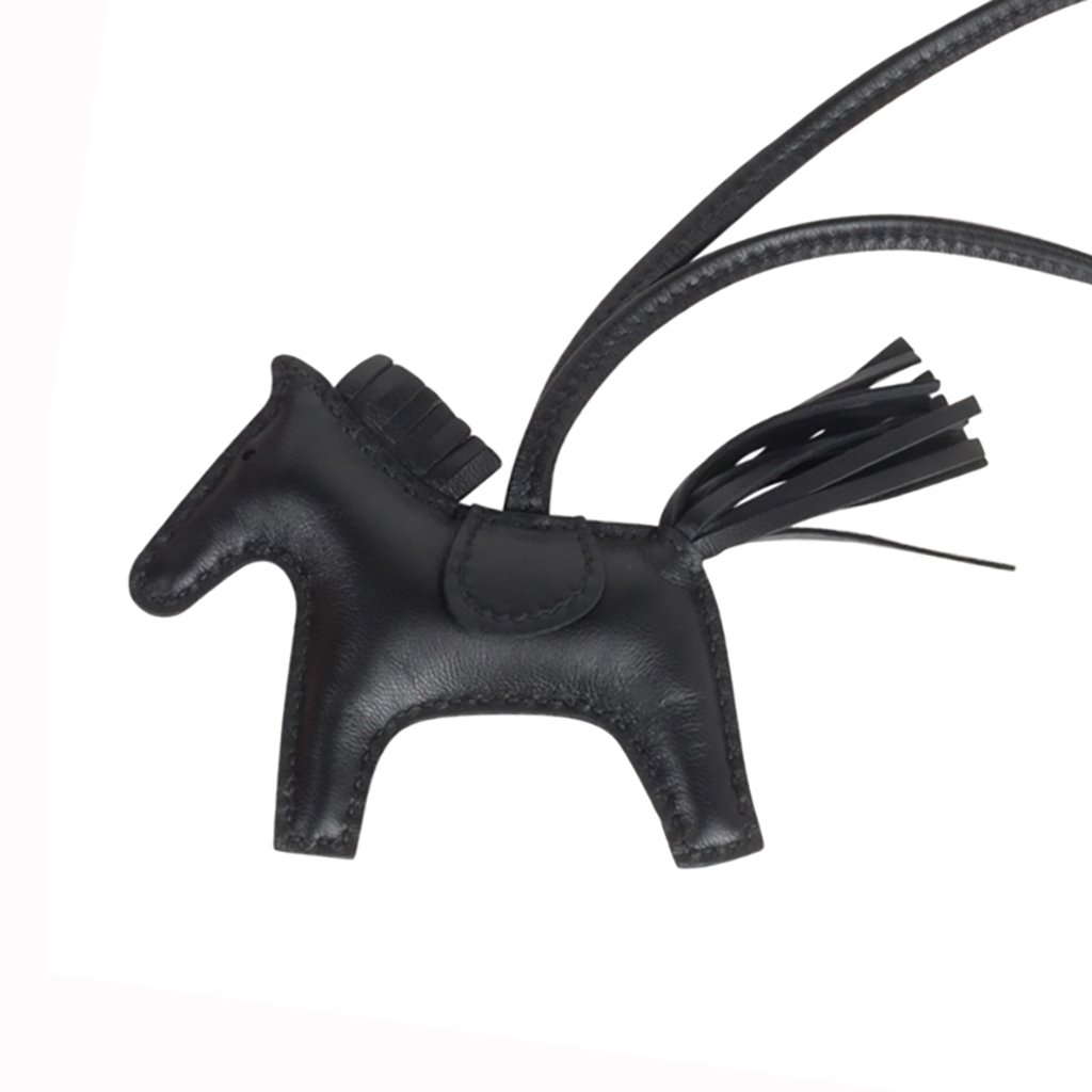 Guaranteed authentic Hermes Rodeo PM horse bag charm features Limited Edition So Black.