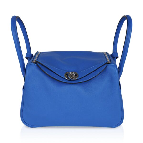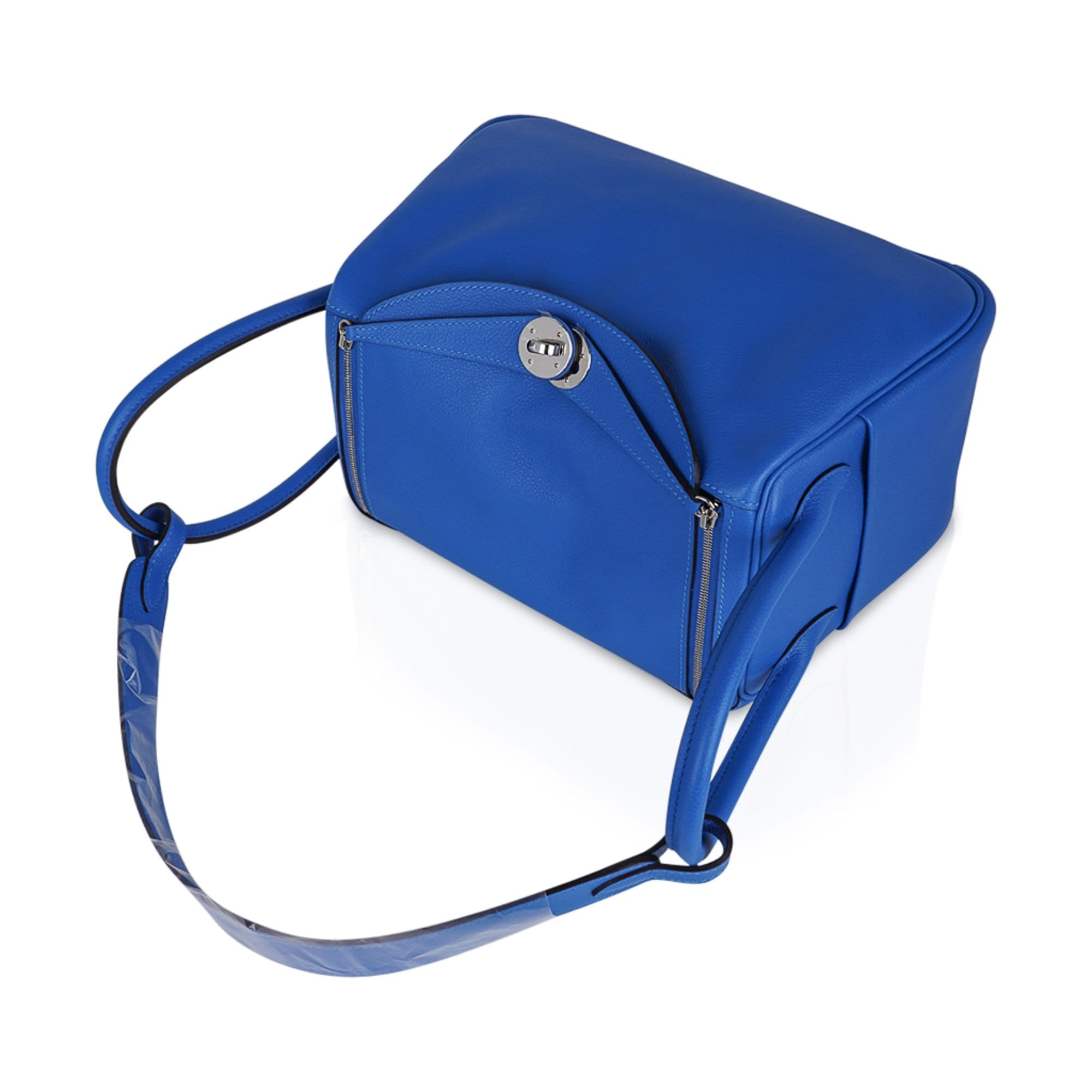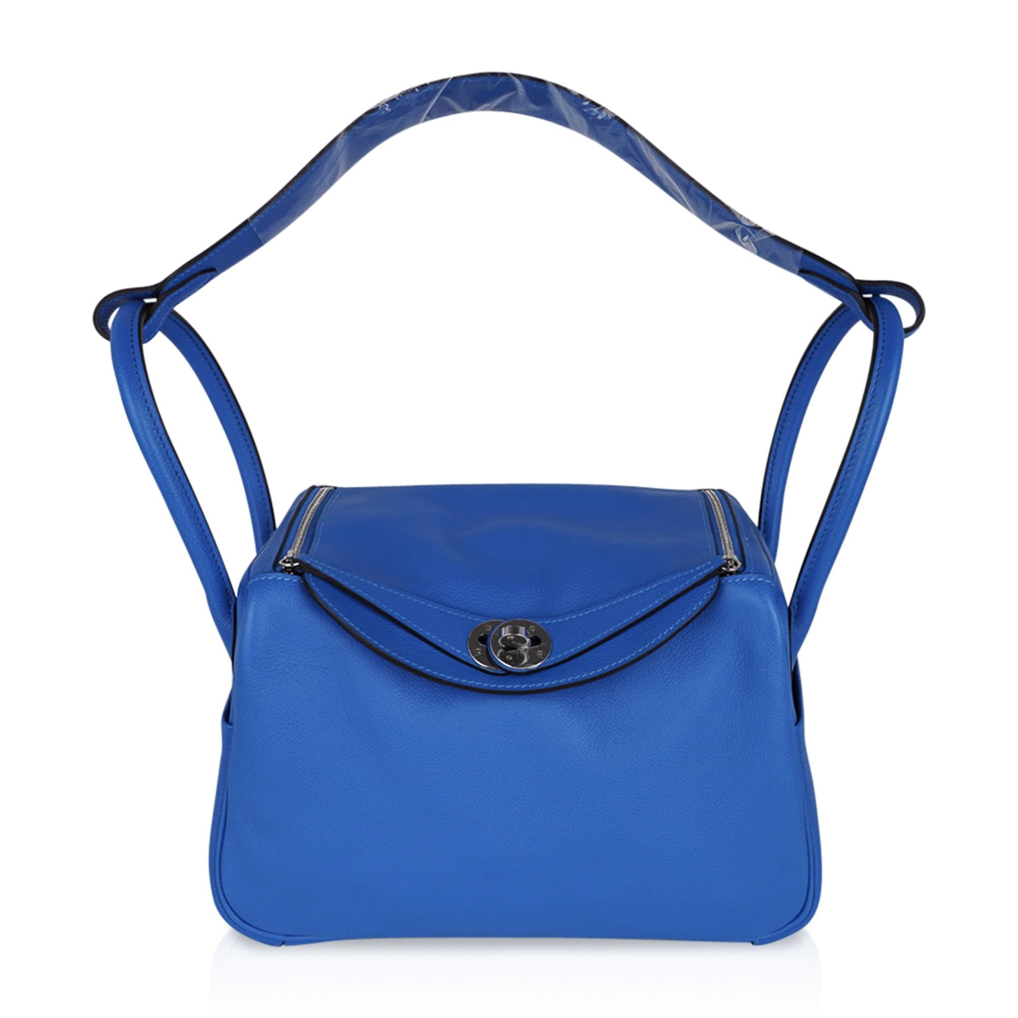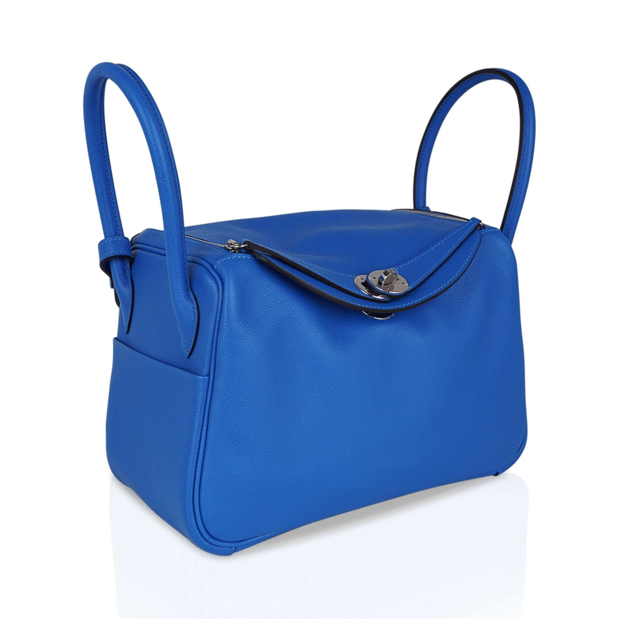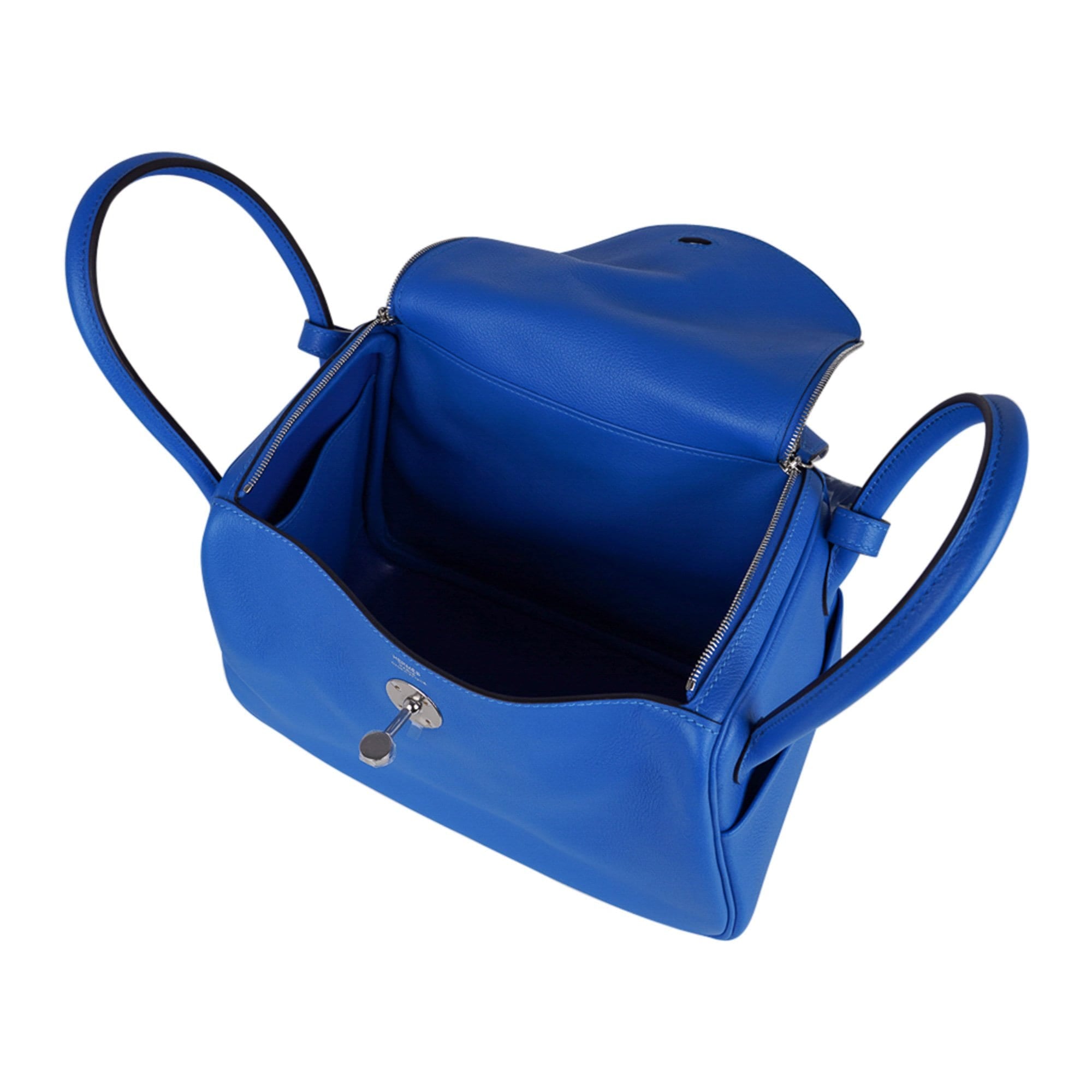 Guaranteed authentic vivid Blue Hydra Hermes Lindy bag in hard to find 26 cm.