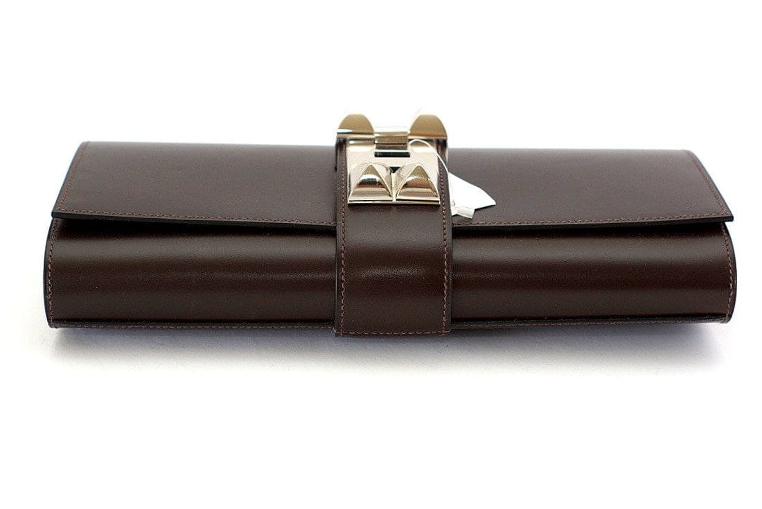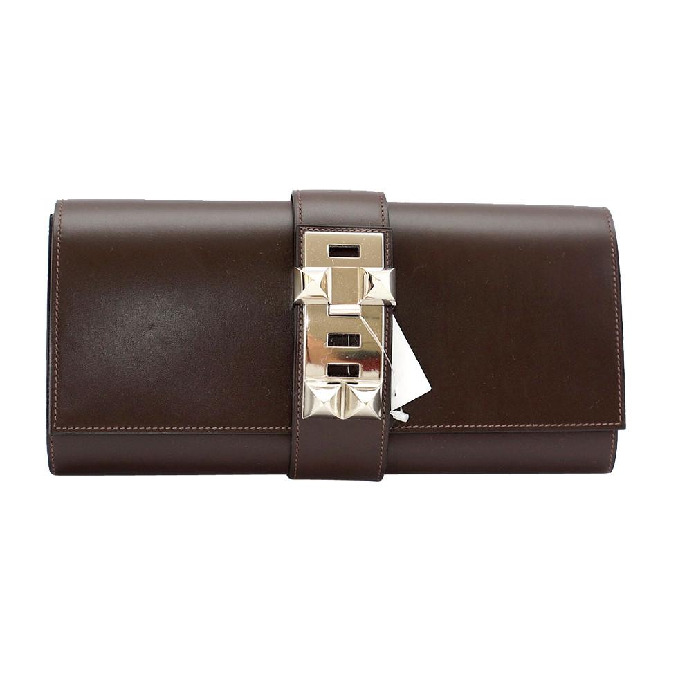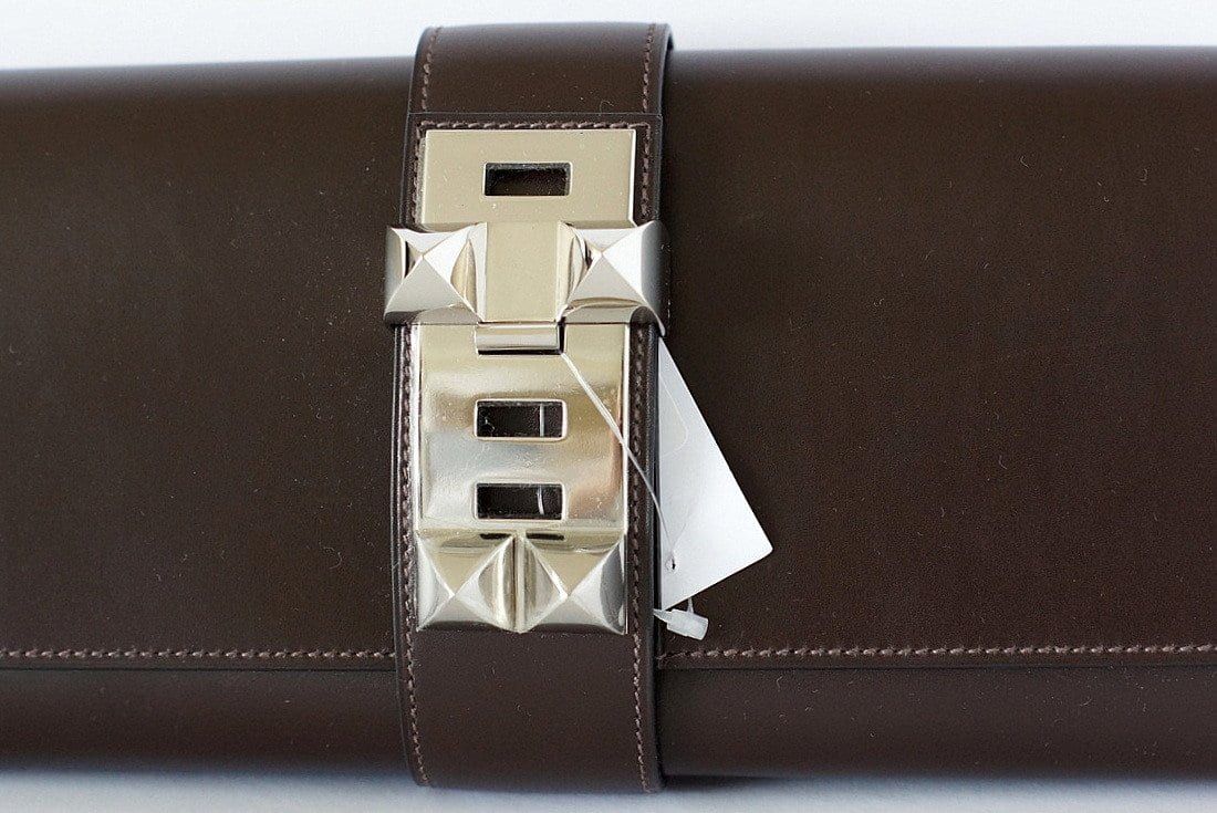 Rare to find Hermes Medor clutch box leather in milk Chocolate perfection!