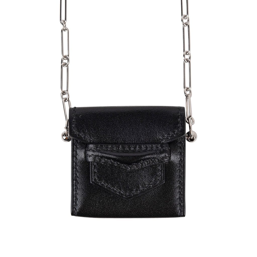 Guaranteed authentic Hermes Runway Limited Edition 70mm Micro Sac features Black Veau Villandry leather.