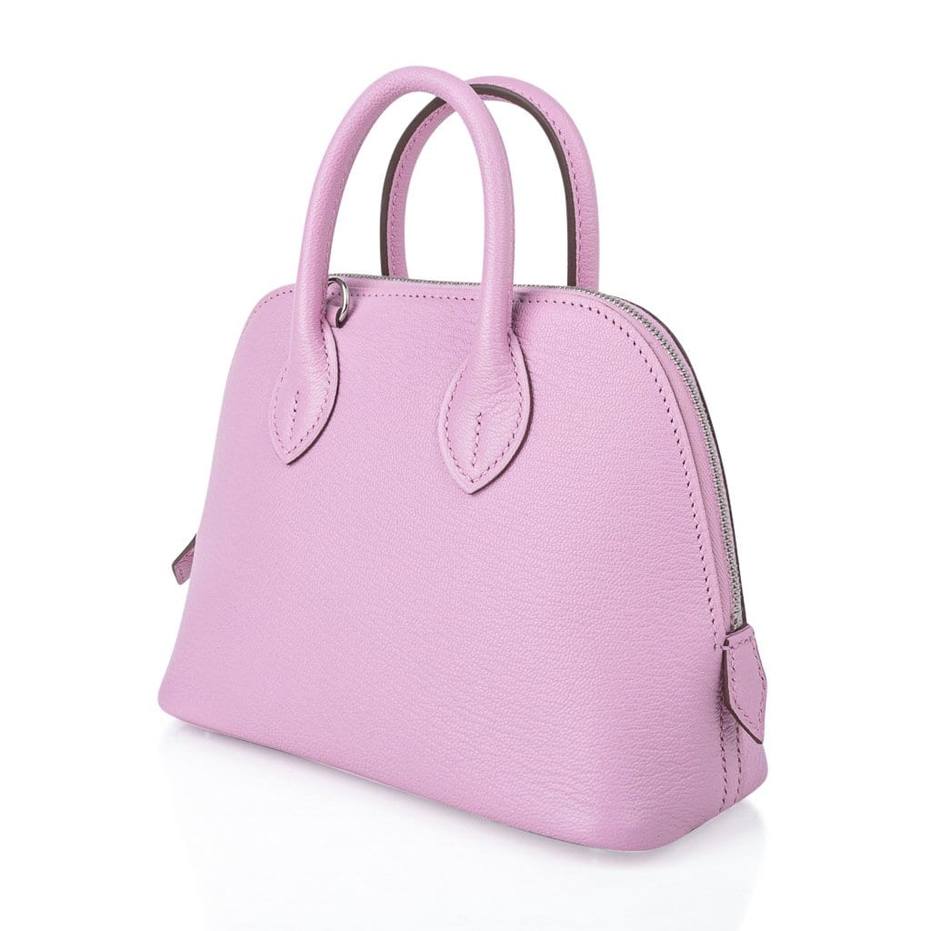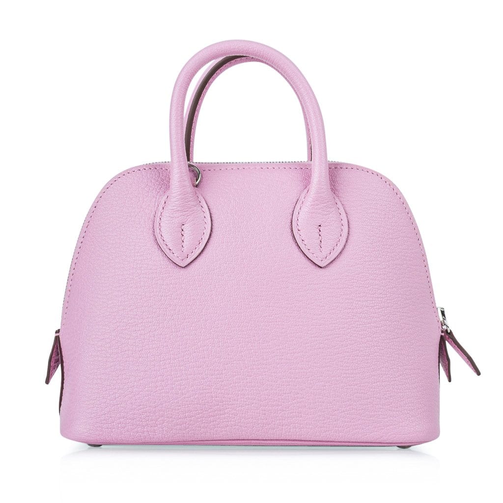 Guaranteed authentic Hermes Mini Bolide 1923 featured in Mauve Sylvestre Chevre leather. This is a collectors bag!
