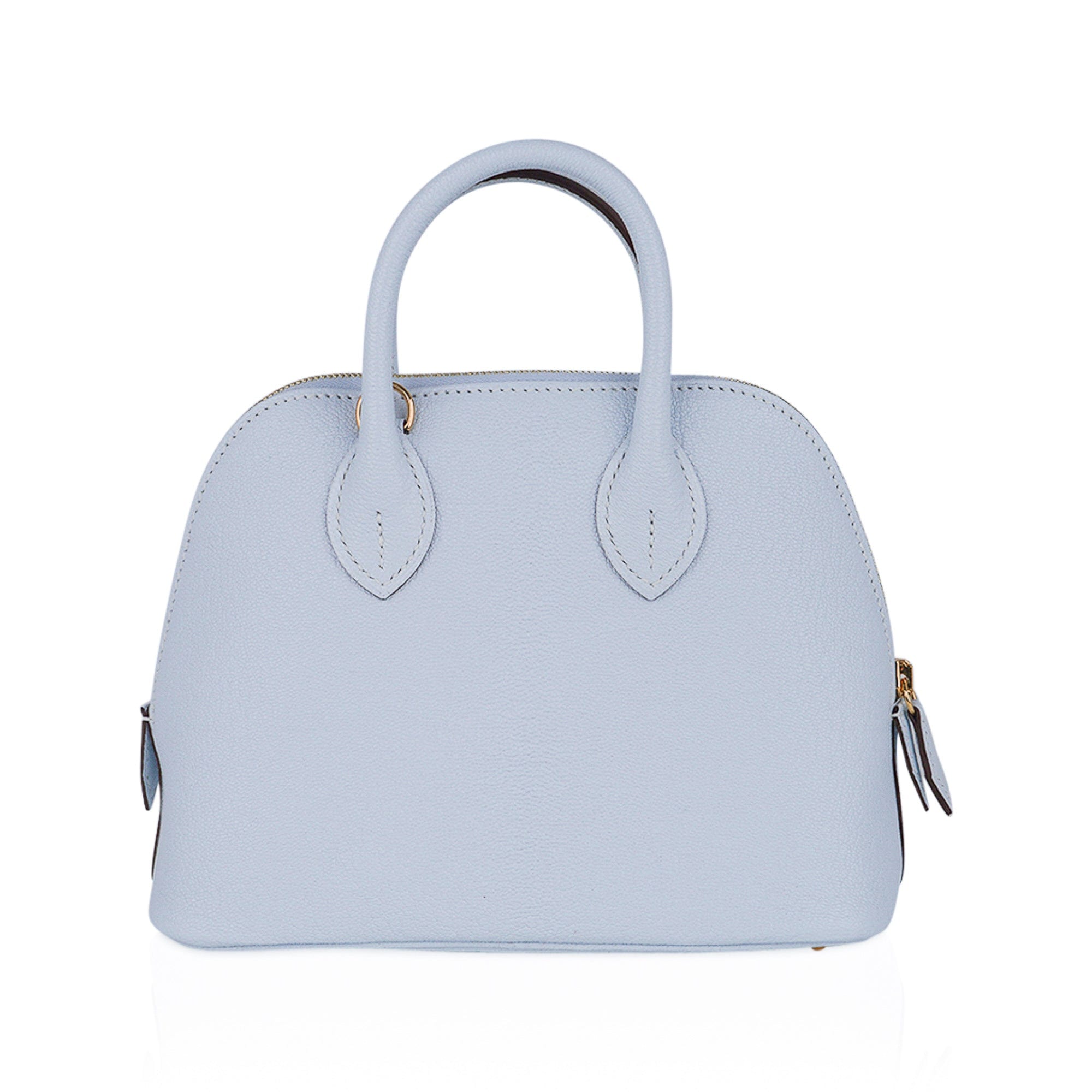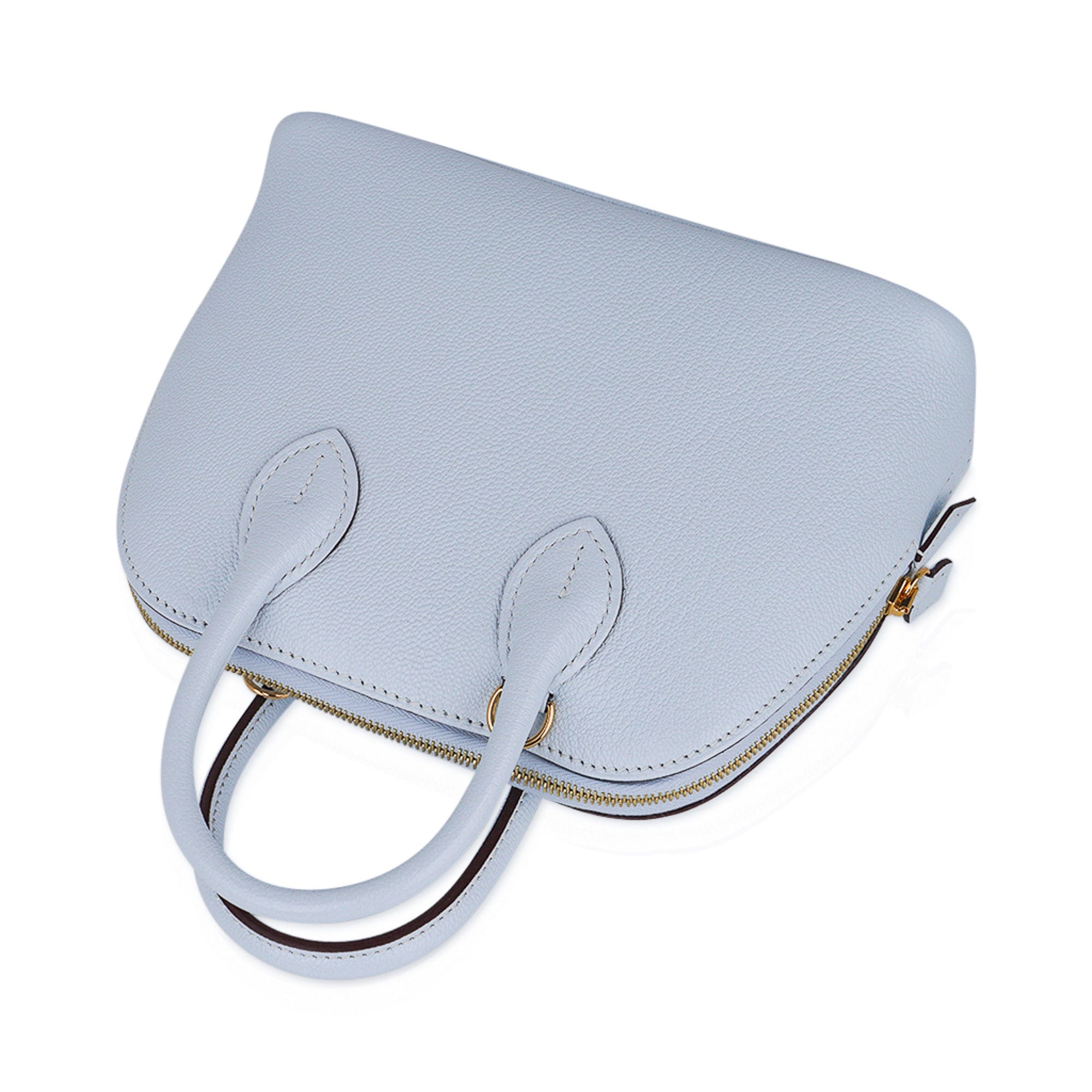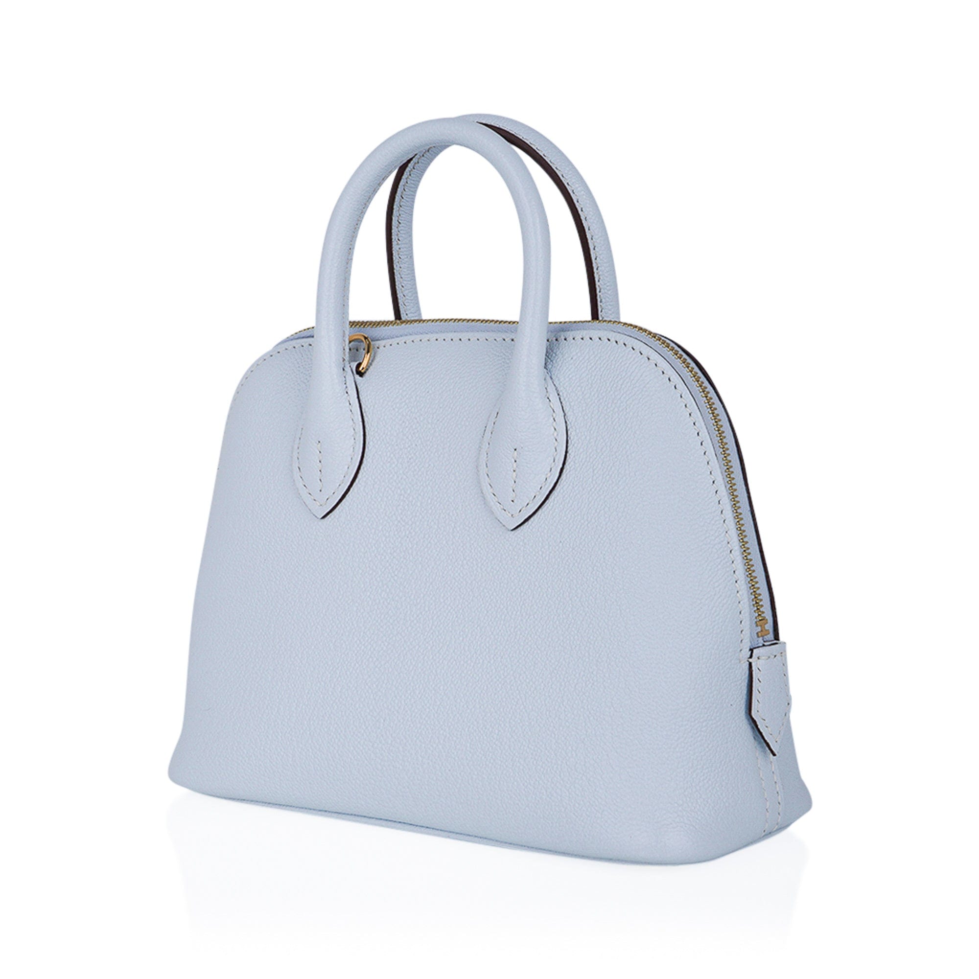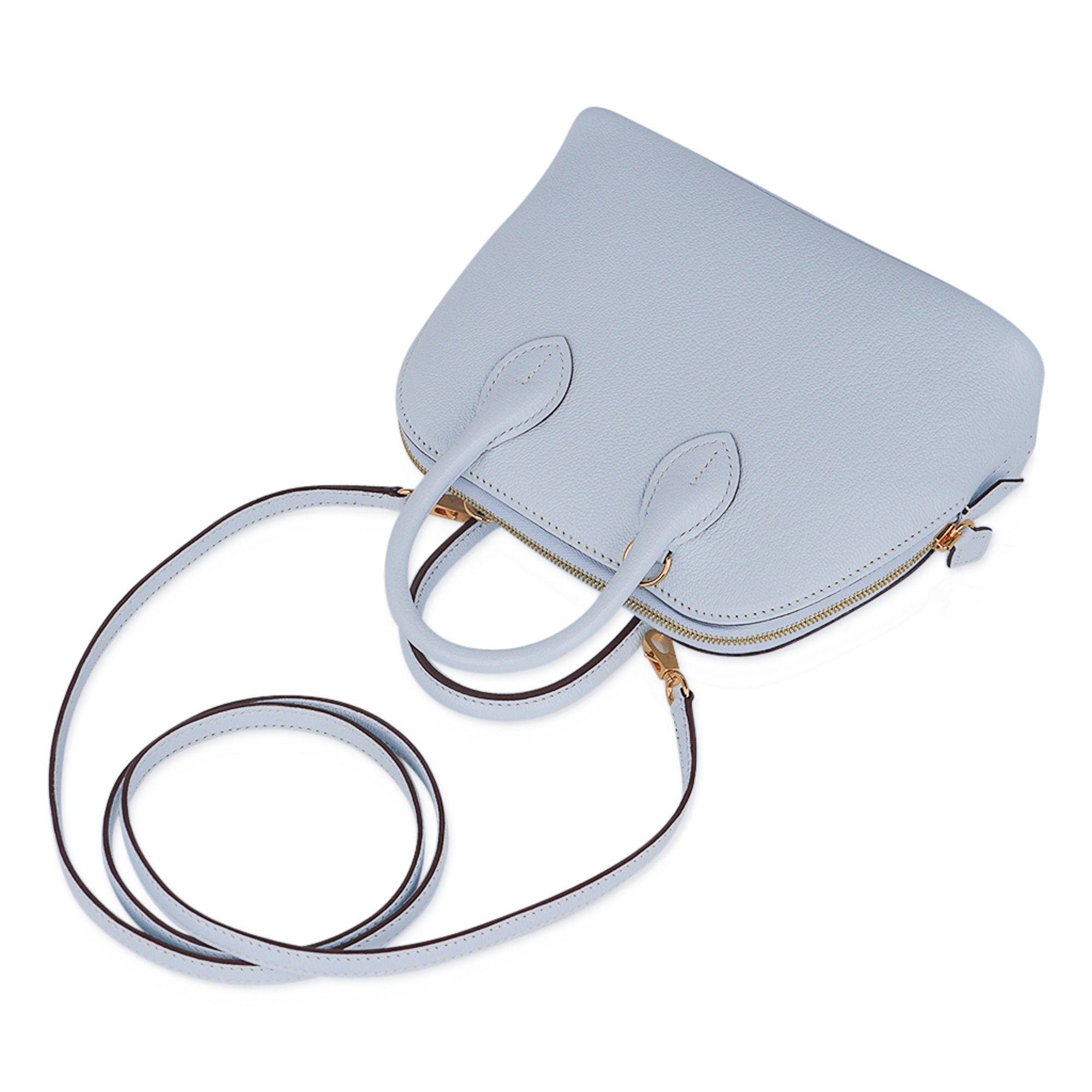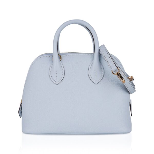 Guaranteed authentic Hermes Mini Bolide 1923 featured in stunning Blue Brume. This is a collectors bag!