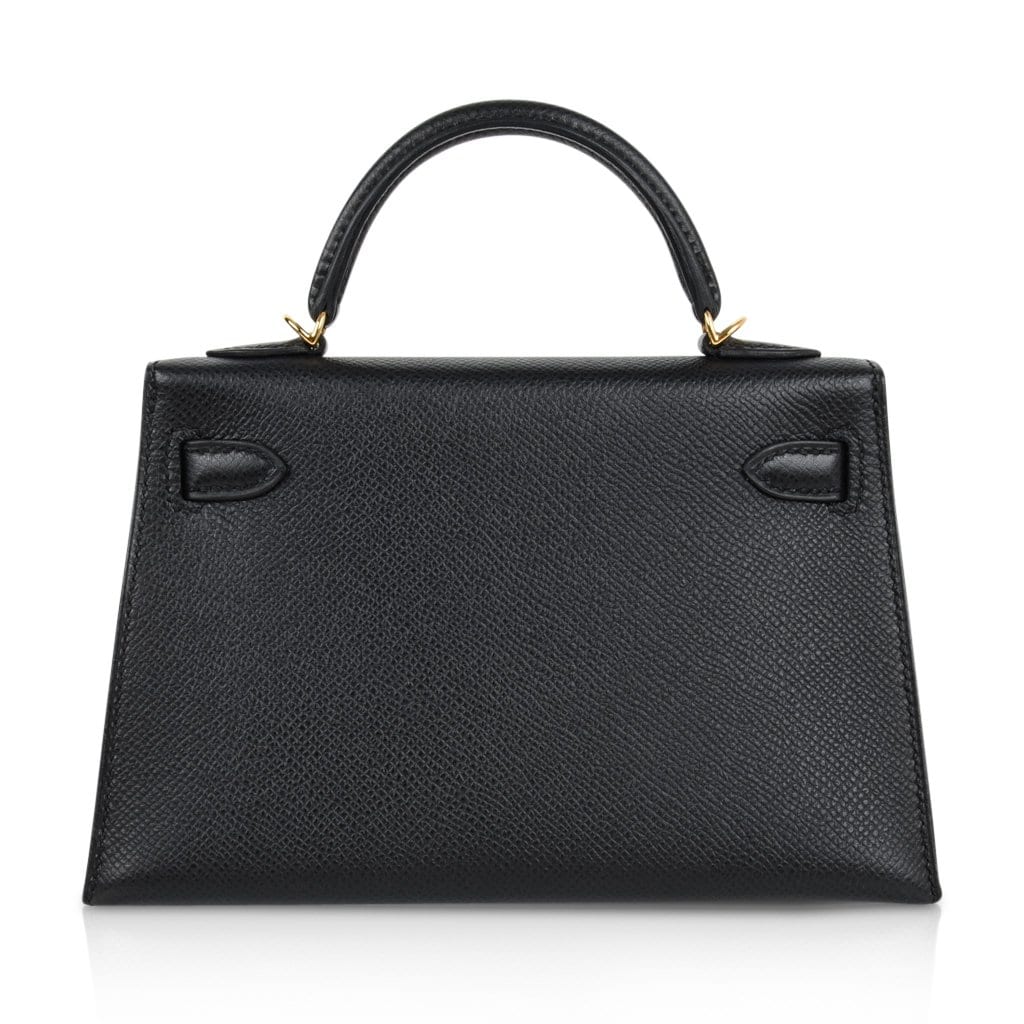 Hermes Mini Kelly 20 Sellier Bag in Black Epsom Leather with Gold Hardware