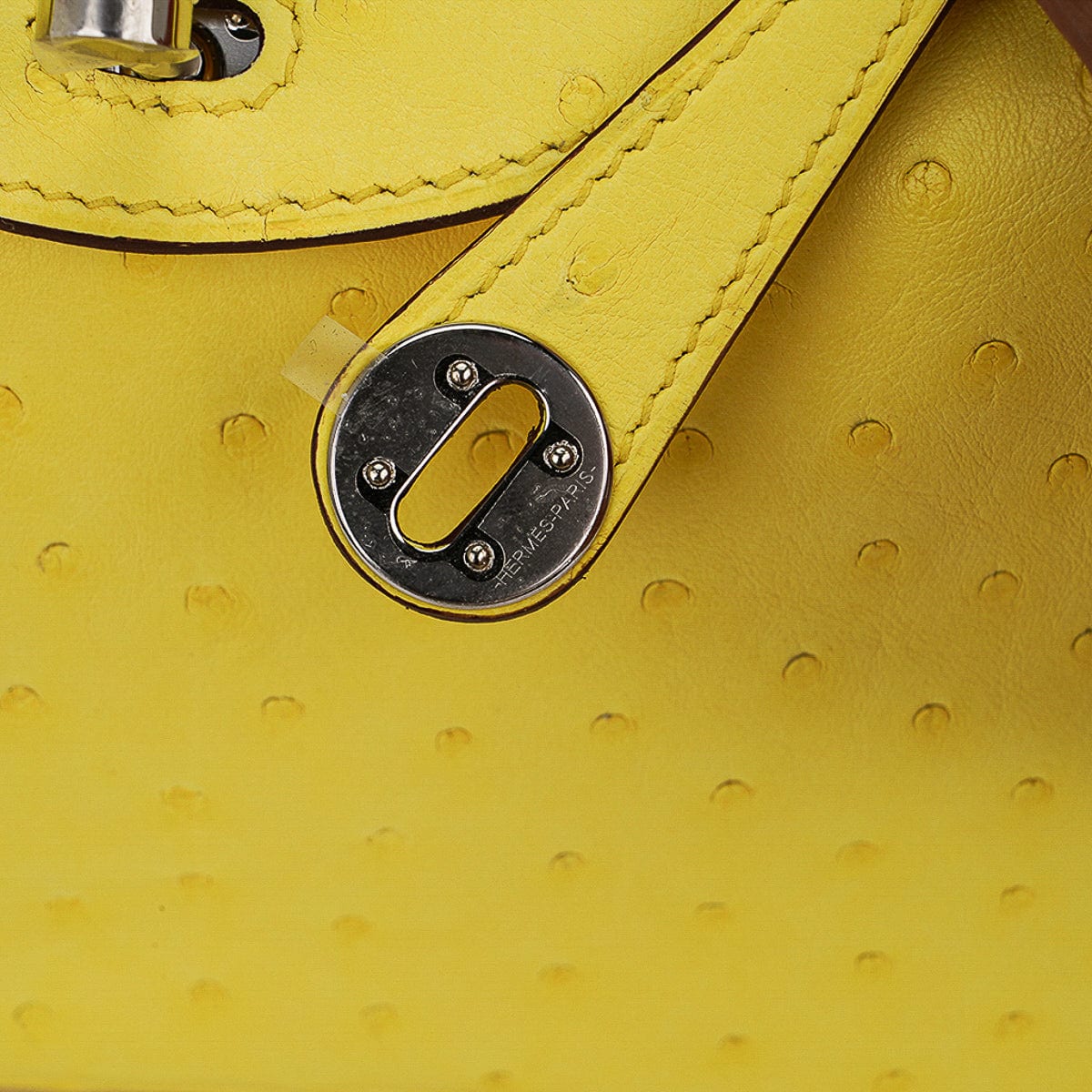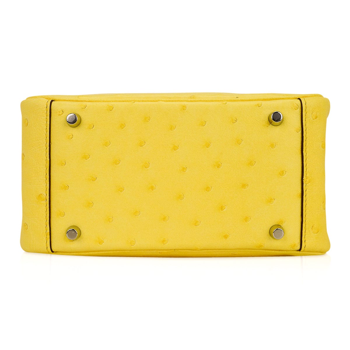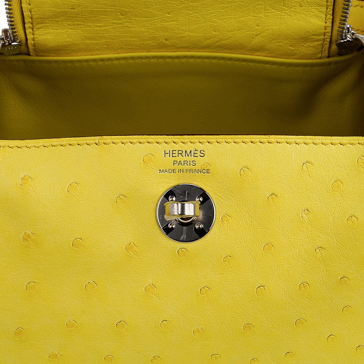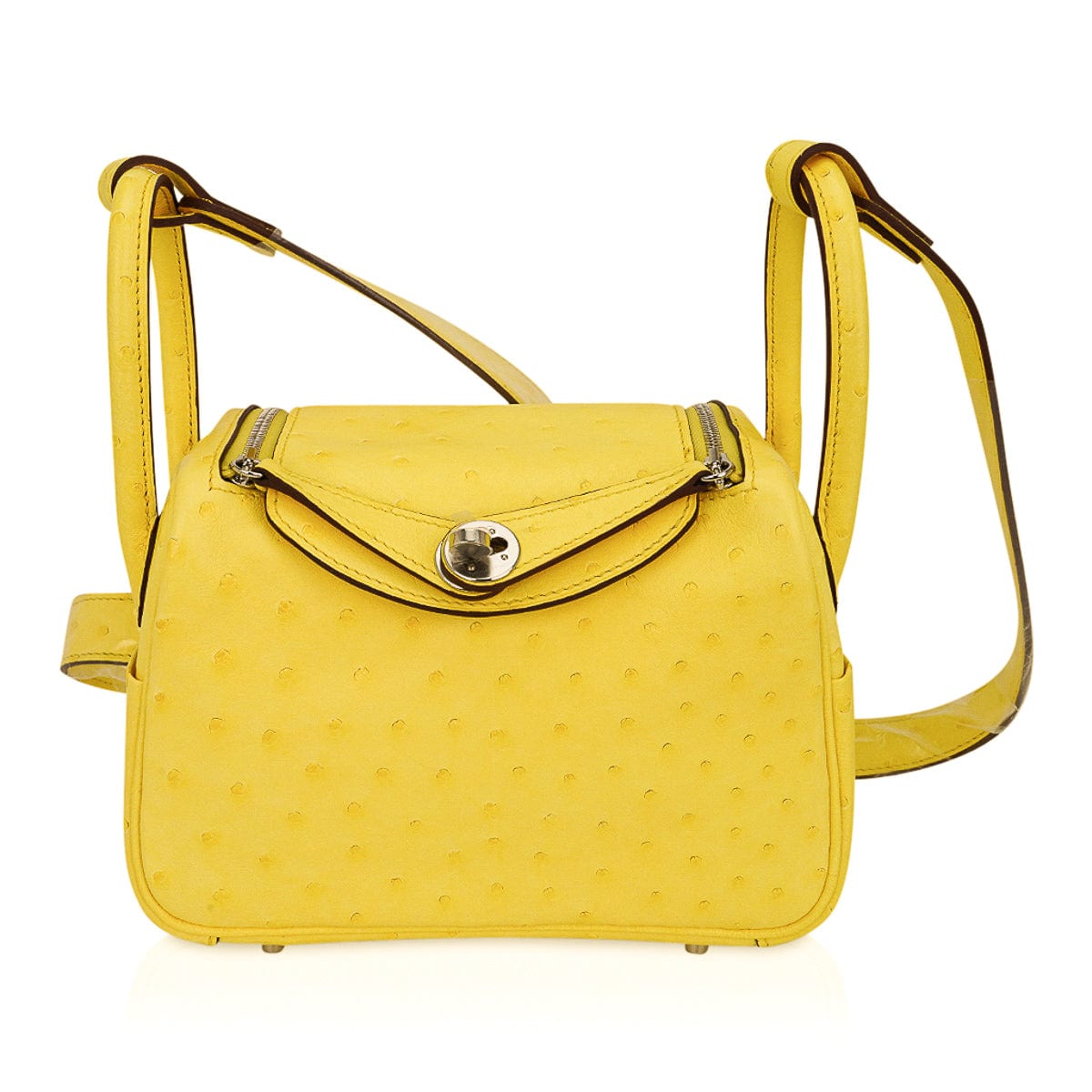 Guaranteed authentic Hermes Lindy Mini 20 bag featured in clear sunny yellow Jaune Citron Ostrich Boreal.