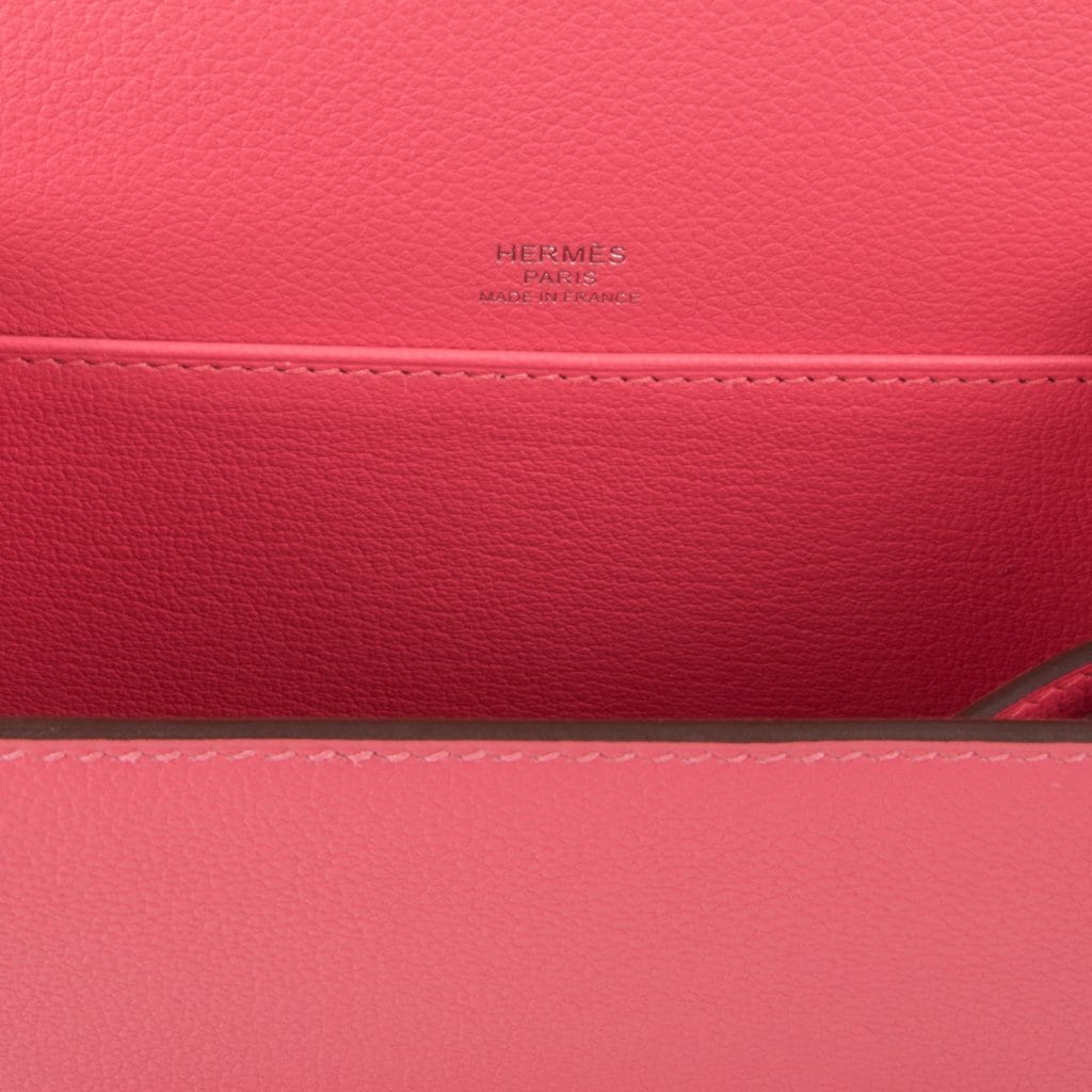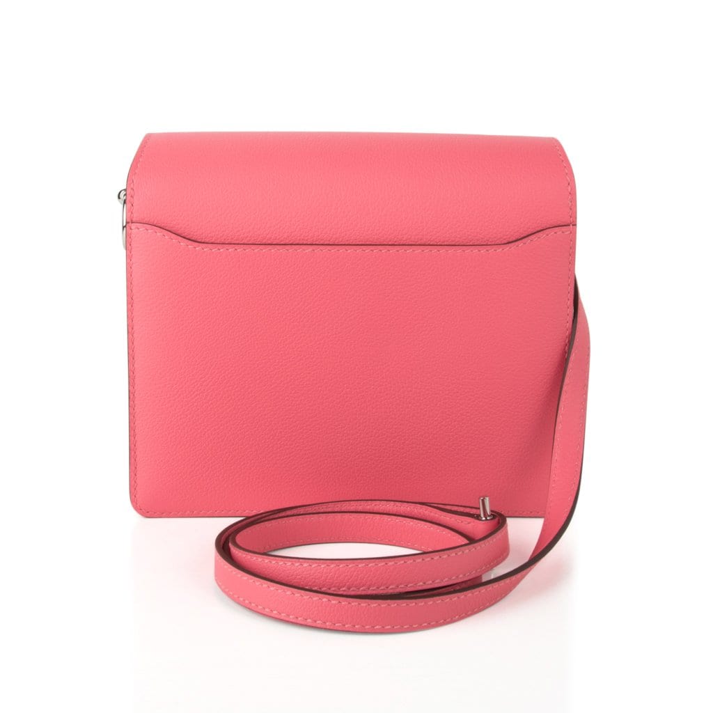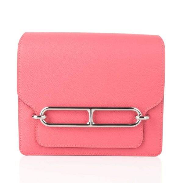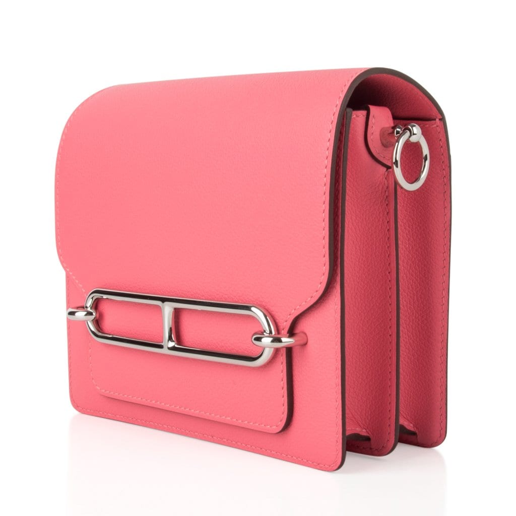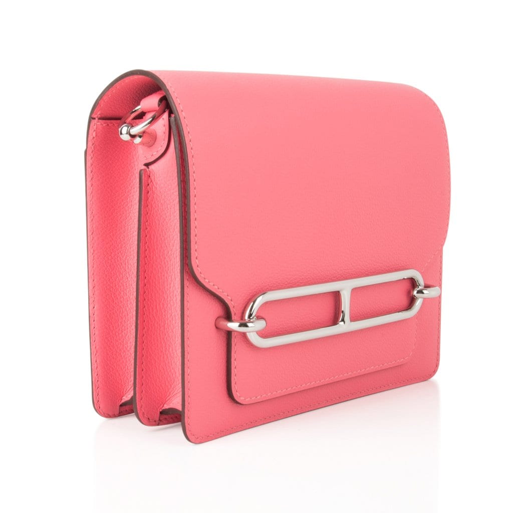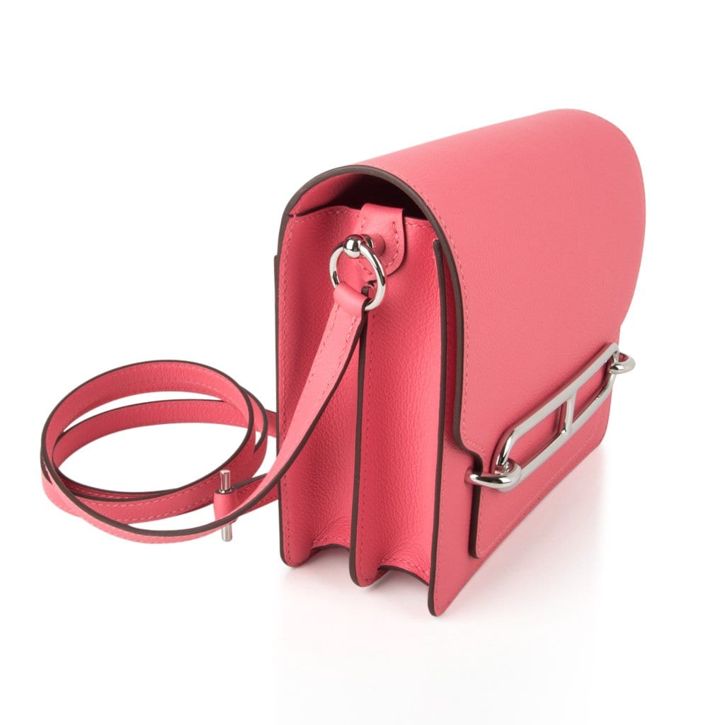 Guaranteed authentic Hermes mini Roulis bag features pink Rose Azalee in Evercolor.