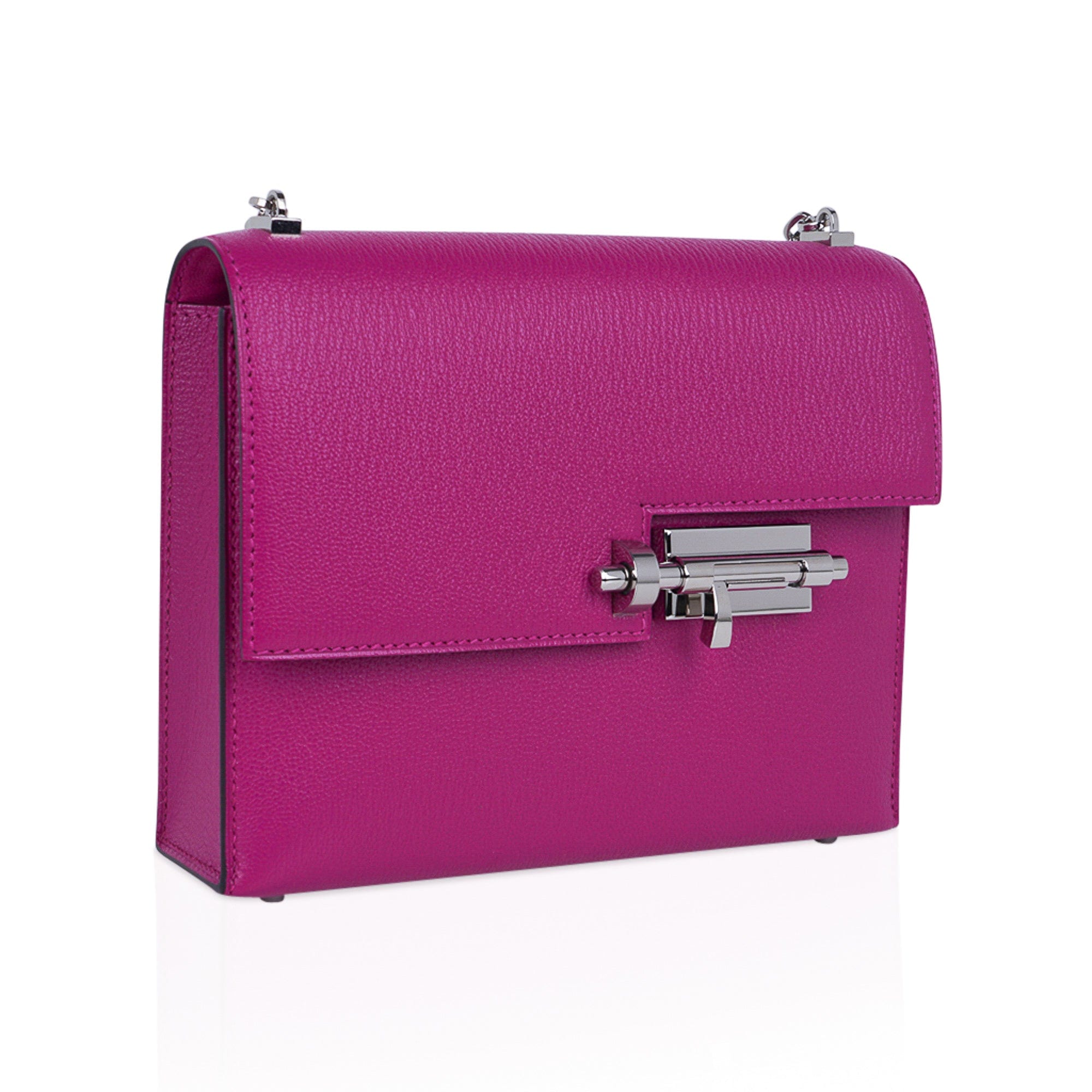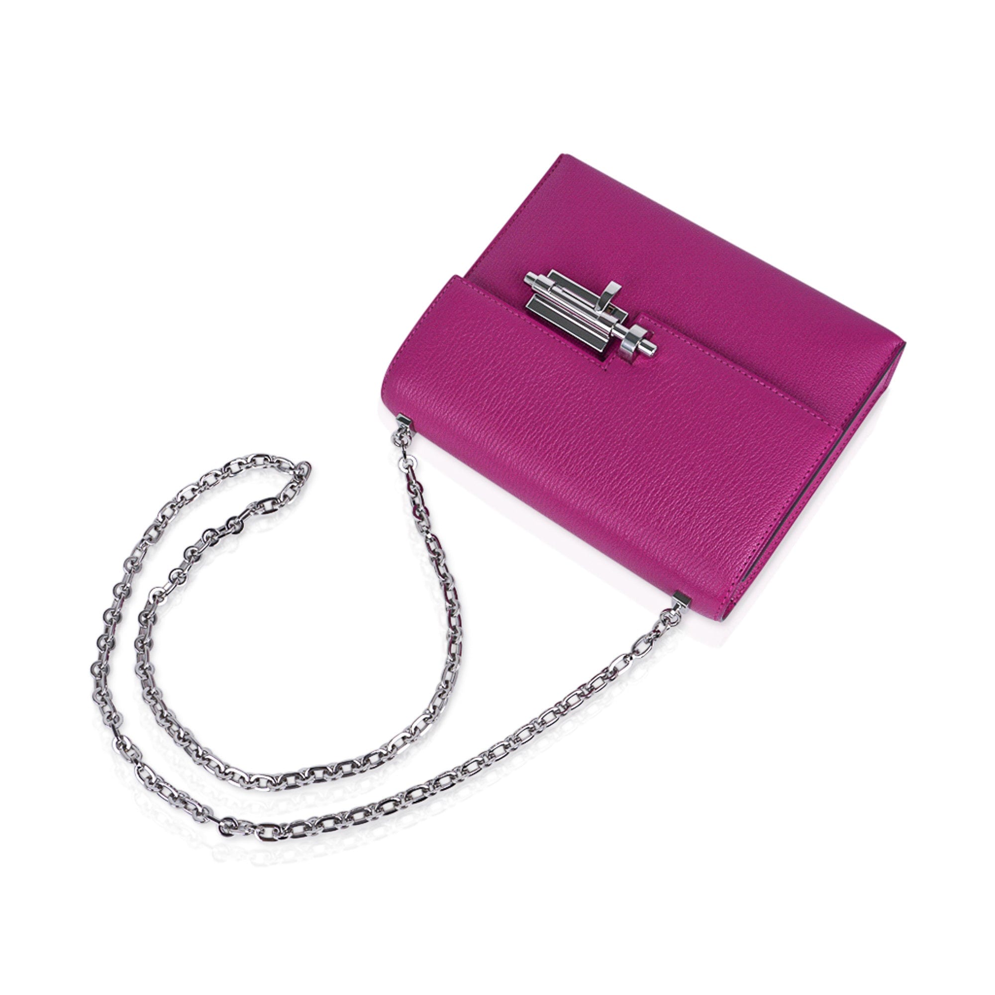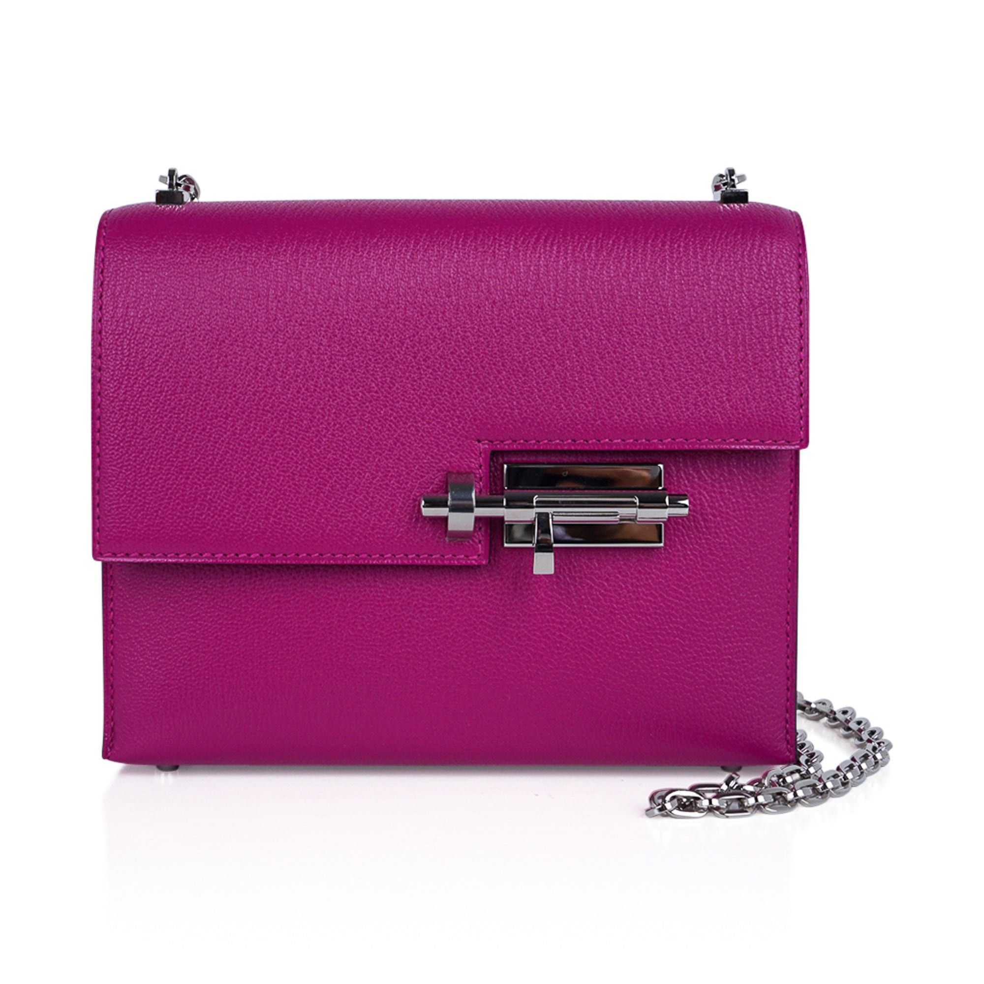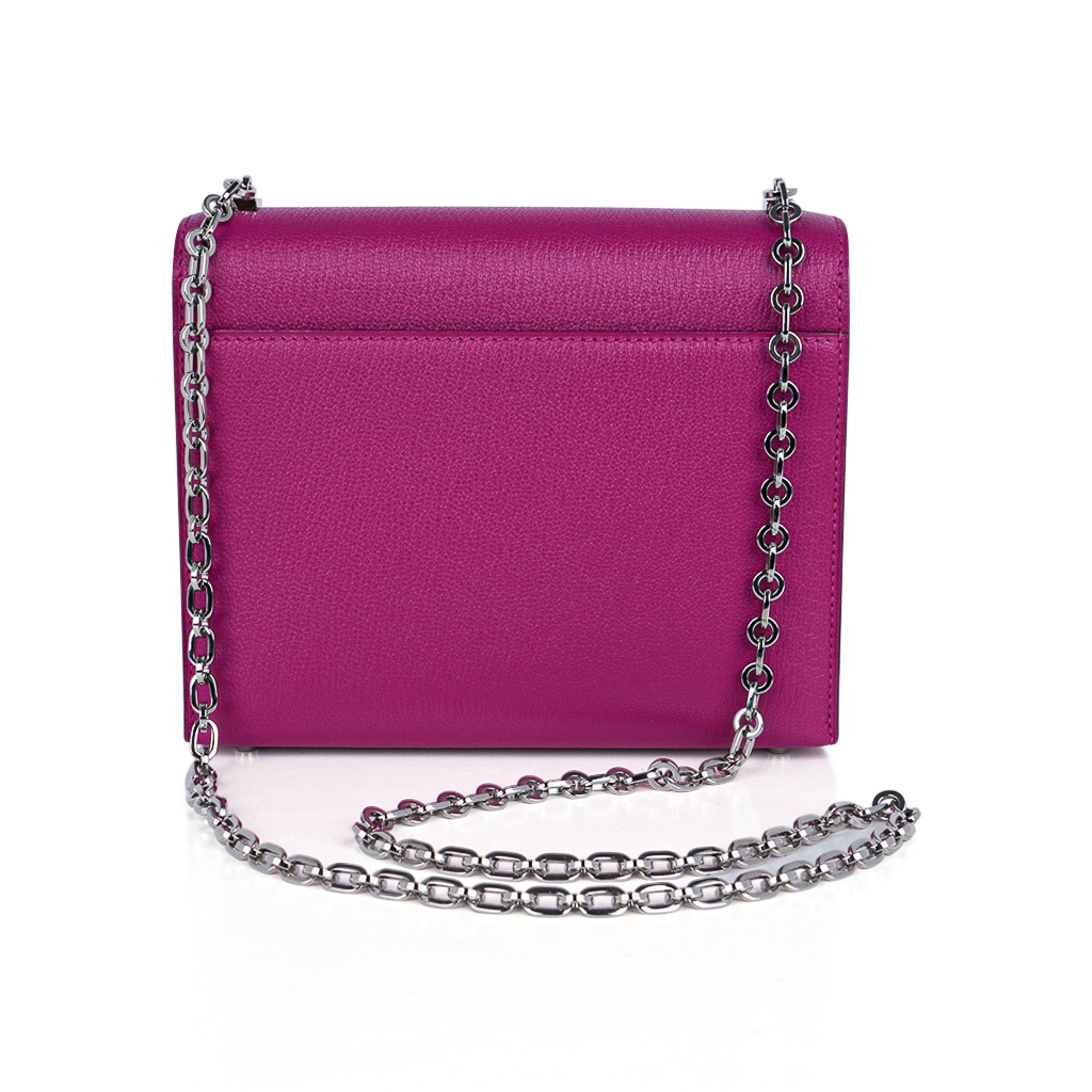 Hermes Mini Verrou Chaine bag featured in saturated rich Rose Pourpre.